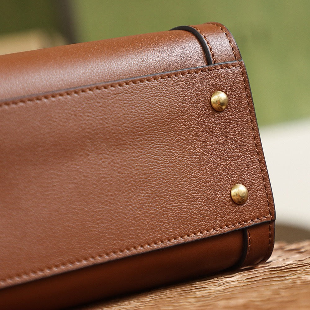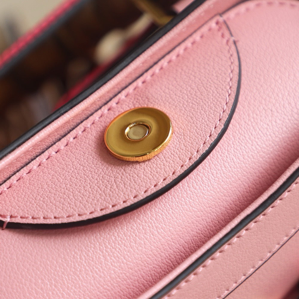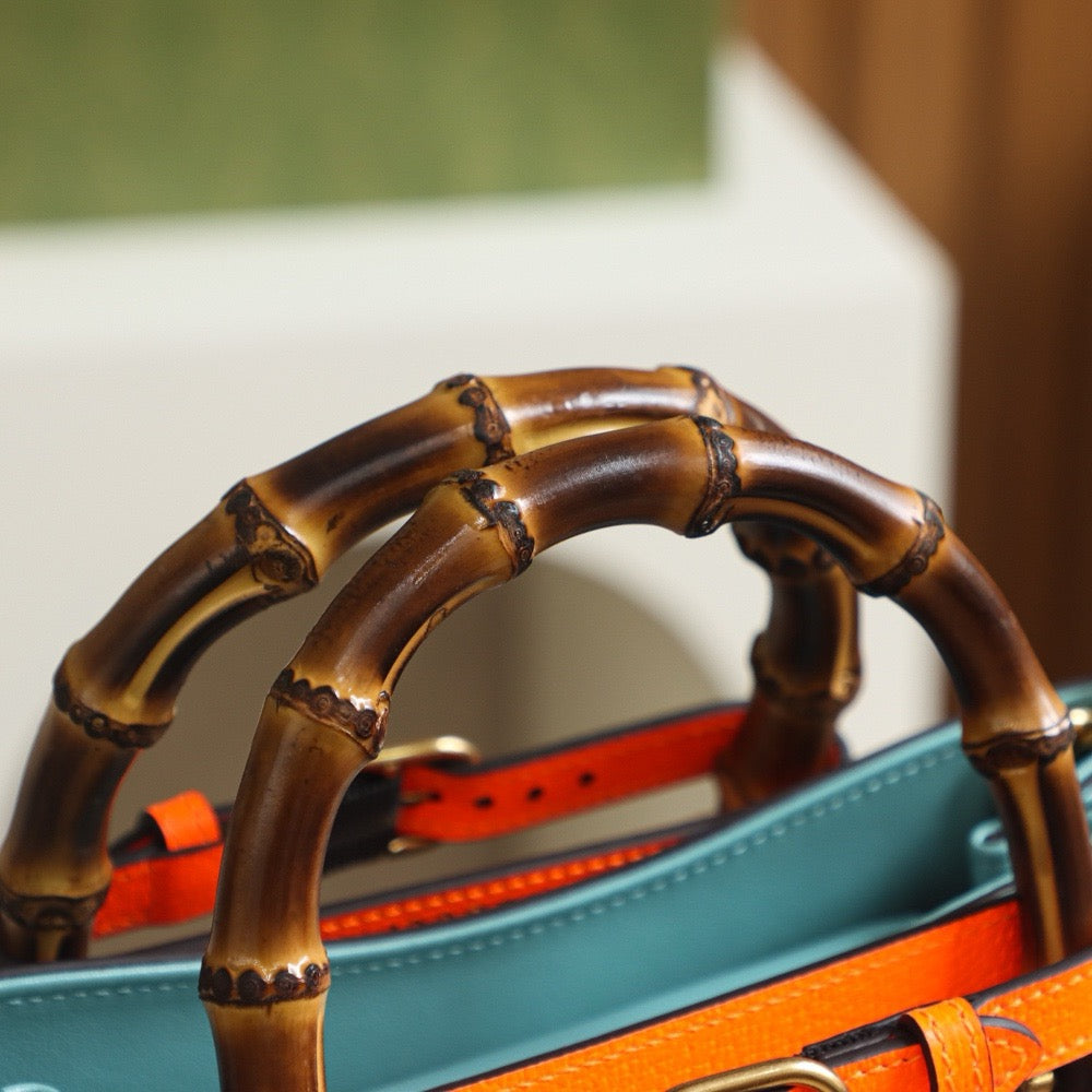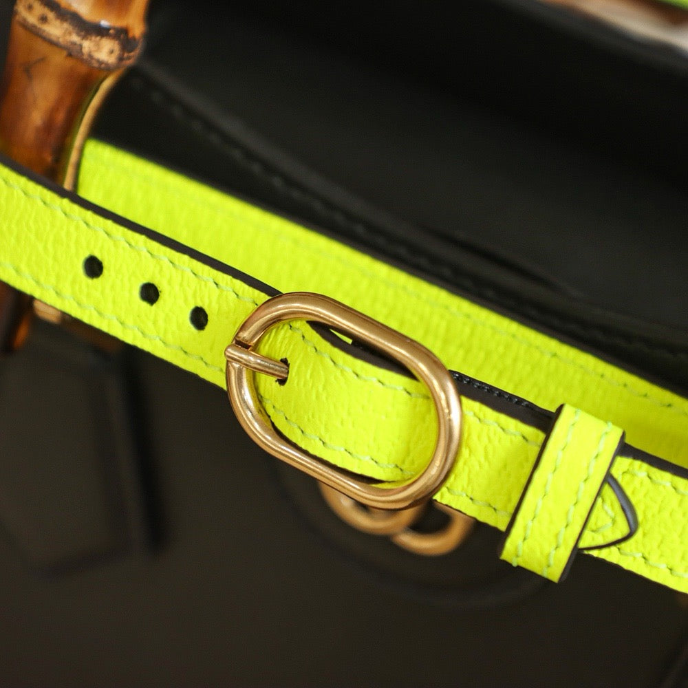 다이애나 백은 대나무 소재의 탑 핸들과 가죽 벨트 디테일이 상징적인 디자인 요소입니다. 부드러운 가죽 소재로 제작되어 고급스러운 촉감을 자랑하며, 탈부착 가능한 숄더 스트랩이 포함되어 다양한 연출이 가능합니다.