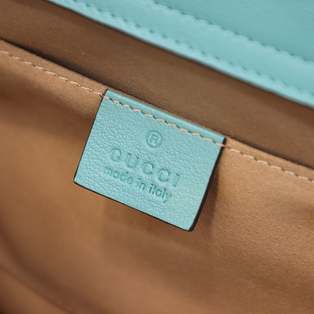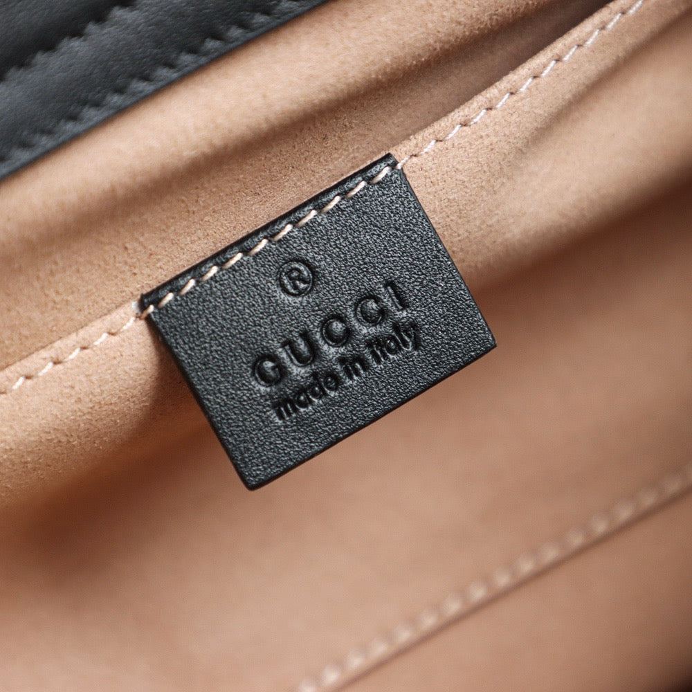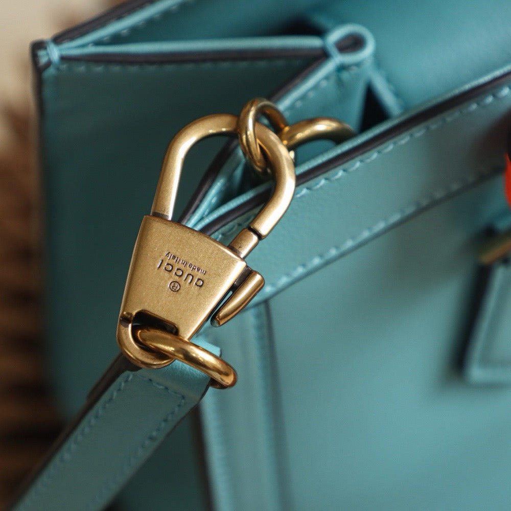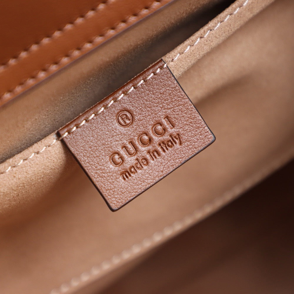 구조감 있는 실루엣에 유연한 가죽 바디가 조화를 이루며, 내부는 넓은 수납 공간과 지퍼 포켓, 슬립 포켓 등으로 구성되어 실용성을 높였습니다. 색상과 디자인에 따라 스트랩의 가죽 벨트 색상이 포인트가 되며, 구찌의 장인정신이 고스란히 반영된 디테일이 인상적입니다.
