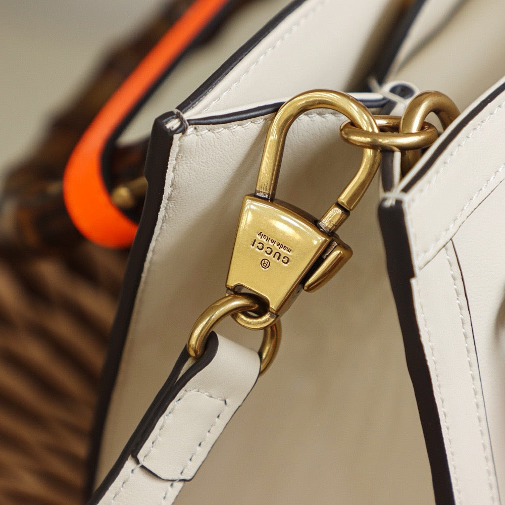 구찌 다이애나 토트백 스몰(Gucci Diana Small Tote Bag)은 클래식한 대나무 핸들과 현대적인 감성이 어우러진 구찌의 대표 토트백 중 하나입니다. 프린세스 다이애나가 사랑했던 오리지널 디자인을 기반으로, 미니멀하면서도 고급스러운 실루엣으로 재해석되었습니다.