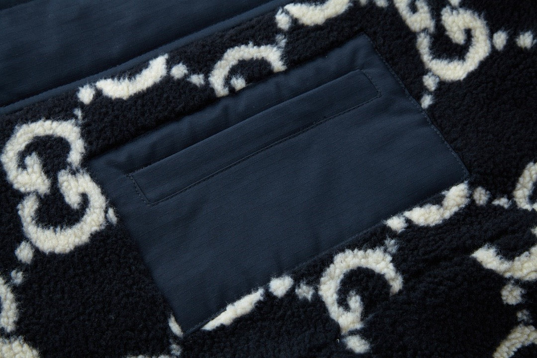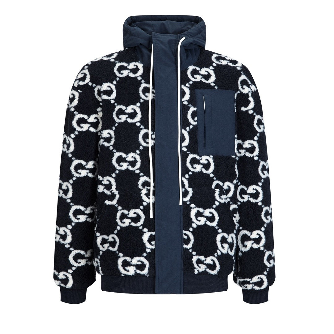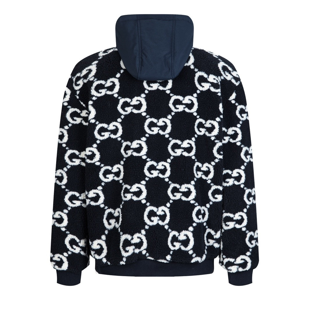 구찌 다크 블루 리버서블 GG 울 후드 지퍼 재킷