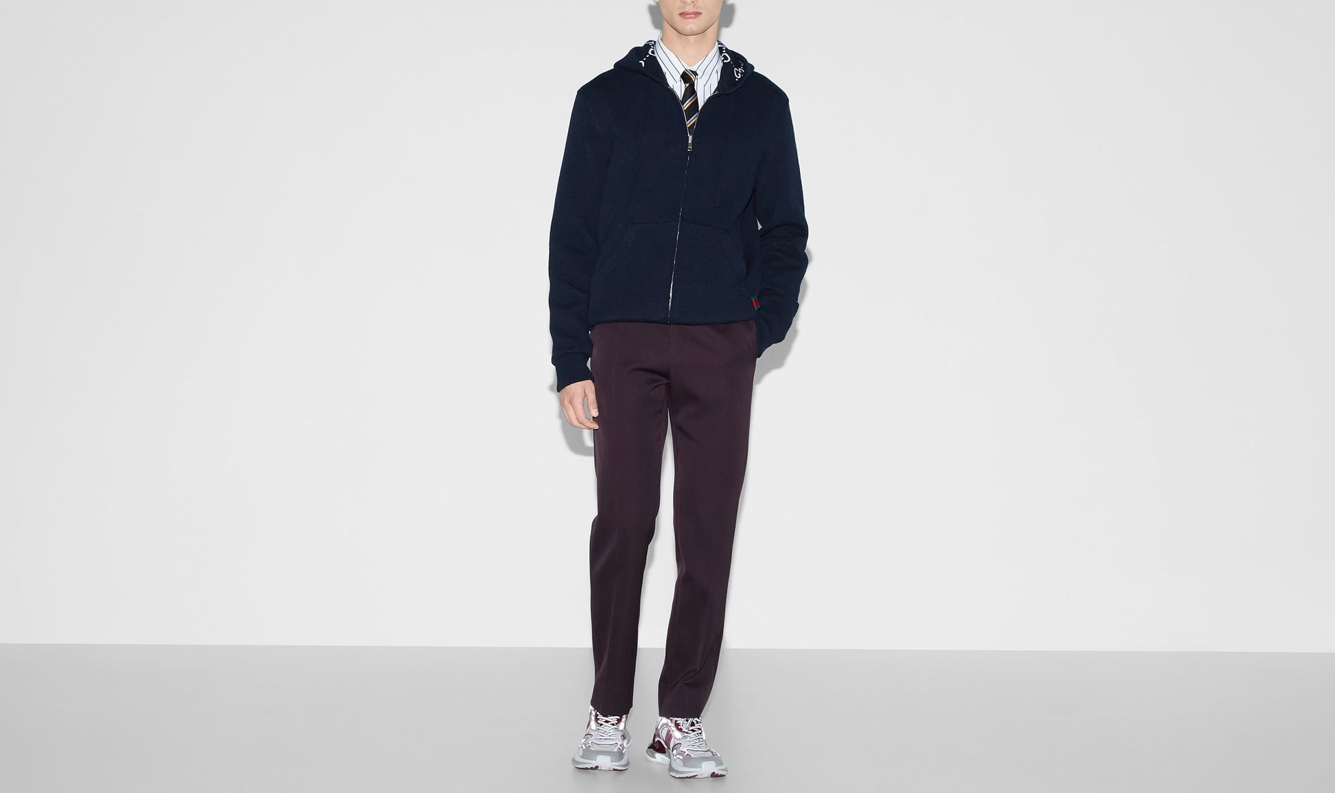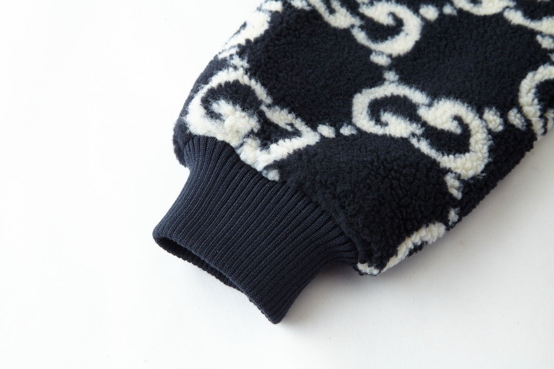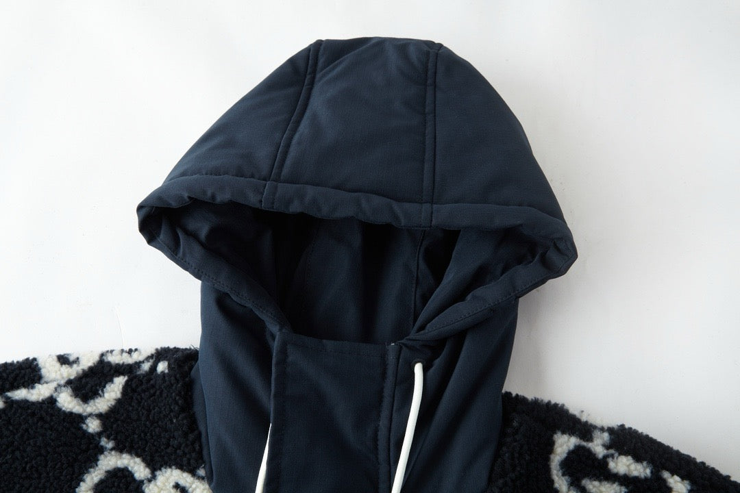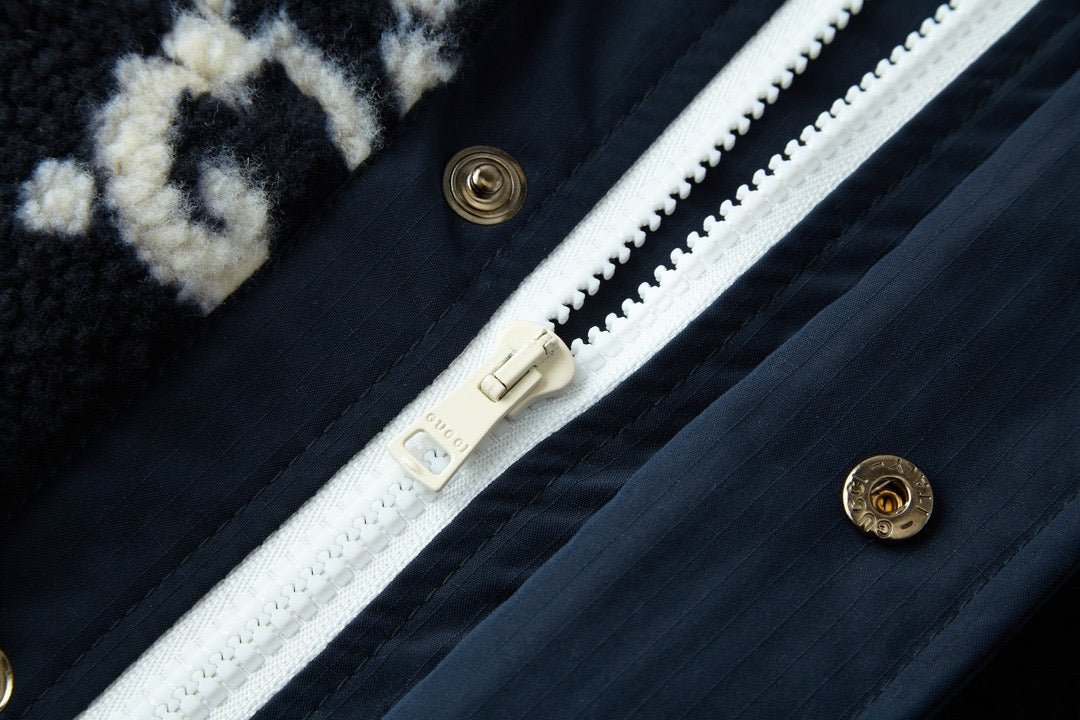 구찌 다크 블루 리버서블 GG 울 후드 지퍼 재킷