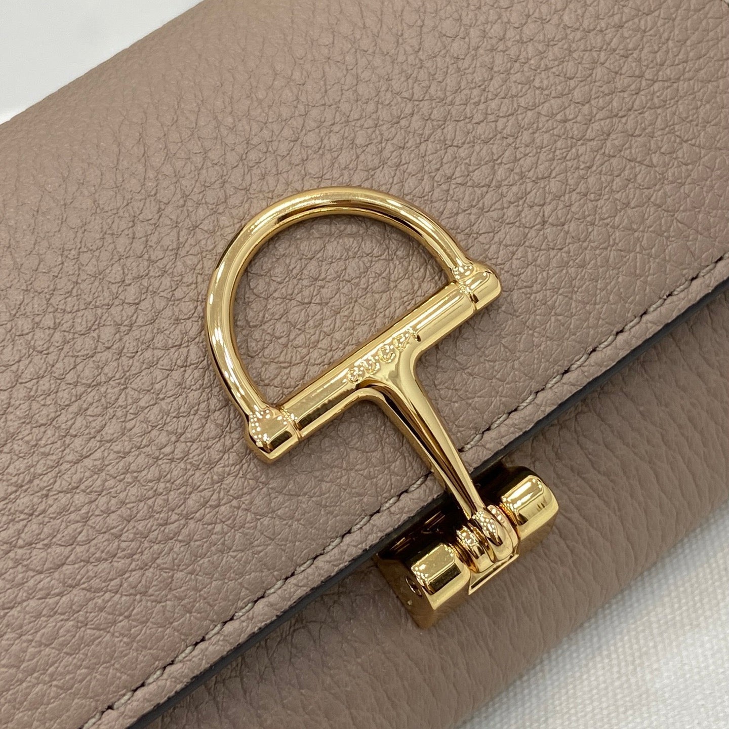 부드럽고 견고한 텍스처의 가죽으로 제작되었으며, 전면에 구찌의 시그니처인 소프트빗 메탈 하드웨어가 포인트로 적용되어 고급스러움을 강조합니다. 곡선형의 실루엣과 미니멀한 디테일이 현대적인 감각을 더합니다.