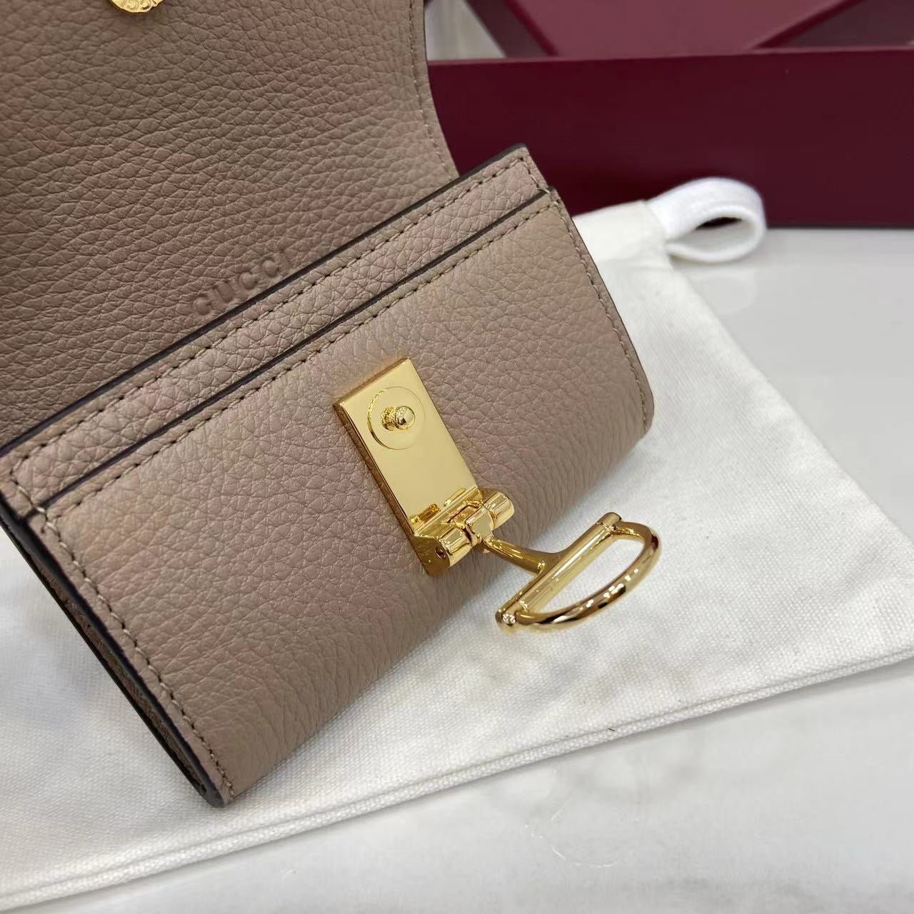 미니멀한 외형에 구찌 특유의 소프트빗 디테일이 세련된 포인트가 되어주며, 컴팩트한 크기임에도 필요한 수납 기능을 갖춘 점이 장점입니다.