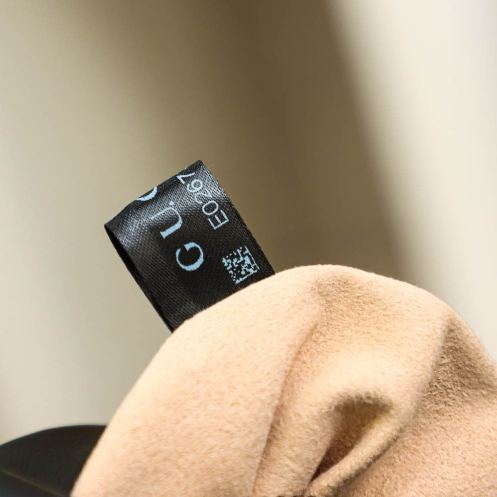 플랩 스타일의 클로저와 마그네틱 버튼, 그리고 고급스러운 골드 톤 GG 로고가 전면에 배치되어 있습니다. 내부는 스웨이드 마감의 라이닝과 지퍼 포켓, 슬립 포켓 등으로 구성되어 실용적인 수납이 가능합니다. 체인 스트랩에는 가죽 패드가 덧대어져 편안한 착용감을 제공합니다.