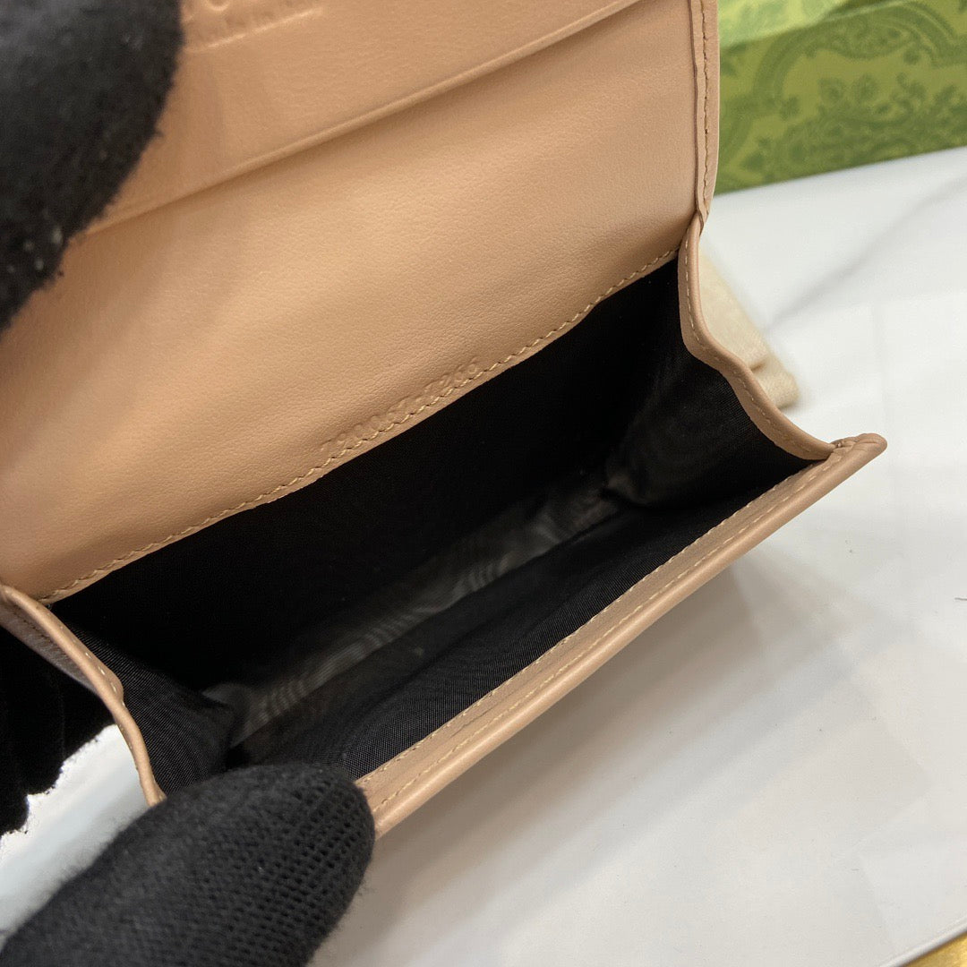 이 카드 케이스는 마몬트 라인의 대표 요소인 앤티크 골드 톤의 더블 G 로고가 전면에 배치되어 고급스러운 포인트를 더합니다. 부드러운 가죽 소재에 정교한 디테일이 더해져 클래식하면서도 트렌디한 감성을 자아냅니다.