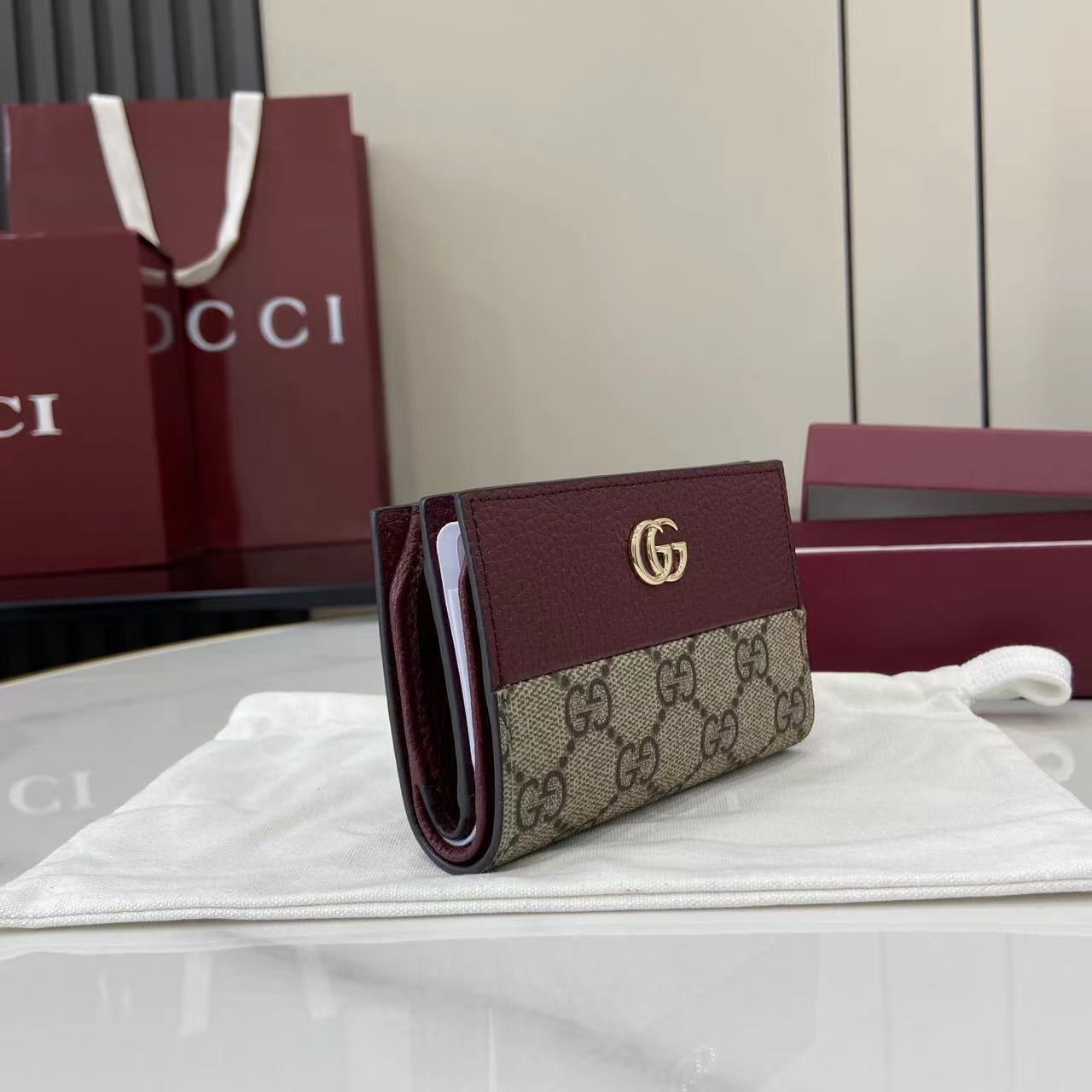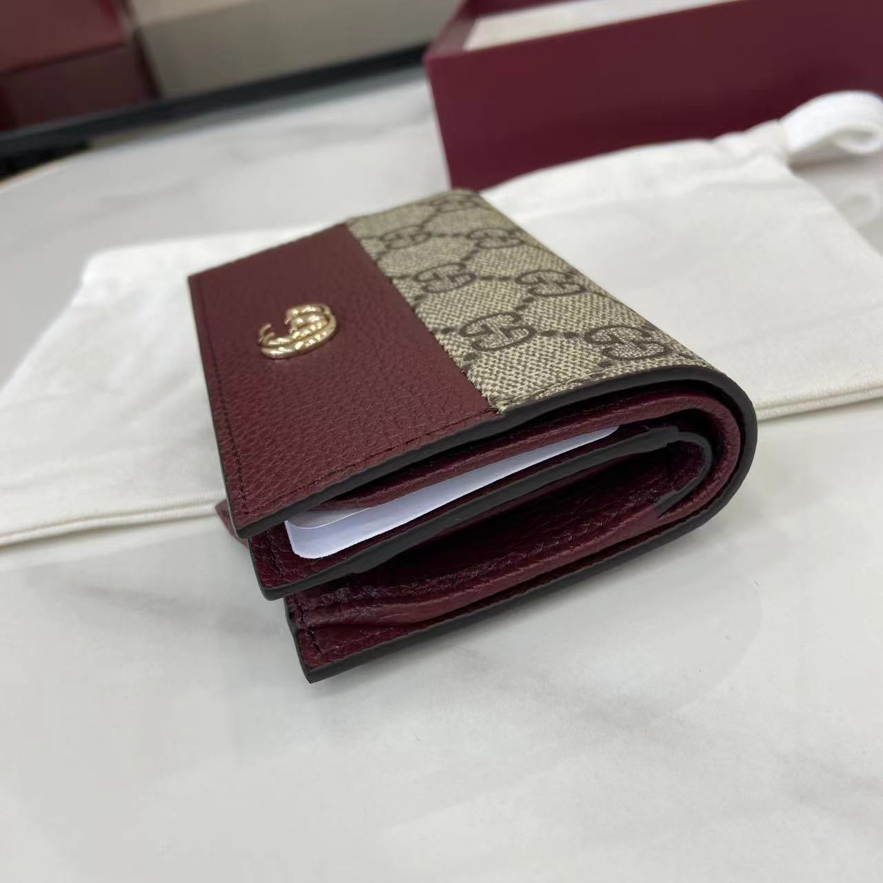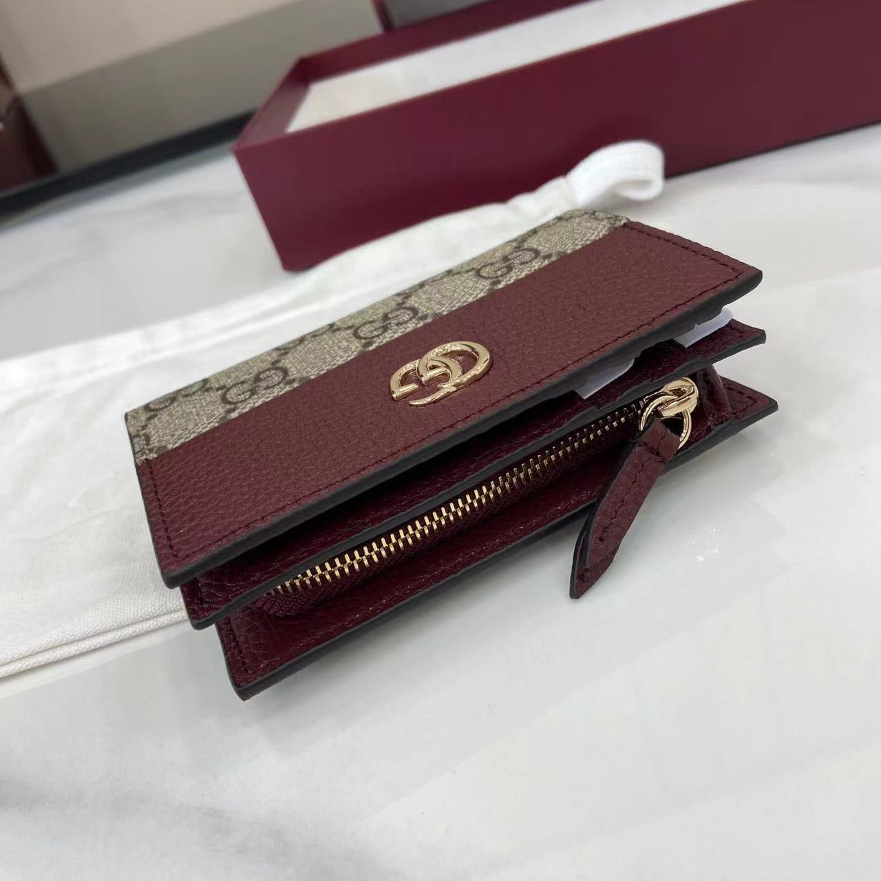 구찌 베이지 로소 앙코라 레더 GG 마몽 바이컬러 카드지갑 - 컴팩트하면서도 실용적인 수납력
