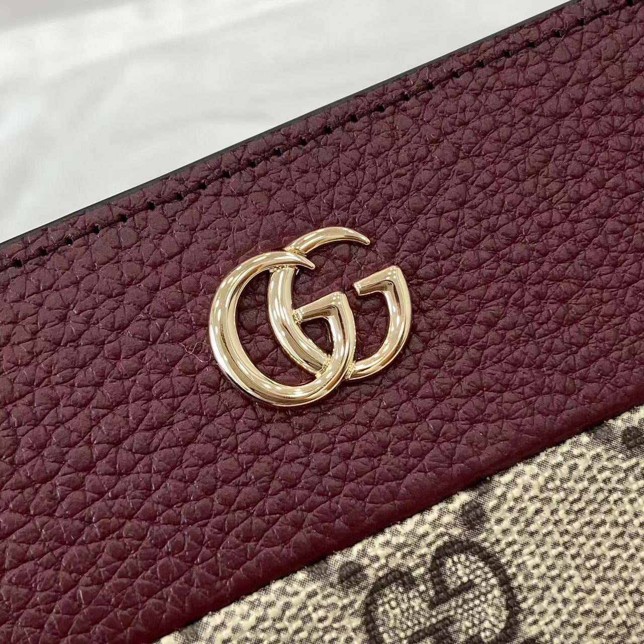 구찌 베이지 로소 앙코라 레더 GG 마몽 바이컬러 카드지갑