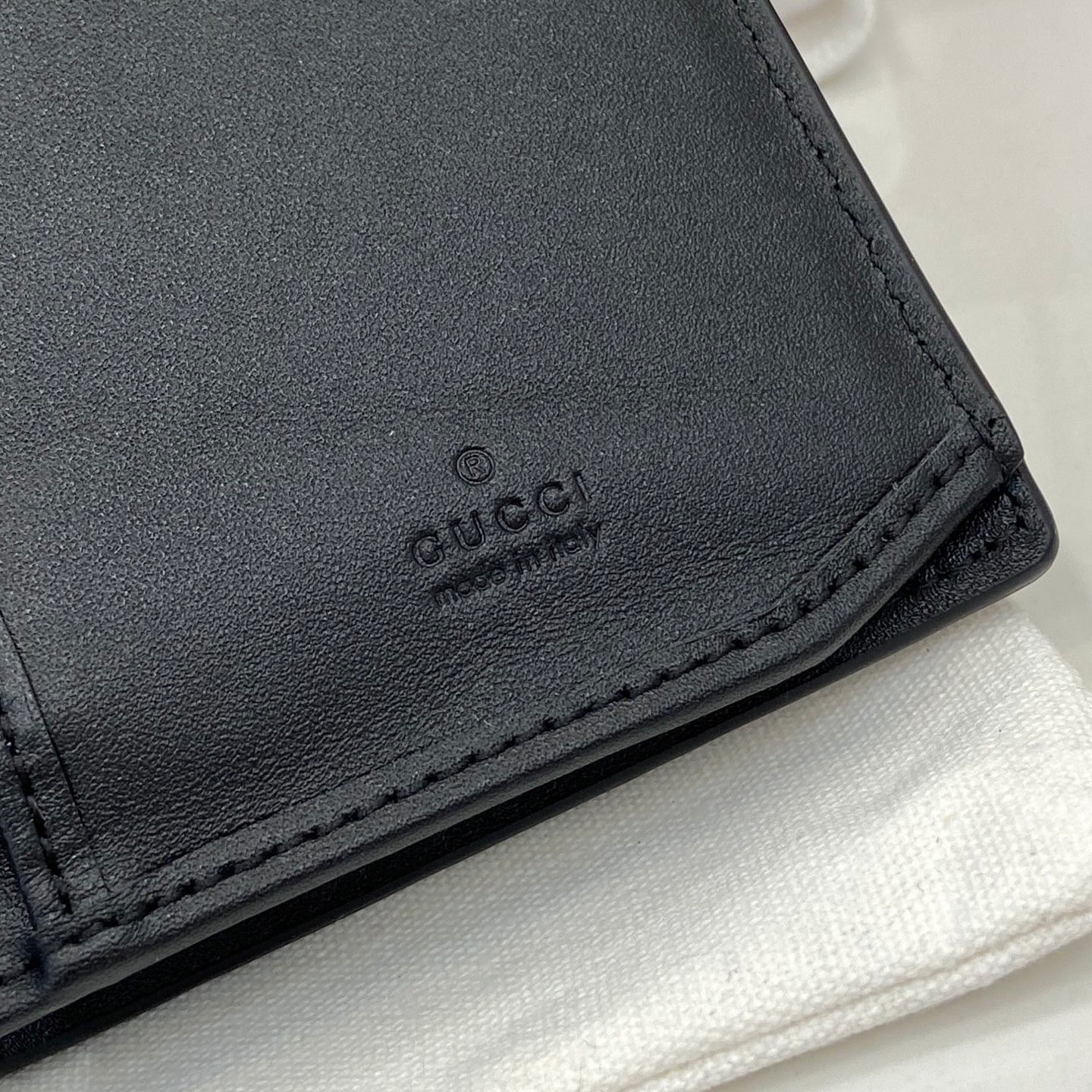 유연하면서도 탄탄한 블랙 천연 가죽에 GG 모노그램을 입체적으로 음각 처리해 고급스러운 질감을 살렸으며, 미니멀한 외형이 구찌 특유의 모던하고 세련된 감성을 표현합니다. 전체적인 디자인은 간결하면서도 정제된 느낌을 강조합니다.