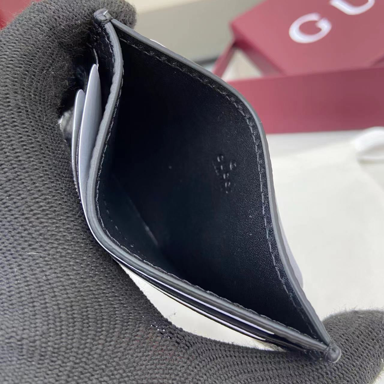 구찌 블랙 GG 레더 임프린트 카드 홀더 - 실속 있는 슬림 수납력