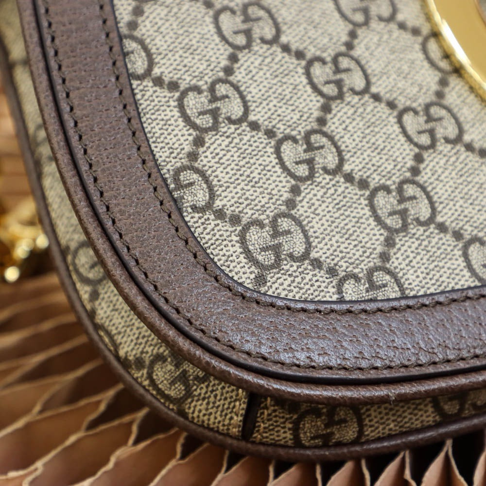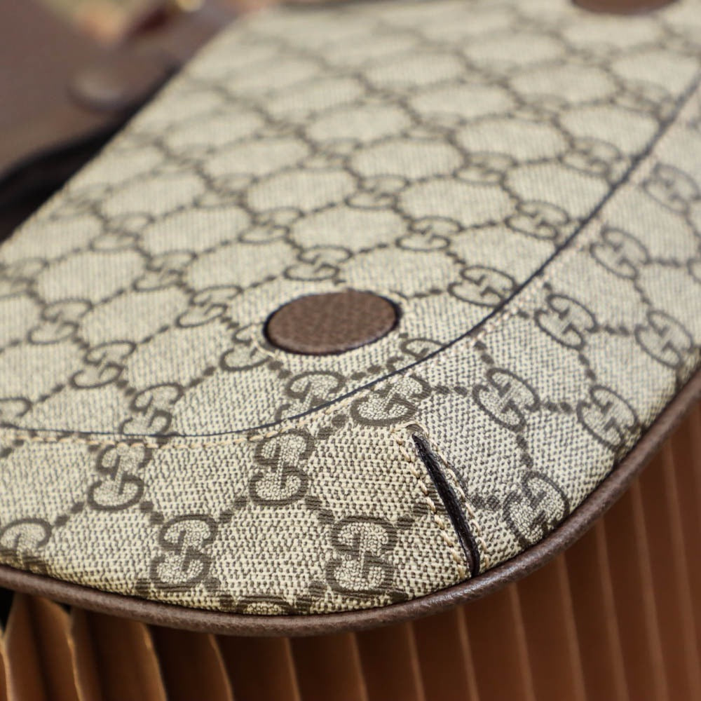 곡선형 플랩 디자인과 라운드 GG 메탈 로고, 유연한 가죽 소재가 어우러져 세련된 실루엣을 완성합니다. 내부는 스웨이드 안감과 지퍼 포켓 및 슬립 포켓으로 구성되어 있어 실용성을 높였으며, 전체적으로 소프트한 구조로 부담 없이 들 수 있습니다.