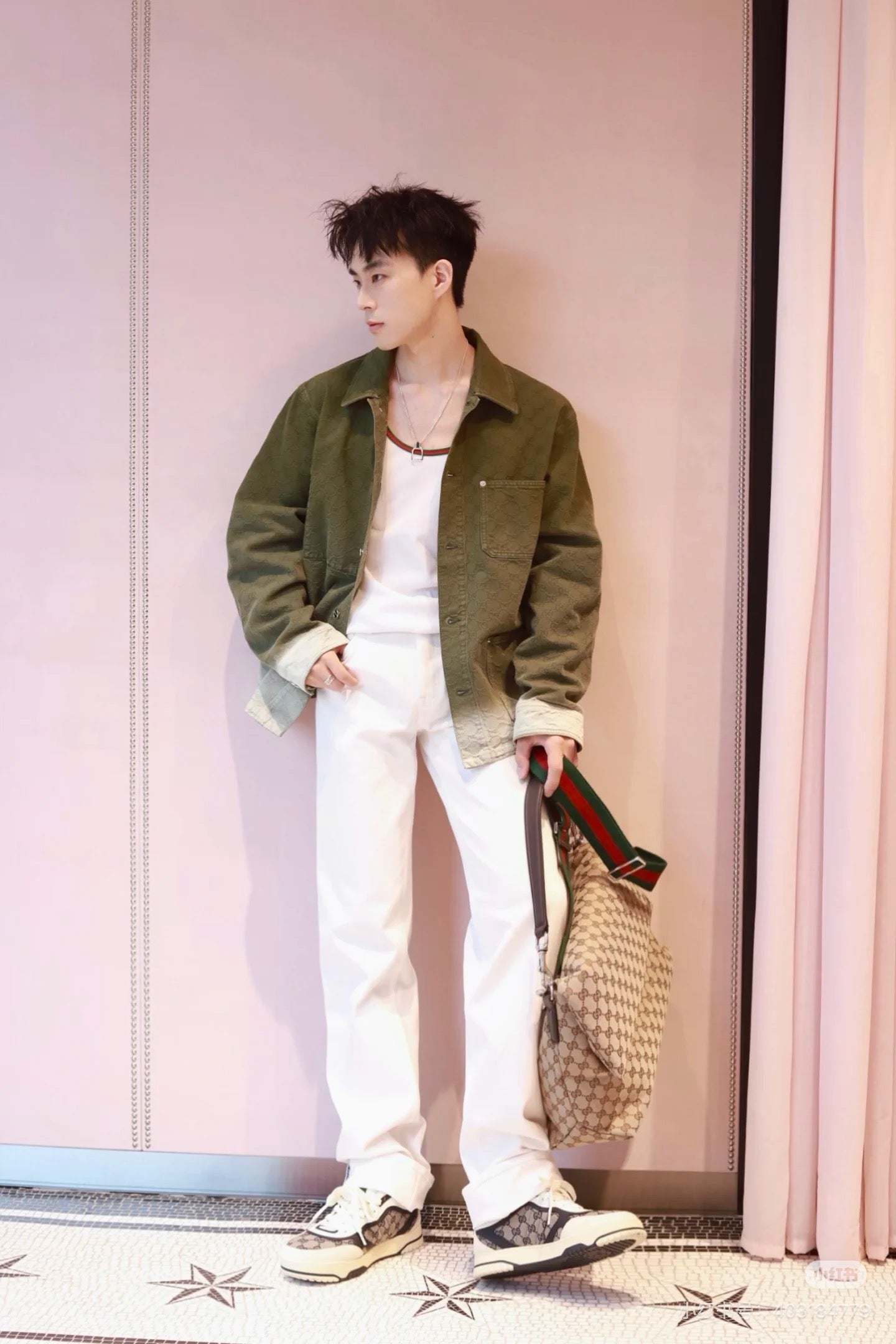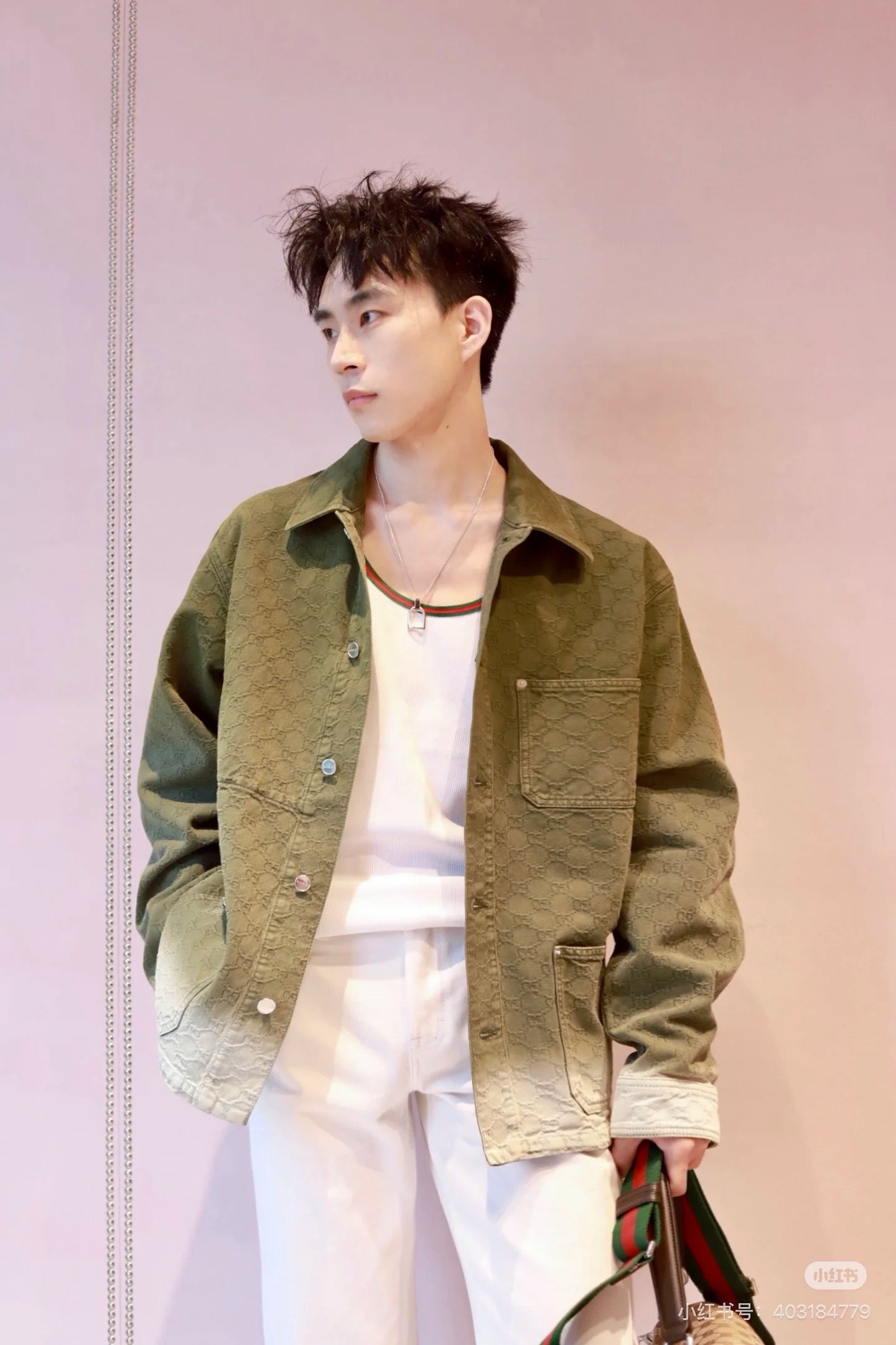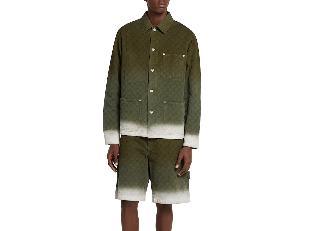 구찌 블리치드 GG 코튼 데님 자카드 셔츠