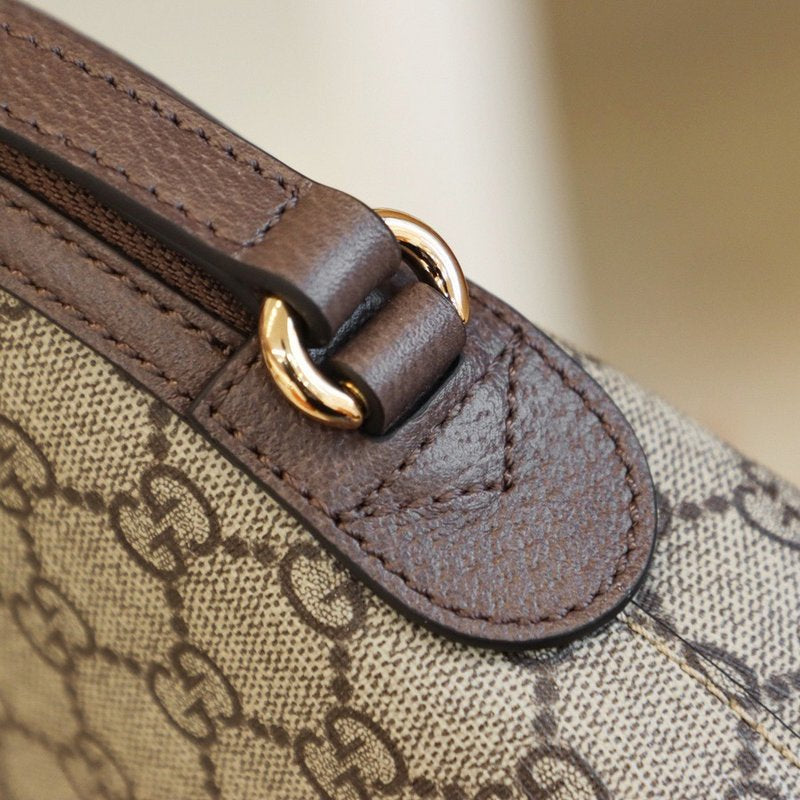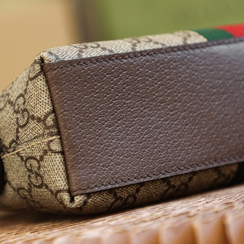 오피디아 라인의 시그니처인 GG 슈프림 캔버스와 초록-레드-초록 웹 스트라이프가 전면을 장식하며, 앤티크한 더블 G 하드웨어가 고급스러운 포인트로 자리합니다. 클래식한 곡선형 실루엣과 부드러운 가죽 트리밍이 조화를 이루며 빈티지한 매력을 현대적으로 풀어낸 디자인입니다.