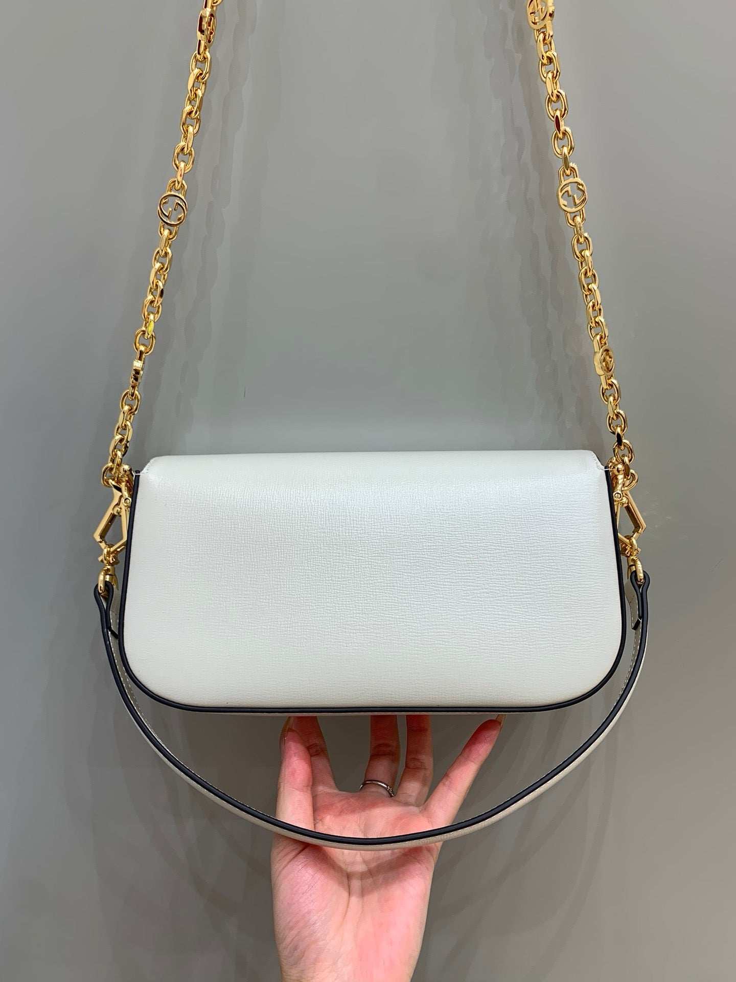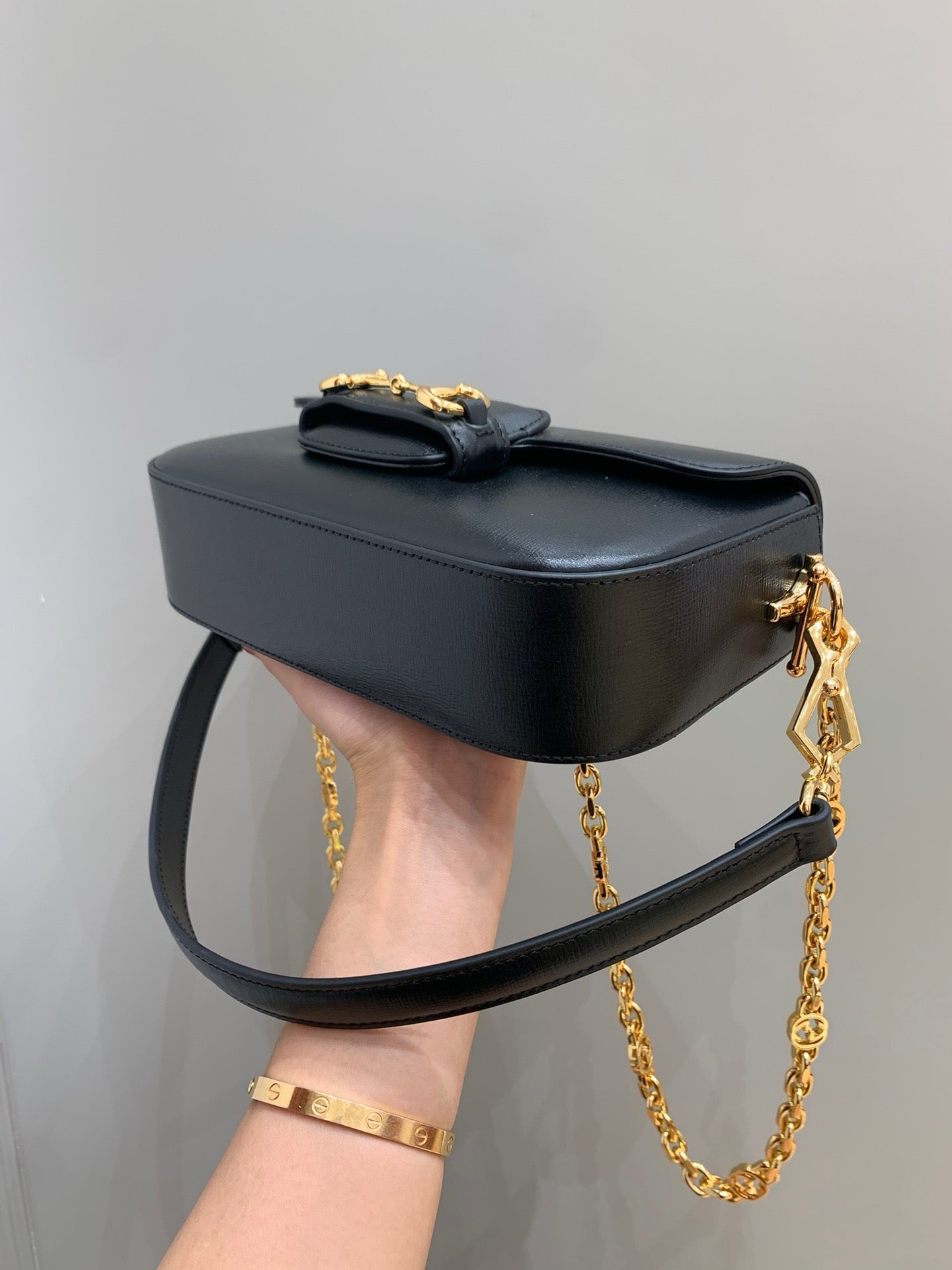 이 가방은 구찌의 아이코닉 홀스빗 디테일이 전면에 배치되어 있으며, 전통적인 디자인을 현대적으로 재해석한 이스트웨스트 실루엣이 특징입니다. 부드러운 가죽 소재는 시간이 지나도 고급스러움을 유지하며, 얇고 긴 체인 스트랩이 우아한 실루엣을 완성해줍니다.