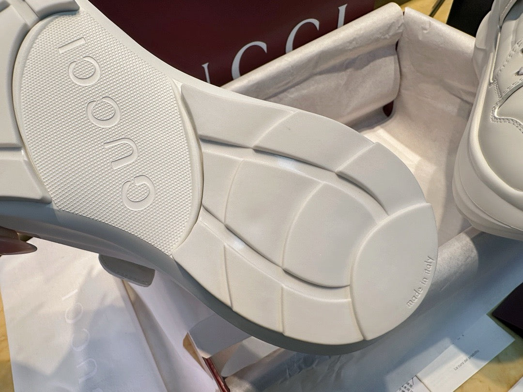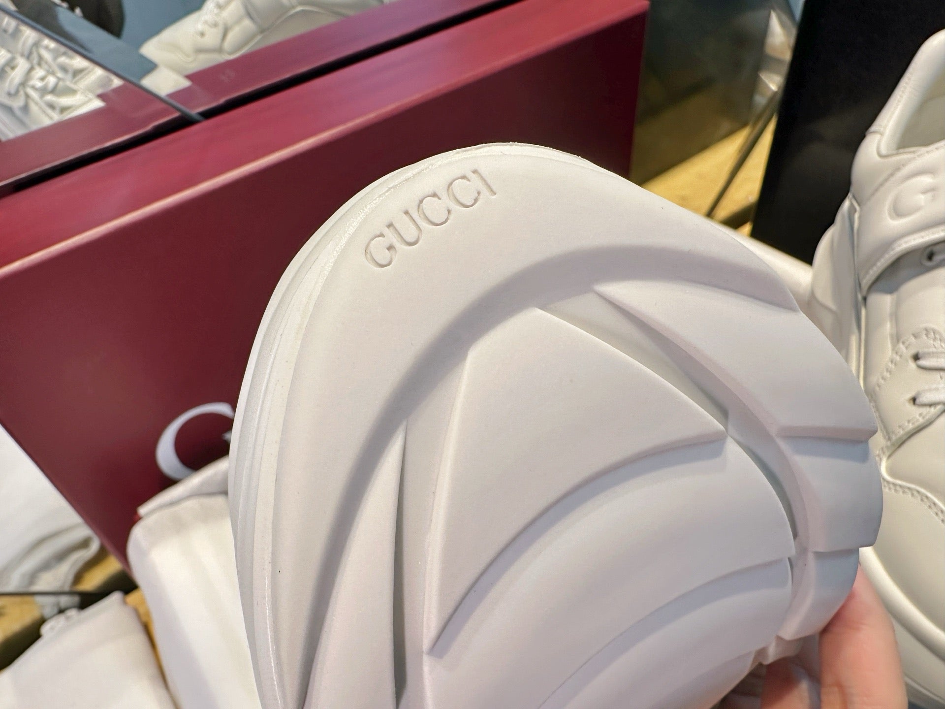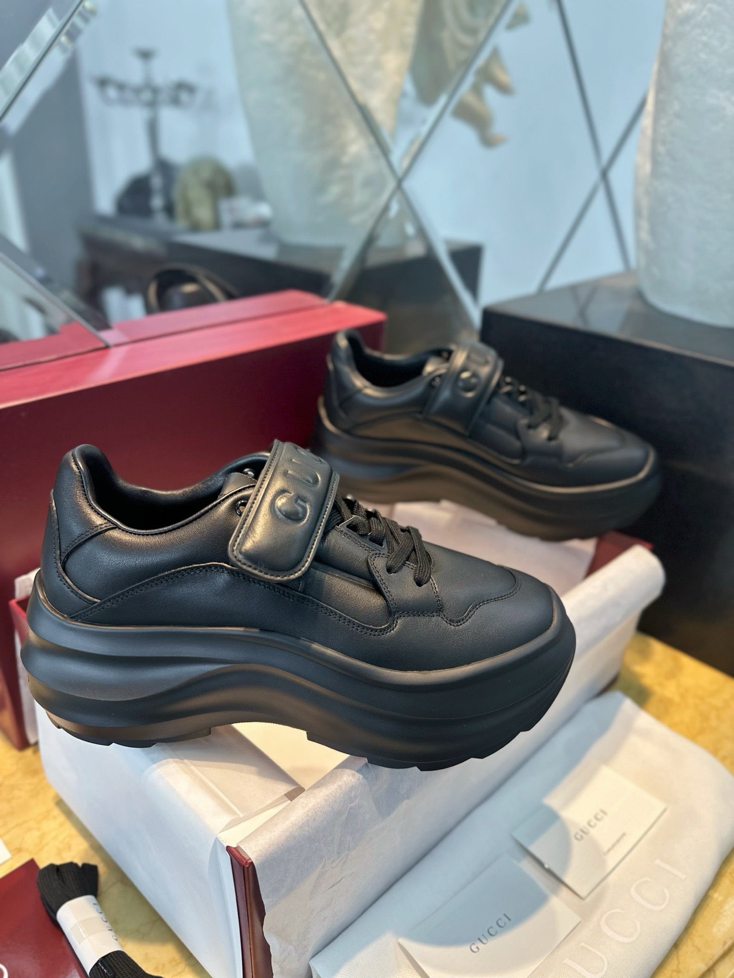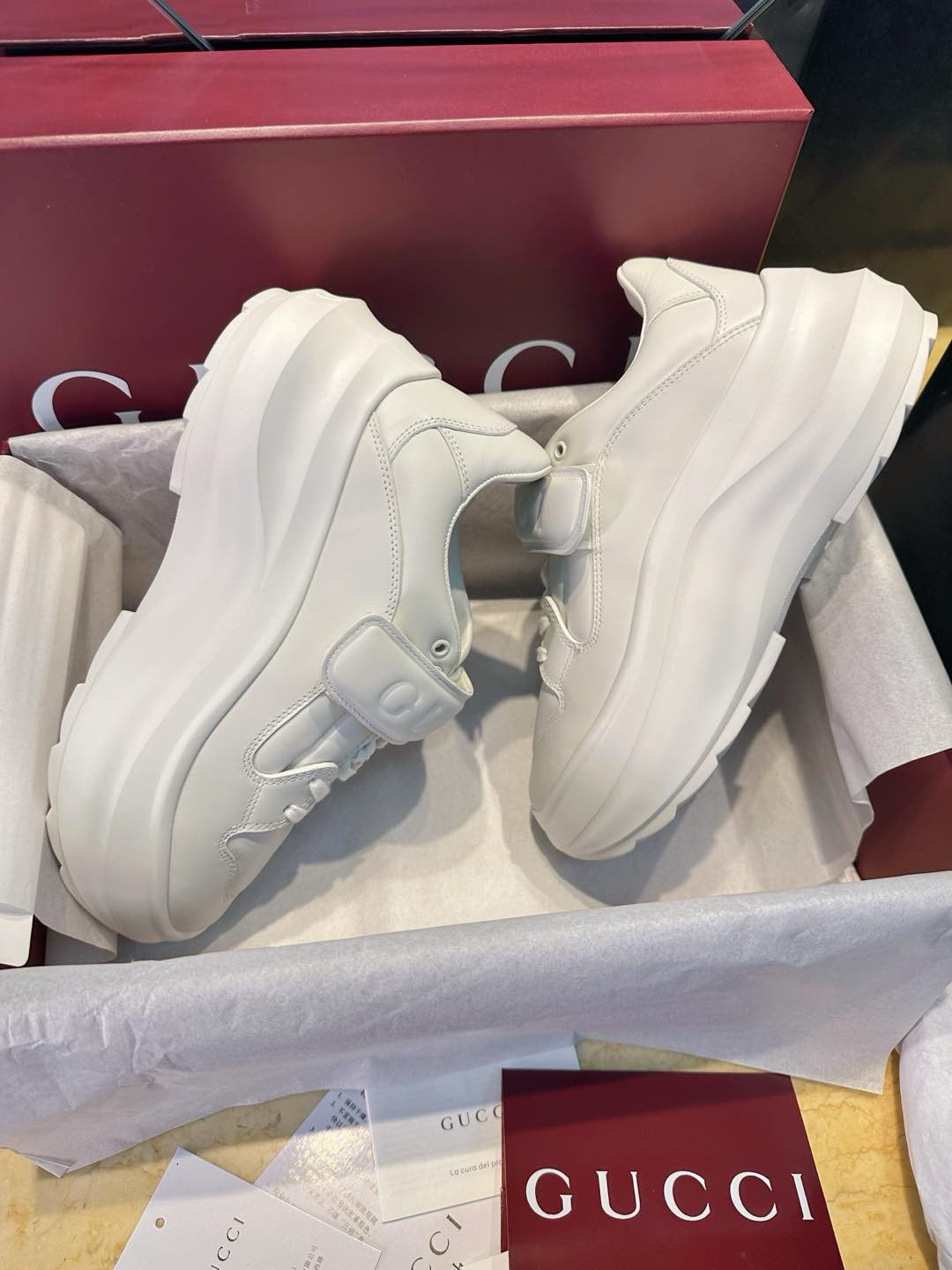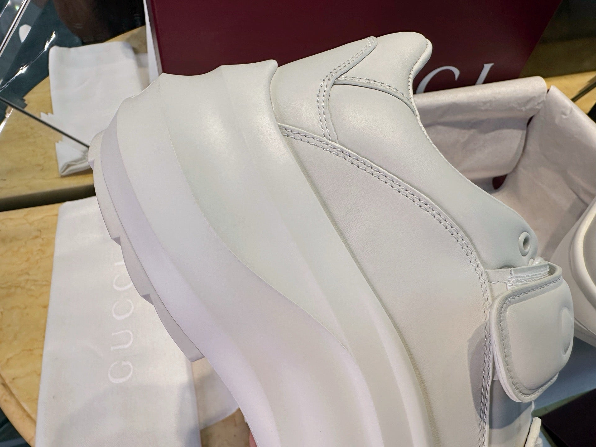 이 스니커즈는 숨겨진 웨지힐이 내장되어 있어 자연스럽게 키 높이 효과를 주며, 전체적인 실루엣에 우아한 곡선을 더합니다. 어퍼는 프리미엄 가죽 또는 메시 소재로 제작되며, 브랜드의 시그니처 스트라이프 디테일이나 GG 로고 패턴이 더해져 구찌만의 감각을 보여줍니다. 청키한 아웃솔은 안정적인 착화감을 제공하며, 트렌디한 애슬레저 룩과도 잘 어울립니다.