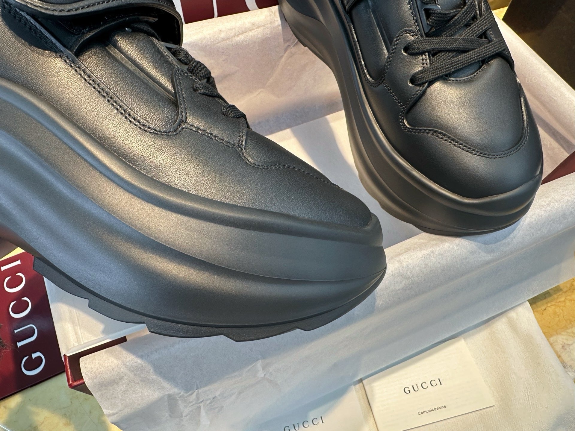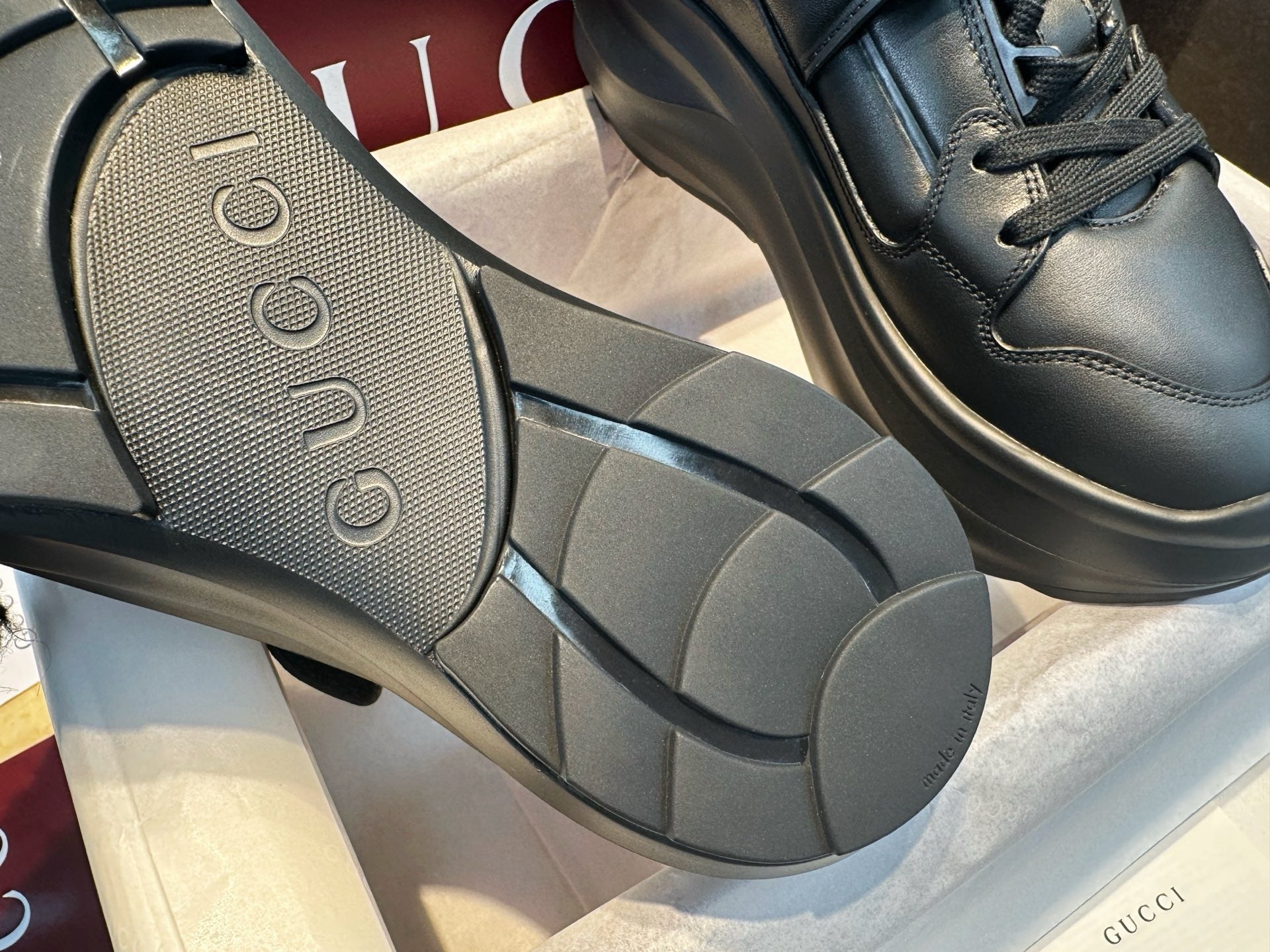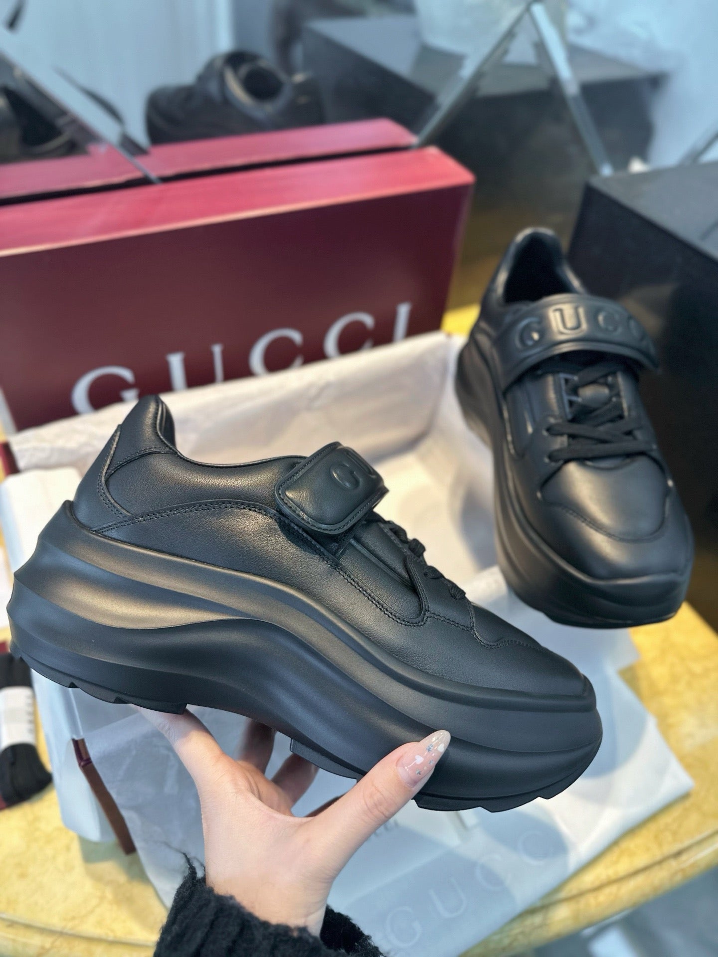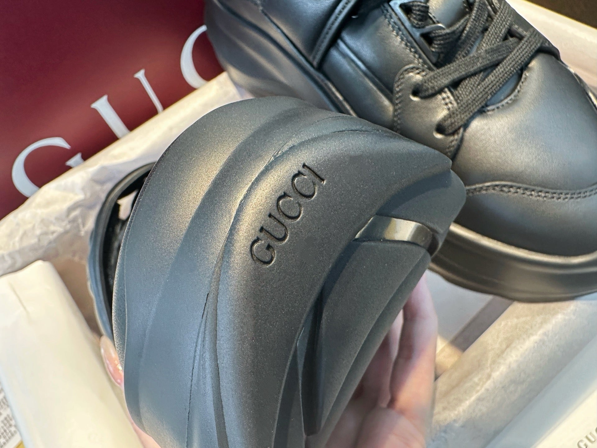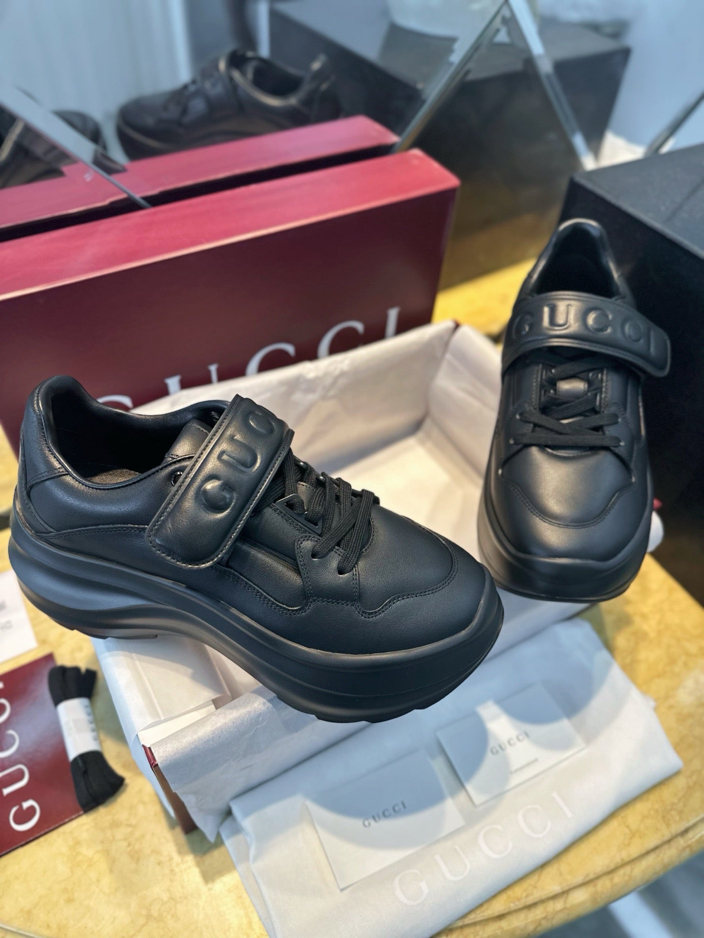 이 스니커즈는 숨겨진 웨지힐이 내장되어 있어 자연스럽게 키 높이 효과를 주며, 전체적인 실루엣에 우아한 곡선을 더합니다. 어퍼는 프리미엄 가죽 또는 메시 소재로 제작되며, 브랜드의 시그니처 스트라이프 디테일이나 GG 로고 패턴이 더해져 구찌만의 감각을 보여줍니다. 청키한 아웃솔은 안정적인 착화감을 제공하며, 트렌디한 애슬레저 룩과도 잘 어울립니다.