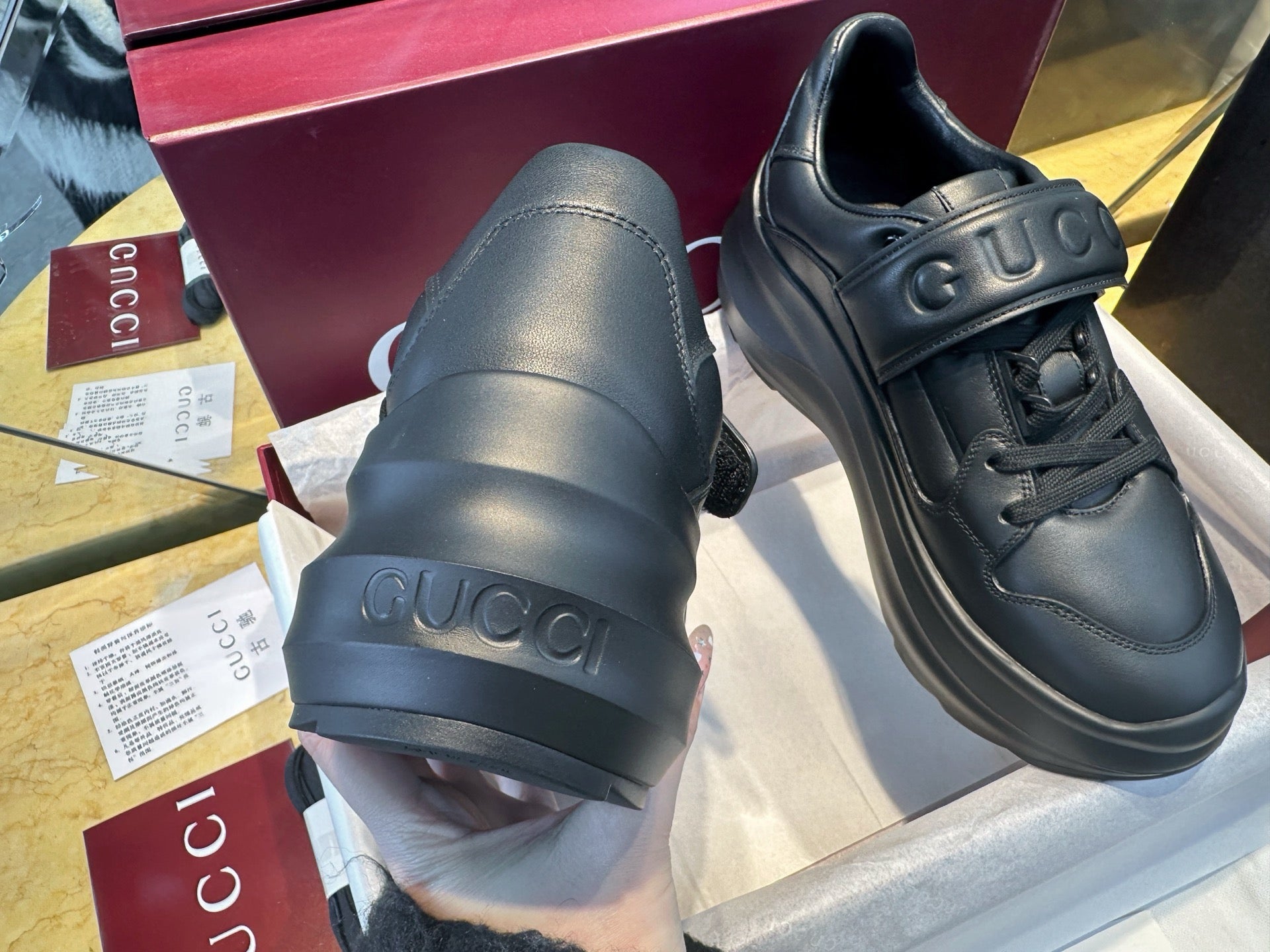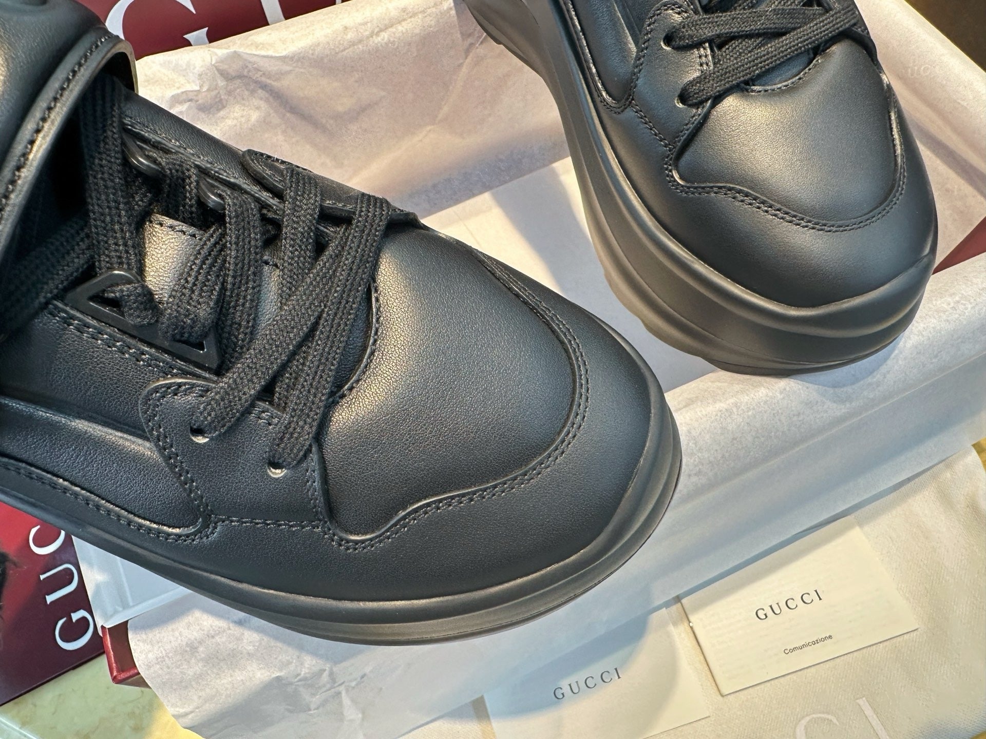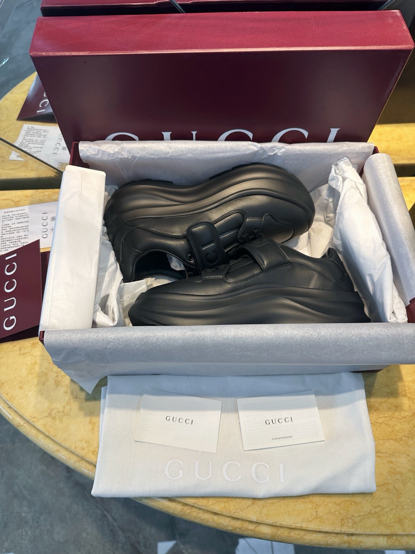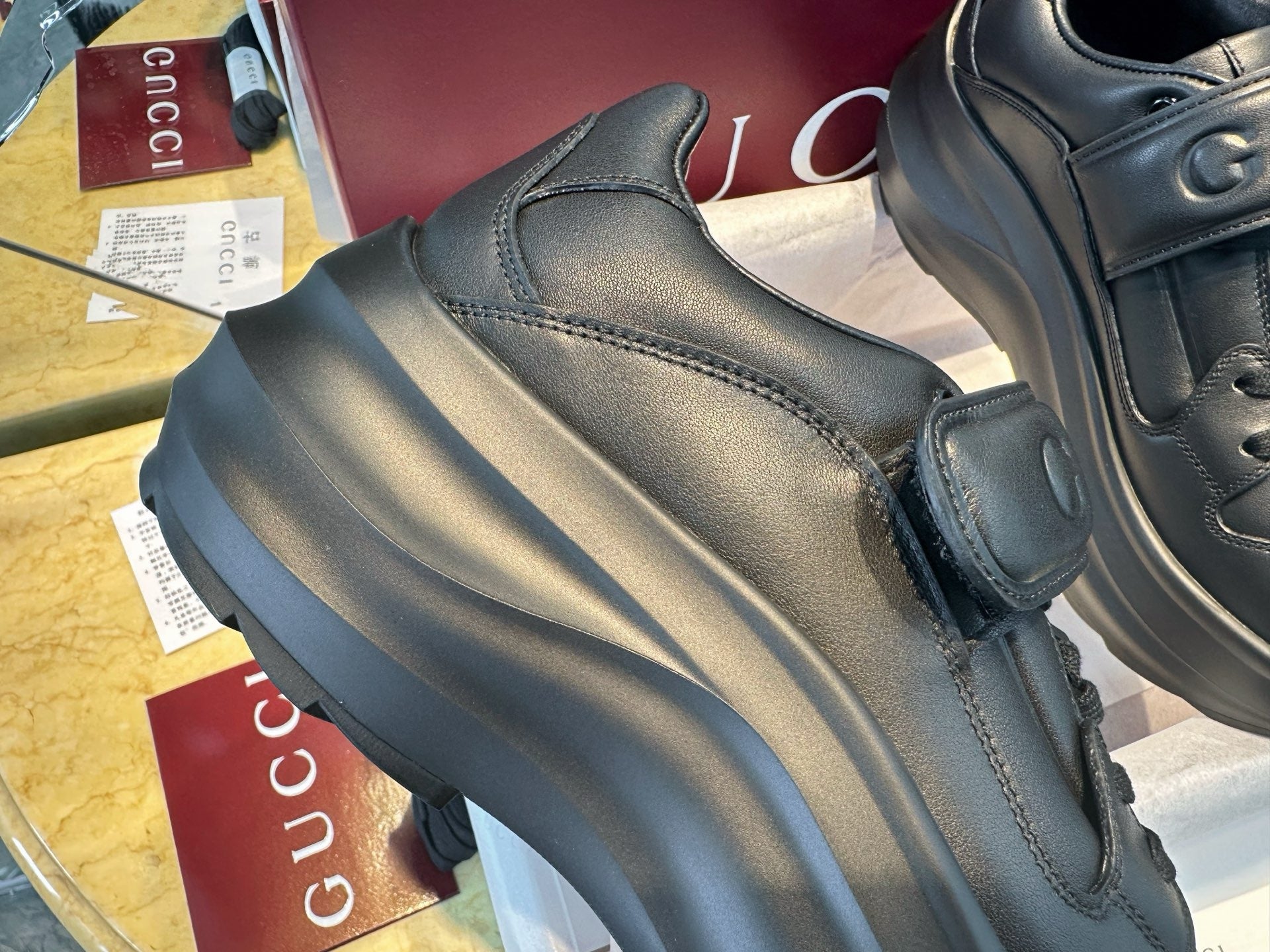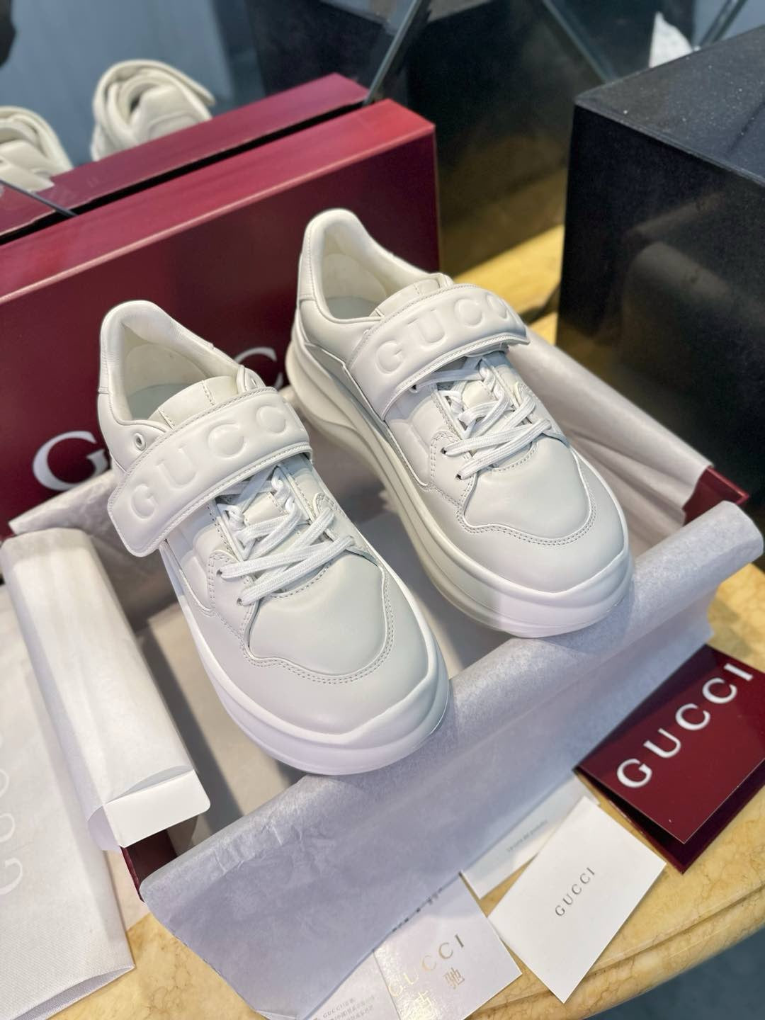 이 스니커즈는 숨겨진 웨지힐이 내장되어 있어 자연스럽게 키 높이 효과를 주며, 전체적인 실루엣에 우아한 곡선을 더합니다. 어퍼는 프리미엄 가죽 또는 메시 소재로 제작되며, 브랜드의 시그니처 스트라이프 디테일이나 GG 로고 패턴이 더해져 구찌만의 감각을 보여줍니다. 청키한 아웃솔은 안정적인 착화감을 제공하며, 트렌디한 애슬레저 룩과도 잘 어울립니다.