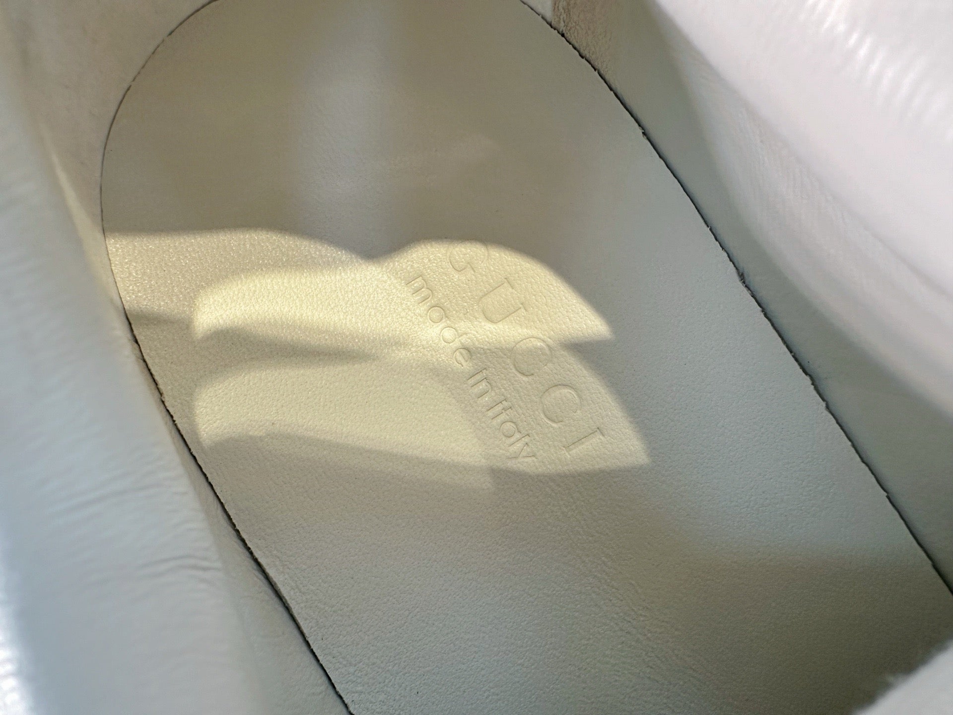 숨겨진 웨지힐 디자인과 구찌 특유의 감각적인 디테일이 결합되어, 패션성과 실용성을 모두 갖춘 것이 특징입니다.