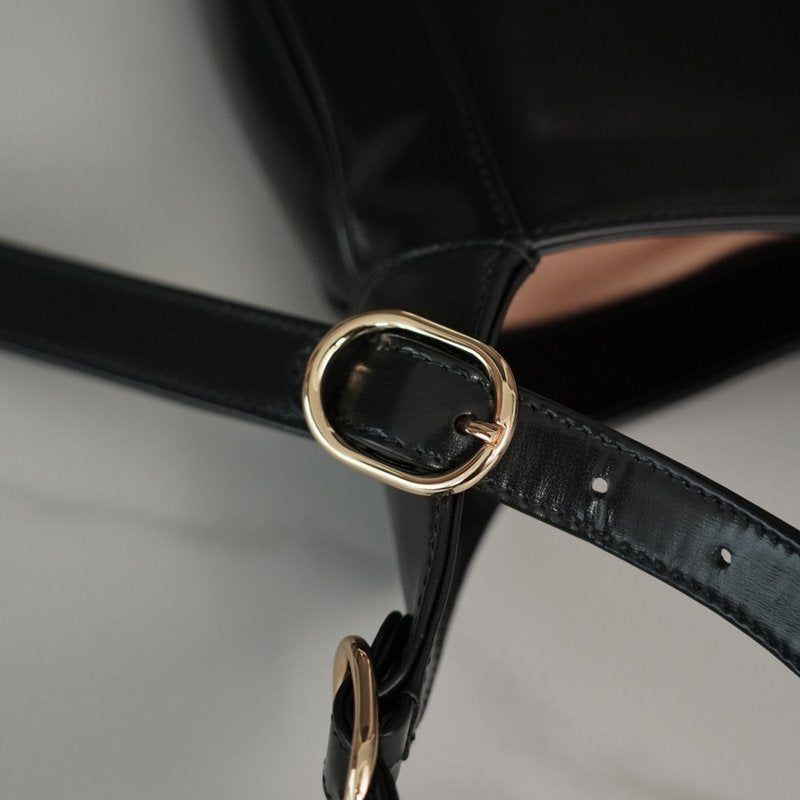 심플한 원피스부터 블라우스+슬랙스 조합까지, 어떤 착장에도 자연스럽게 어울립니다. 특히 구조적인 실루엣과 레더 소재는 고급스러운 무드를 연출해주며, 계절과 무관하게 스타일링할 수 있는 타임리스 아이템입니다.