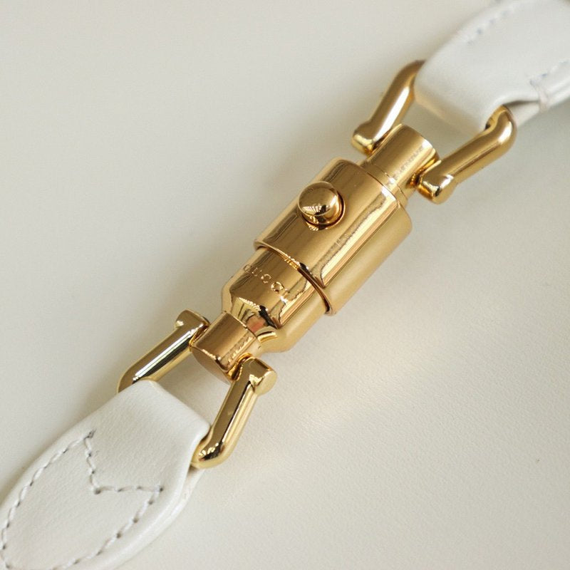 구찌 재키백 레더 미니(Gucci Jackie Bag Leather Mini)는 구찌의 상징적인 재키 디자인을 미니 사이즈로 재해석한 핸드백으로, 컴팩트한 크기와 세련된 디테일이 어우러진 아이템입니다. 클래식한 디자인에 귀여운 미니 사이즈가 더해져 데일리룩은 물론 특별한 자리에도 잘 어울리는 제품입니다.