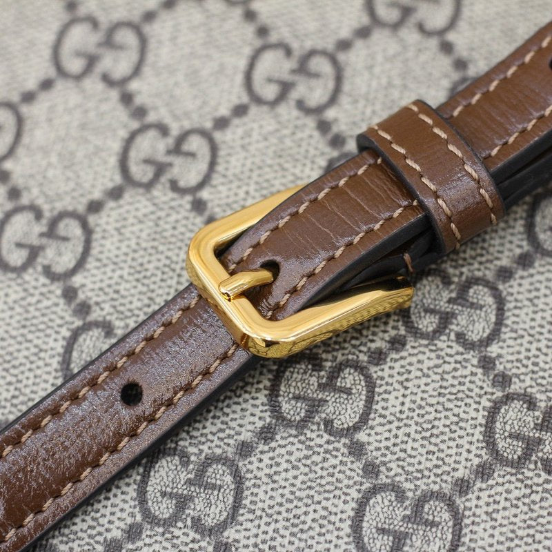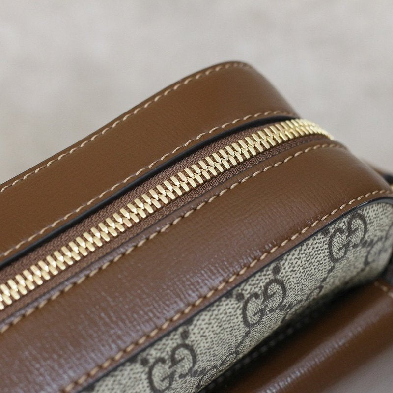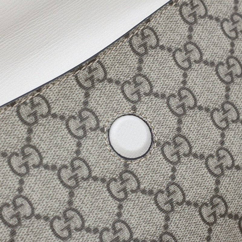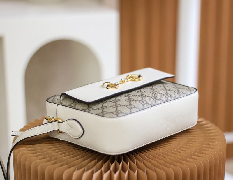 이 백은 GG 슈프림 캔버스 또는 부드러운 가죽 소재로 제작되며, 골드 톤의 말발굽 모양 하드웨어가 특징입니다. 플랩 스타일로 여닫을 수 있으며, 내부는 콤팩트하지만 필수품을 수납할 수 있는 실용적인 구조로 되어 있습니다. 기본 제공되는 톤온톤 레더 스트랩 외에도 Gucci 특유의 레드&그린 웹(Web) 스트랩이 추가로 제공되어, 다양한 스타일 연출이 가능합니다.