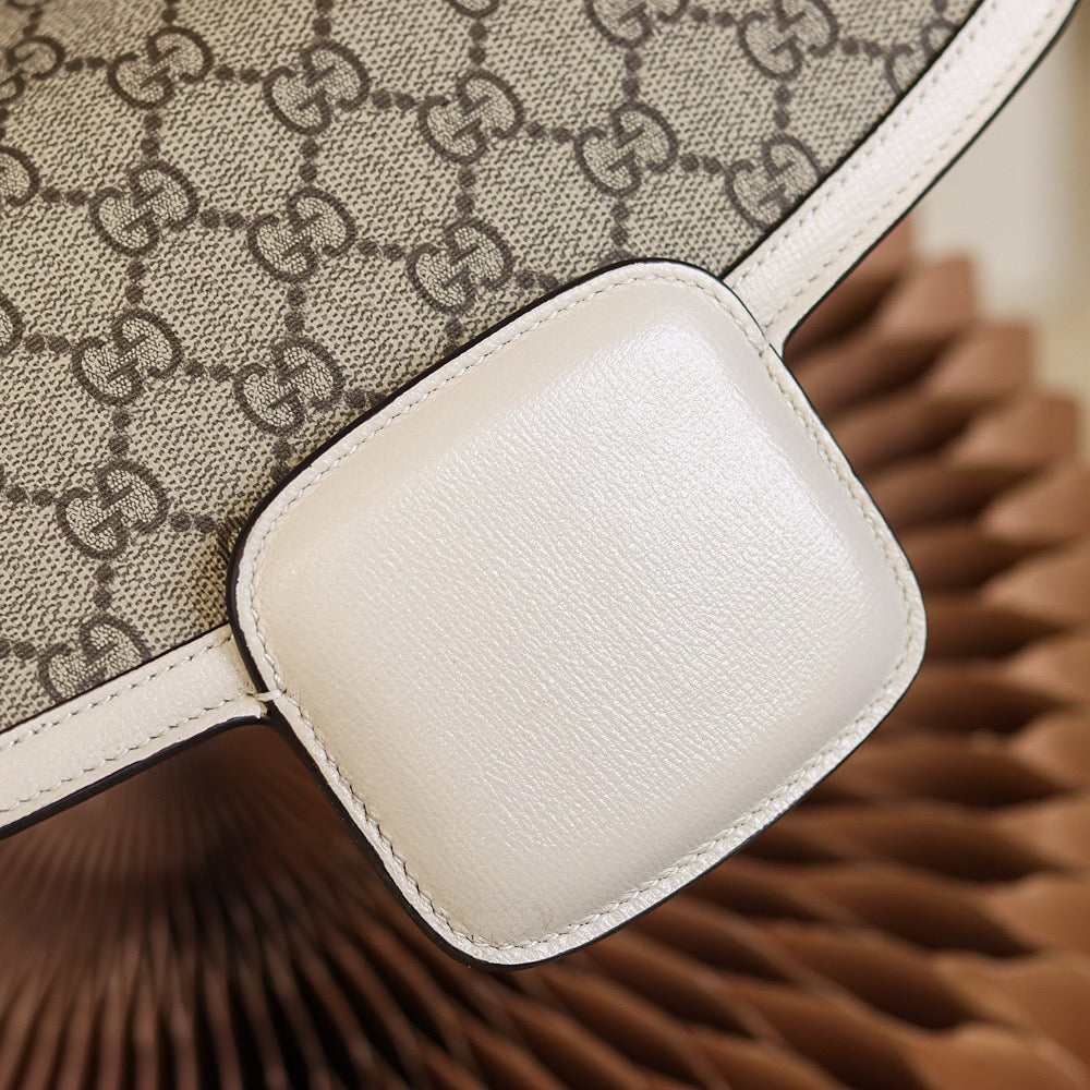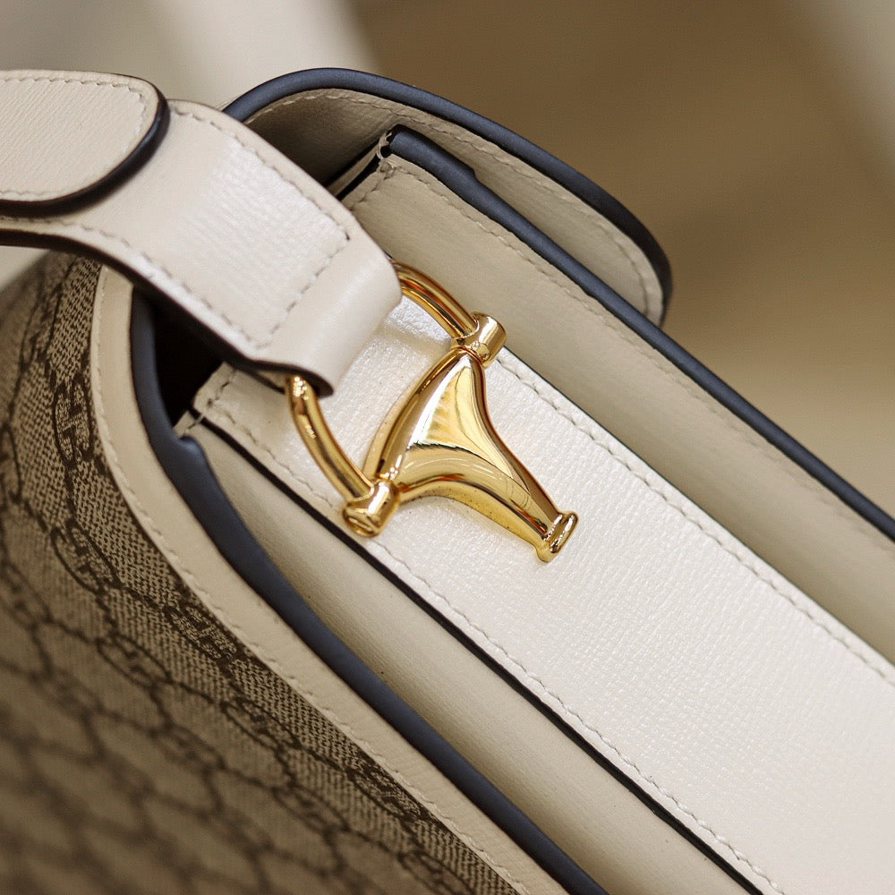홀스빗 하드웨어 장식은 구찌의 헤리티지를 상징하며, 견고한 플랩 디자인과 곡선형 구조는 우아함과 실용성을 동시에 제공합니다. GG 슈프림 캔버스 또는 부드러운 가죽 소재로 제작되며, 정제된 고급스러움을 강조합니다.