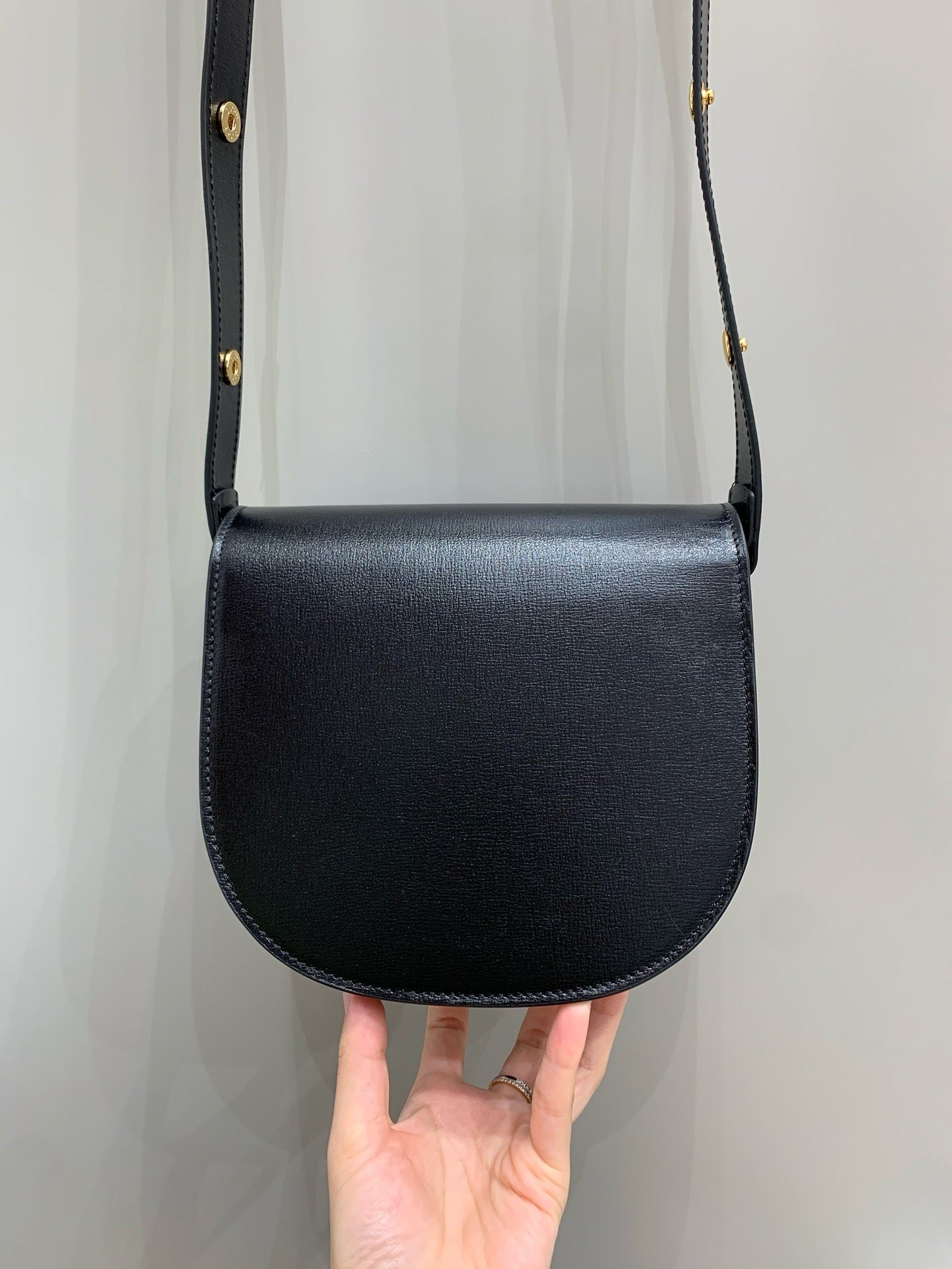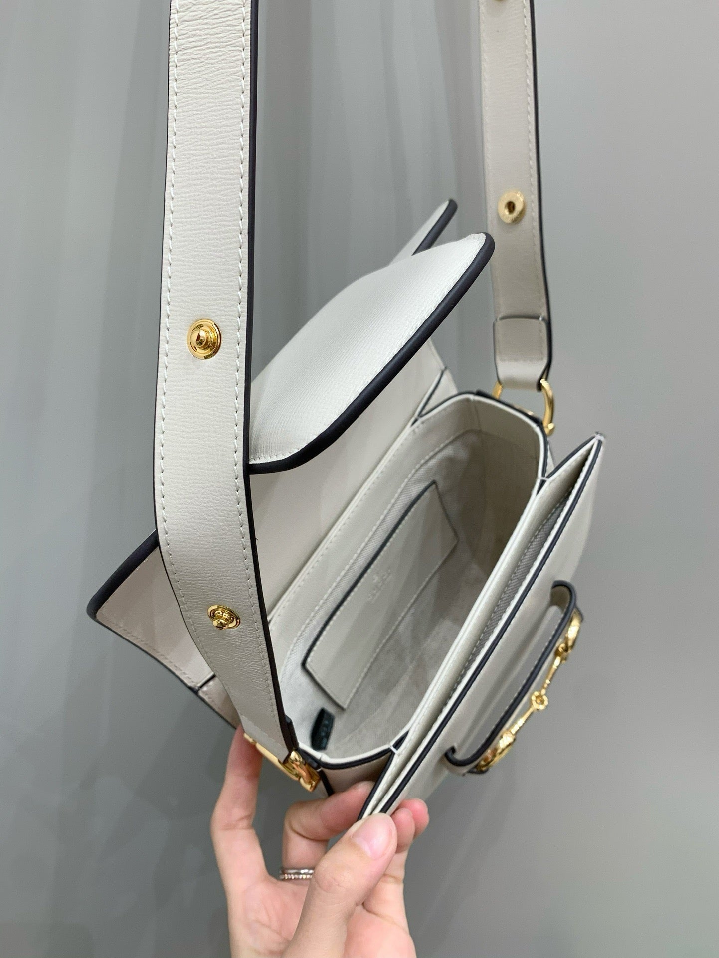 라운드 형태의 부드러운 실루엣은 여성스러운 분위기를 강조하며, 전면에 배치된 홀스빗 메탈 장식이 브랜드의 정체성을 고급스럽게 전달합니다. 올레더 디자인으로 계절과 스타일에 구애받지 않고 활용할 수 있습니다.