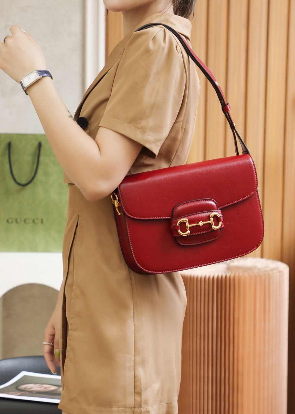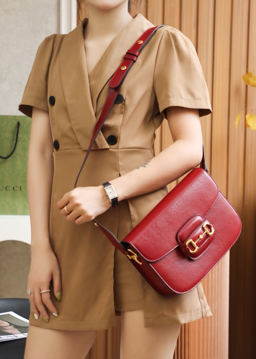 구찌 홀스빗 1955 올레더 숄더백(Gucci Horsebit 1955 All-Leather Shoulder Bag)은 어떻게 착용하나요?