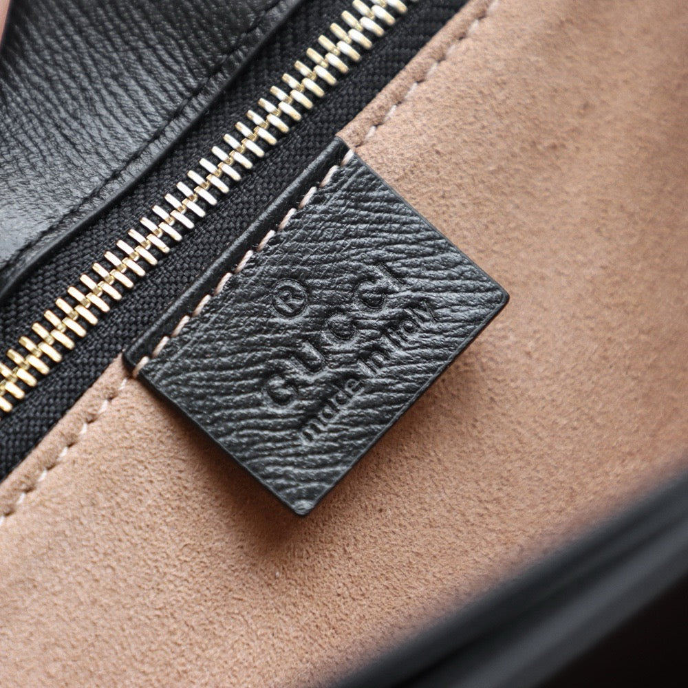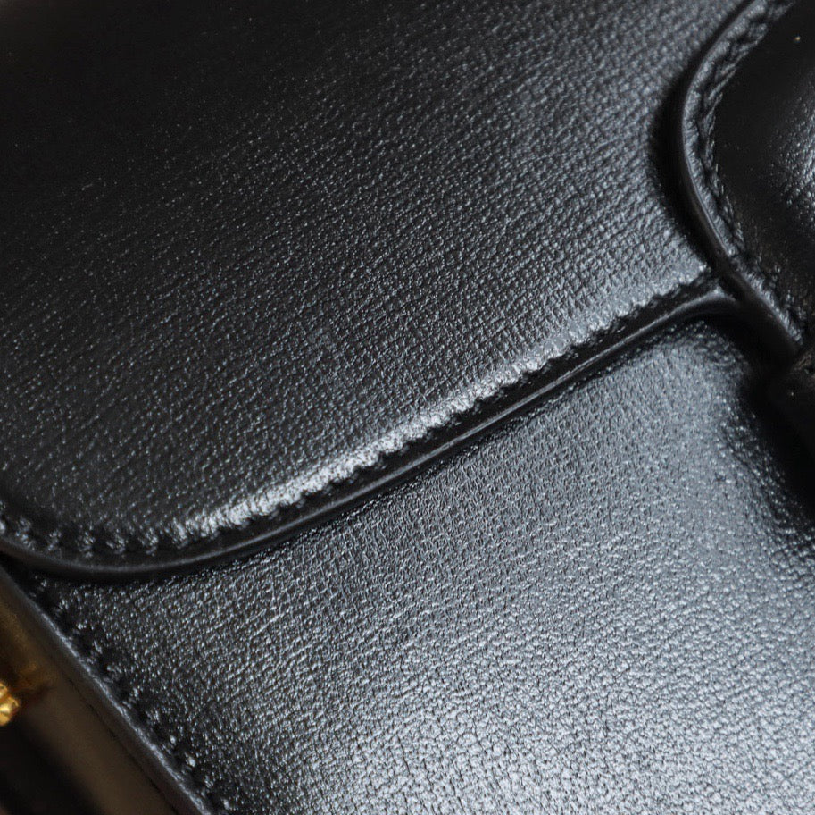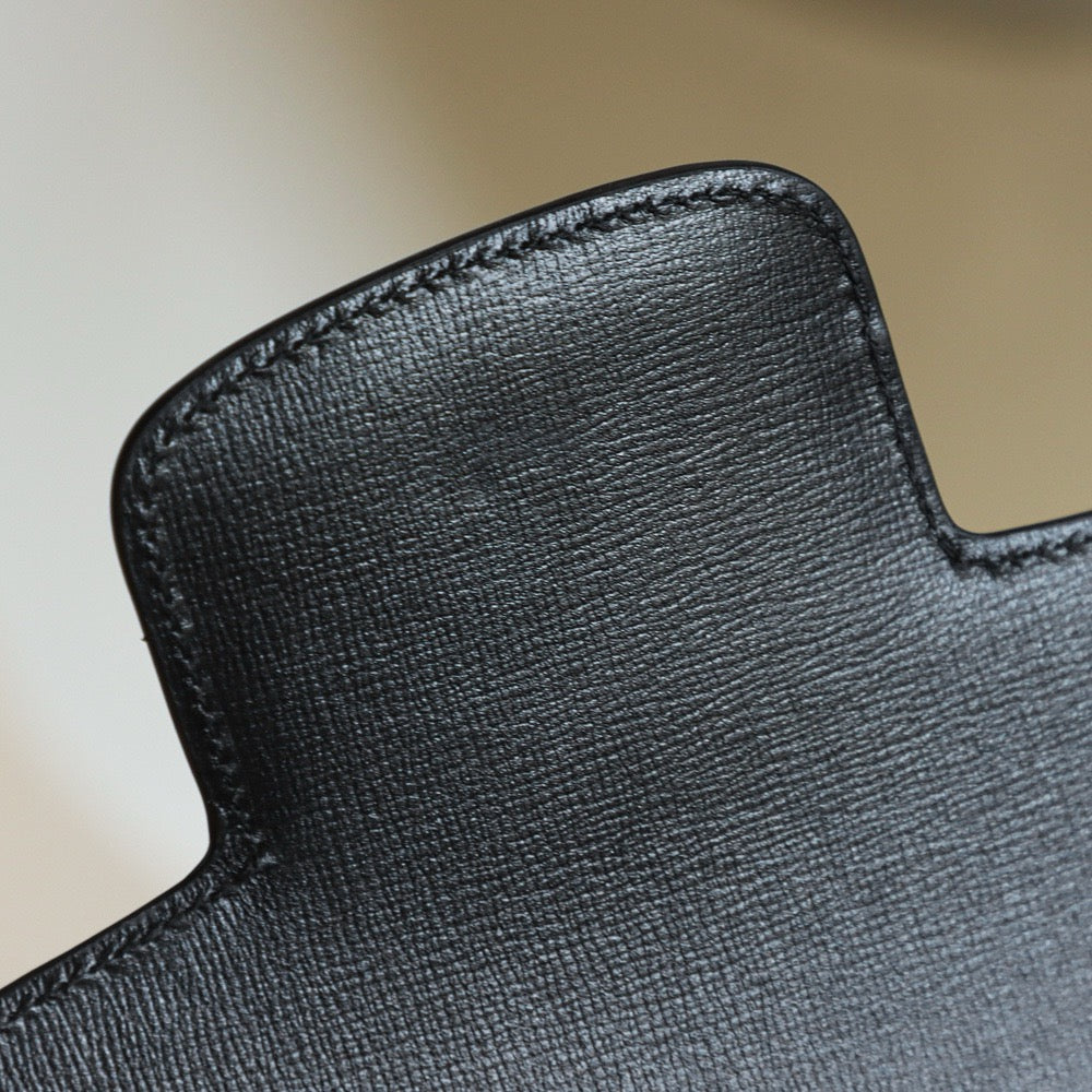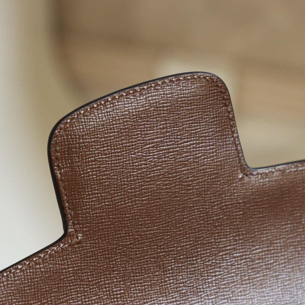전면을 장식한 메탈 홀스빗 디테일은 구찌의 아이덴티티를 상징하며, 전가죽 소재로 한층 더 품격 있는 분위기를 완성합니다. 클래식한 직사각형 실루엣은 단정하면서도 세련된 스타일을 연출하며, 계절과 트렌드에 구애받지 않고 활용할 수 있는 디자인입니다.