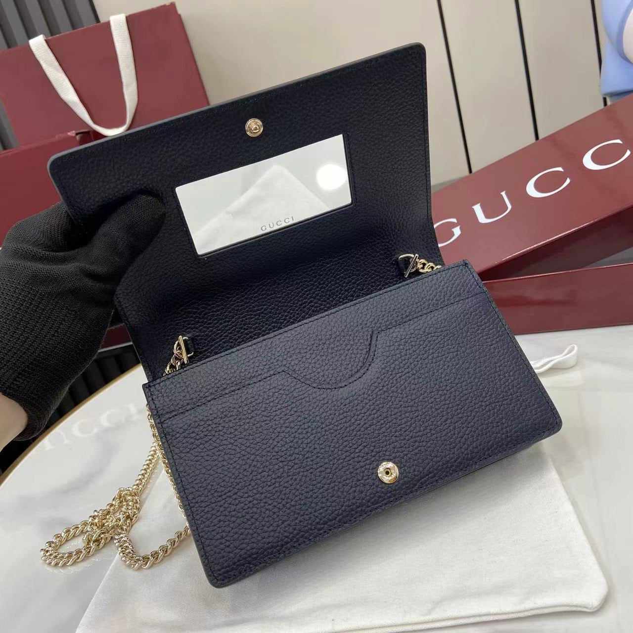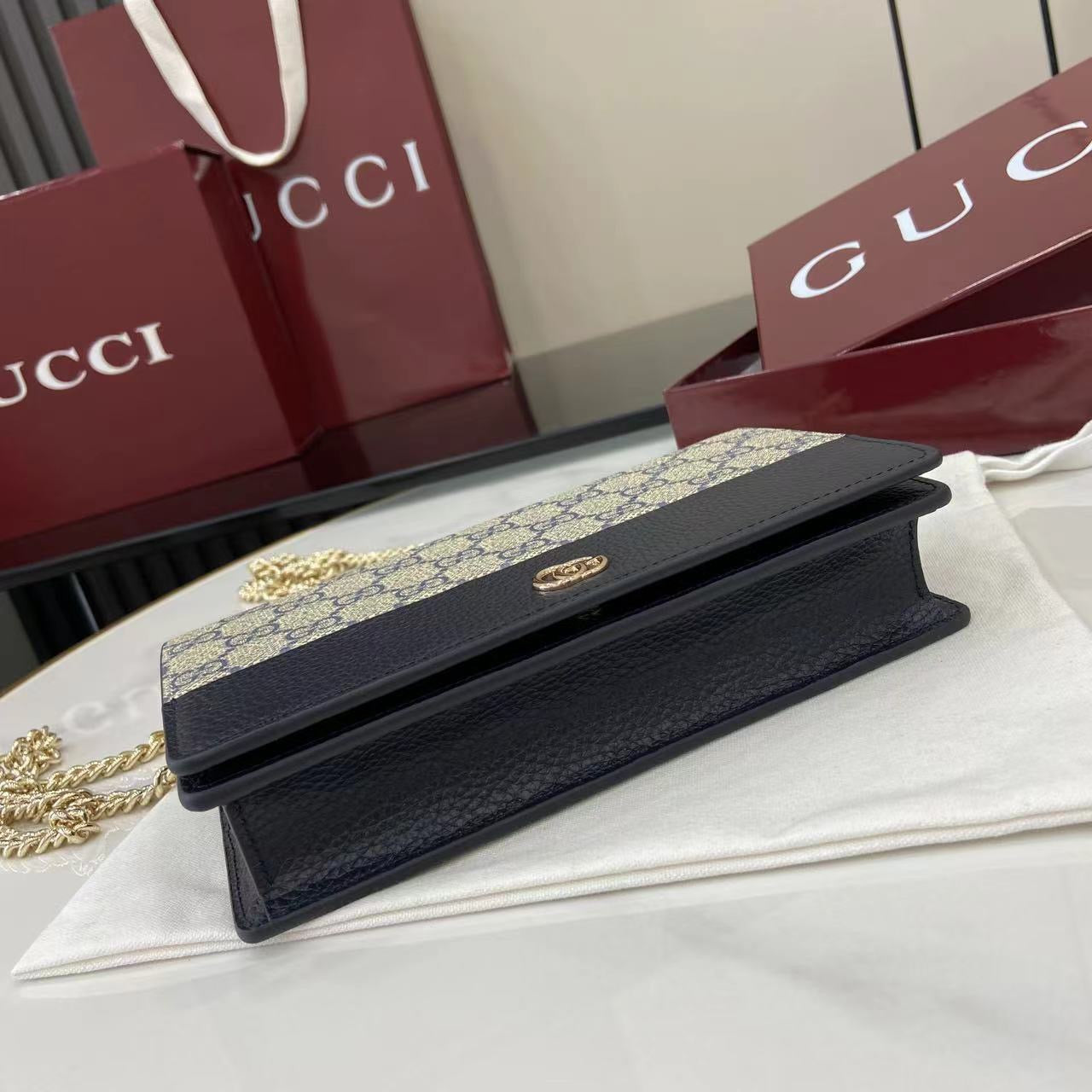 • 디테일: 골드 GG 로고, 체인 스트랩, 플랩 클로저