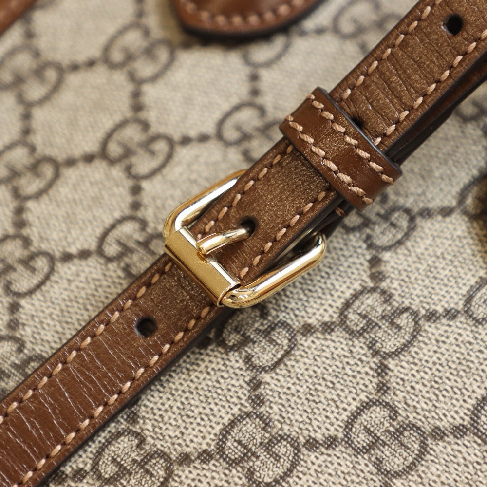 고급 가죽 바디에 견고한 손잡이와 GG 로고 메탈 장식이 조화를 이루며, 내부는 패브릭 또는 스웨이드 안감으로 마감되어 있습니다. 내부 포켓이 포함되어 있어 작은 소지품을 정리하기 좋고, 마그네틱 또는 지퍼 클로저로 안정적인 수납이 가능합니다.