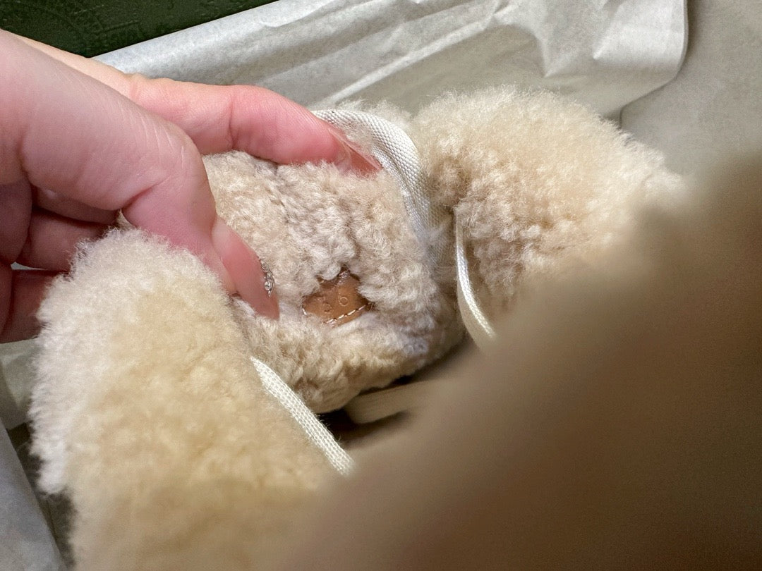 청키한 아웃솔과 넉넉한 쉐입으로 안정감 있는 착용이 가능하며, 시어링 디테일은 발을 포근하게 감싸 추운 날씨에도 따뜻한 착화감을 유지시켜 줍니다. 구찌 특유의 빈티지 로고나 GG 패턴이 디테일에 포함되어 있어, 실용성과 함께 스타일적 완성도도 높습니다.