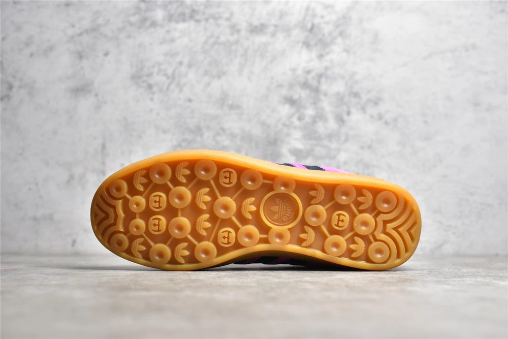 구찌 x 아디다스 가젤 스니커즈 핑크 벨벳은 어떤 디자인이 돋보이나요?
