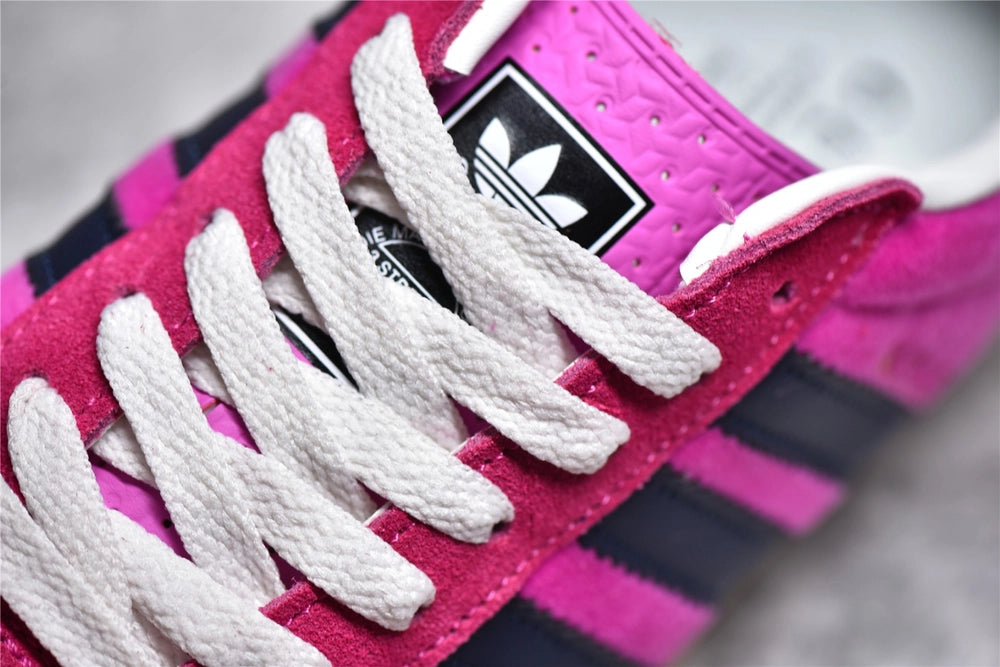 핑크 벨벳 어퍼는 깊이 있는 컬러감과 부드러운 질감을 동시에 제공하며, 여기에 블랙 3-스트라이프와 GG 모노그램, 금색 포일의 ‘Gazelle’ 브랜딩이 더해져 유니크하면서도 고급스러운 분위기를 연출합니다. 이탈리아에서 제조된 본 제품은 마감 퀄리티 또한 탁월합니다.