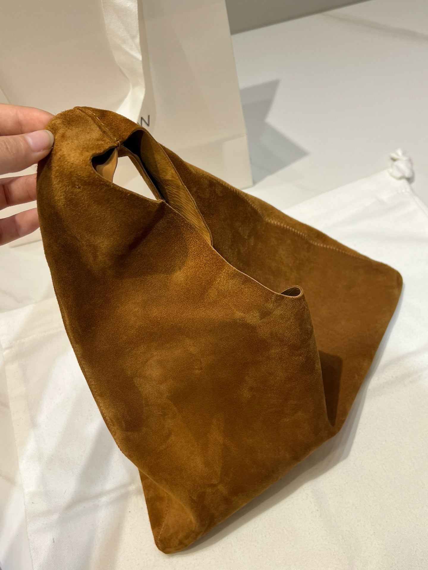 더로우 빈들 토트백 스몰(The Row Bindle Tote Small)은 여유로운 실루엣과 미니멀한 구조미가 어우러진 더로우의 프리미엄 토트백입니다. 부드럽게 떨어지는 쉐입과 간결한 외형으로 감각적인 데일리 스타일을 완성하는 아이템입니다.