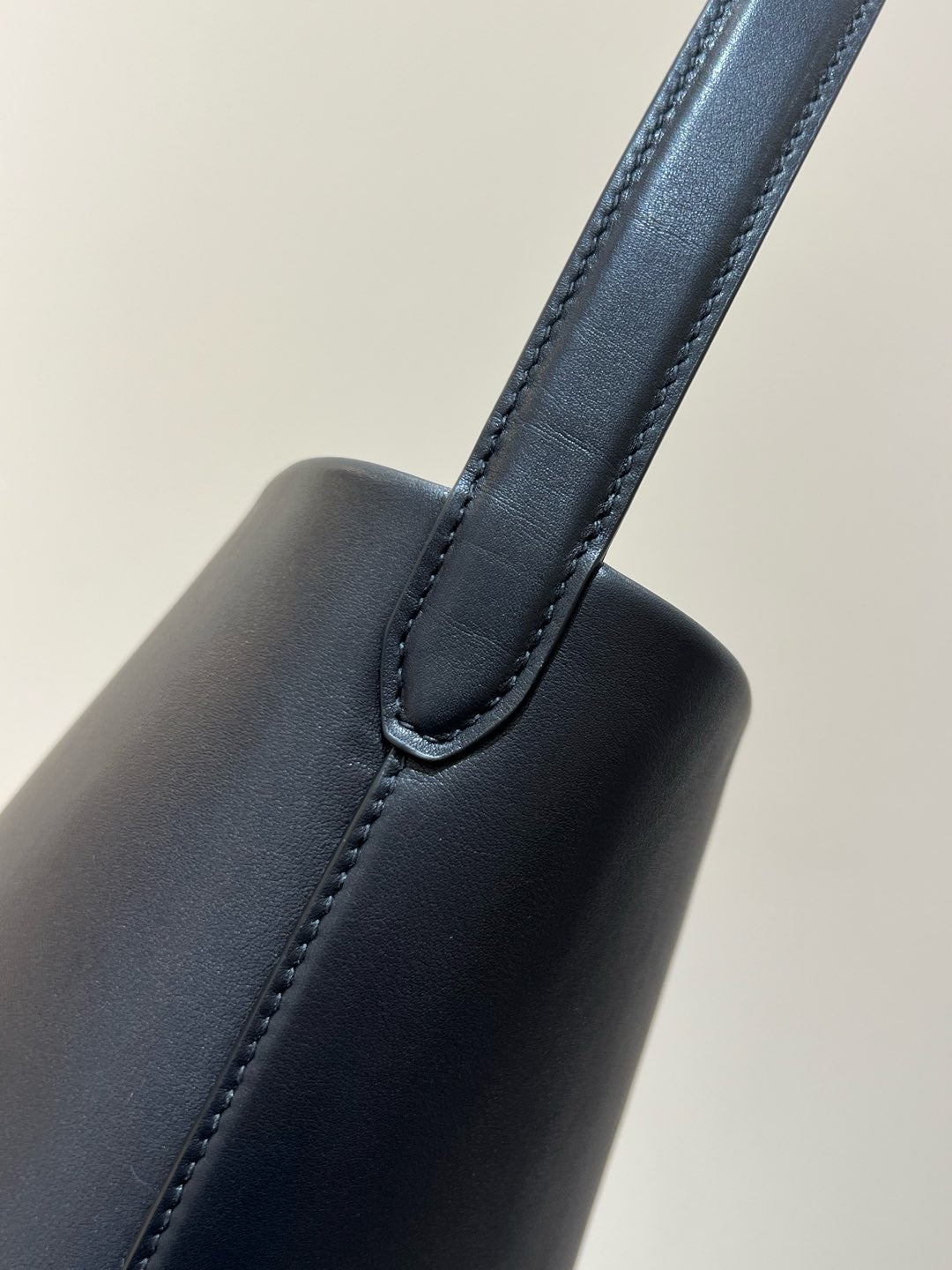 미디움 사이즈로 여유 있는 수납 공간을 제공하며, 외부 장식이 없는 간결한 디자인이 더로우 특유의 절제된 브랜드 아이덴티티를 강조합니다. 스무스 가죽의 부드러운 질감은 모던하면서도 은은한 고급감을 전해줍니다.