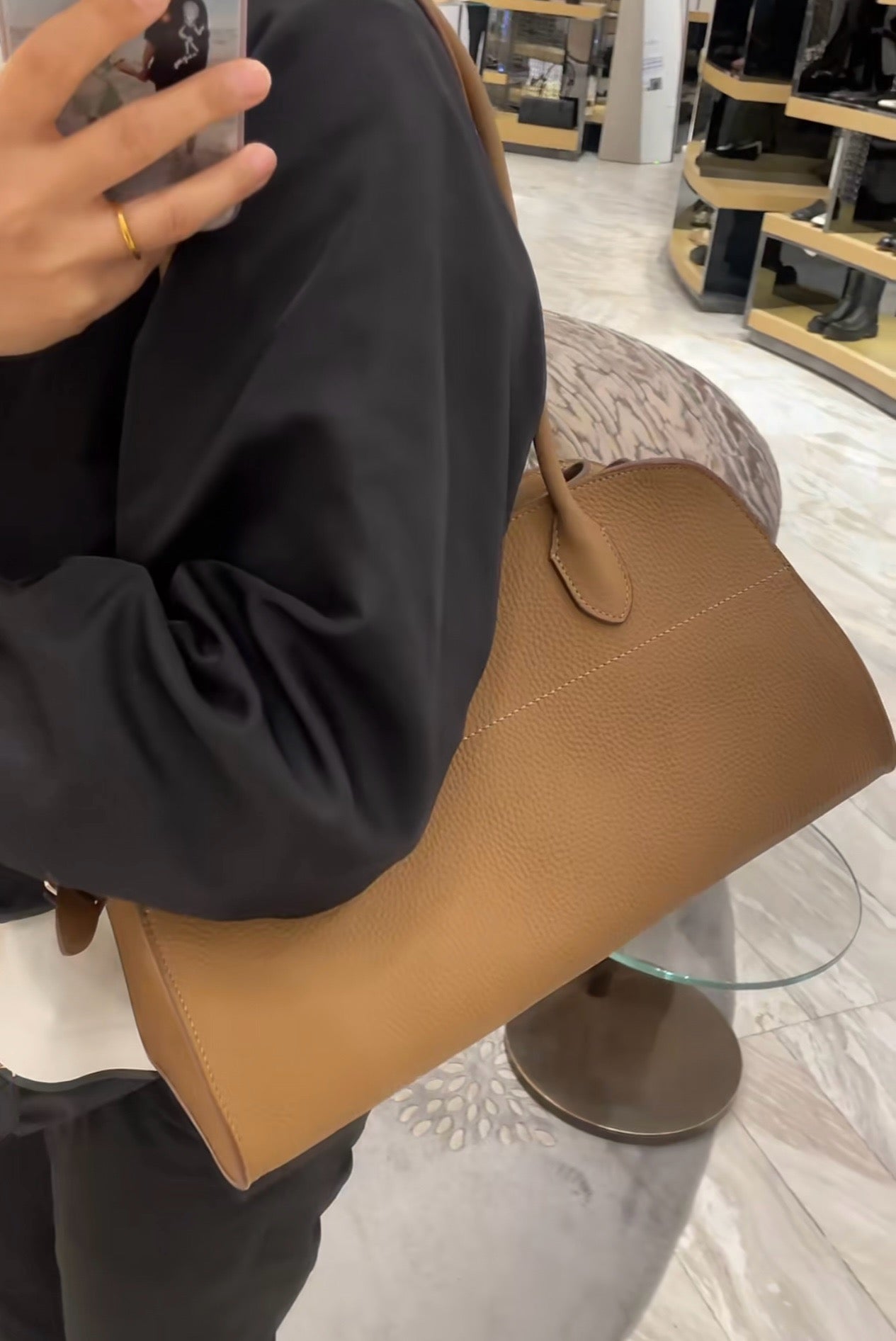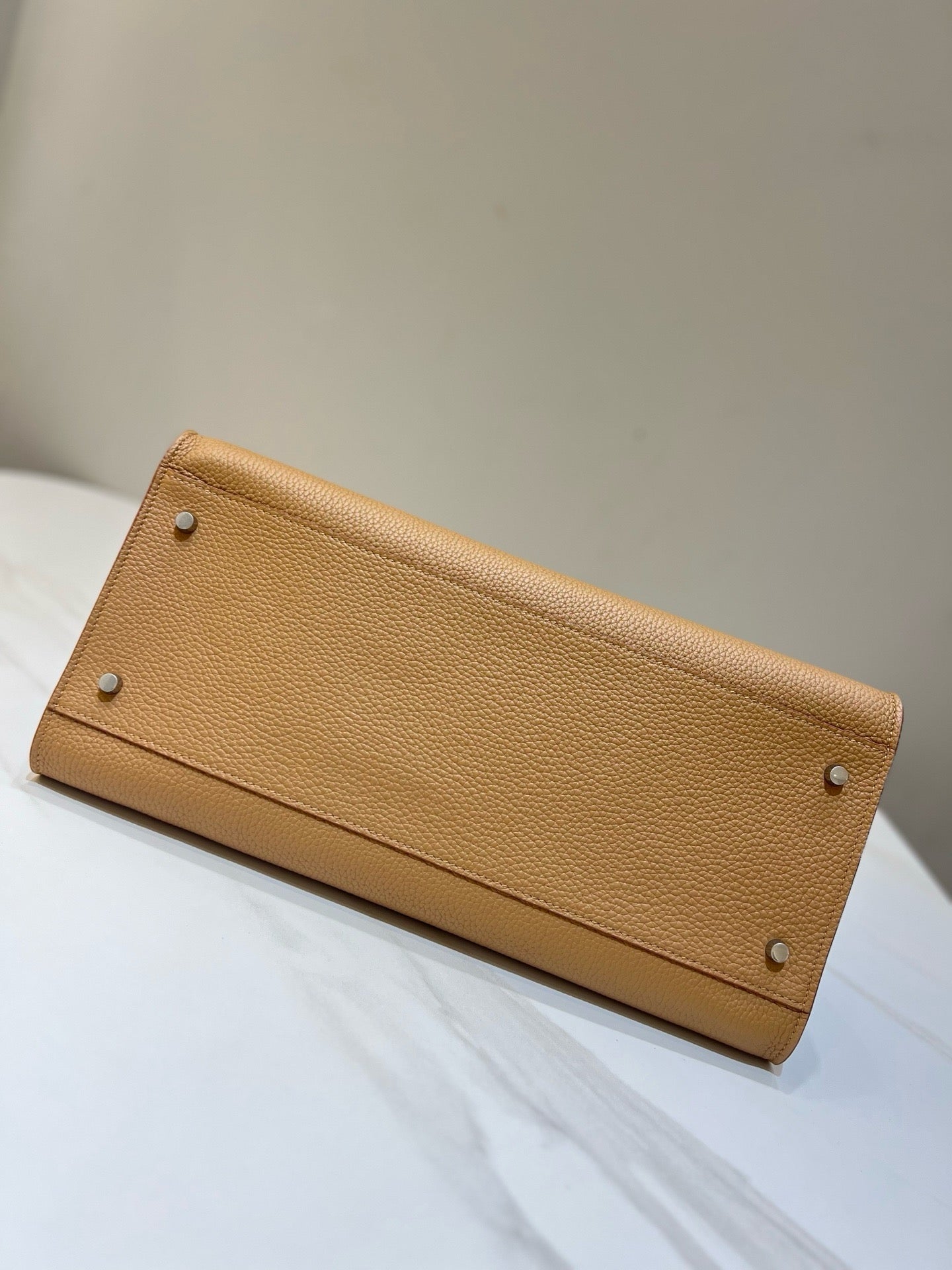 가죽 특성상 어느 정도의 무게는 있지만, 구조적이면서도 편안한 핸들 디자인으로 부담 없이 들고 다닐 수 있습니다.