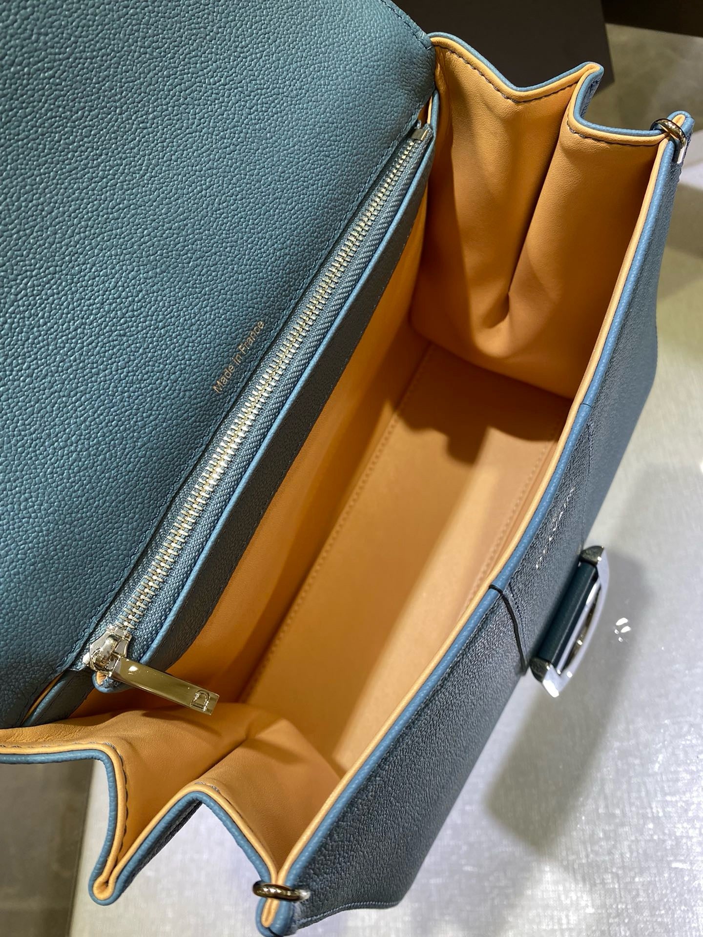 브리앙 라인의 아이코닉한 곡선 플랩과 D-버클 장식은 그대로 유지되며, 로데오 카프스킨이 선사하는 자연스러운 광택과 부드러운 촉감이 편안하면서도 우아한 무드를 완성합니다. 손잡이와 하드웨어는 섬세한 장인정신으로 마감되어 있습니다.