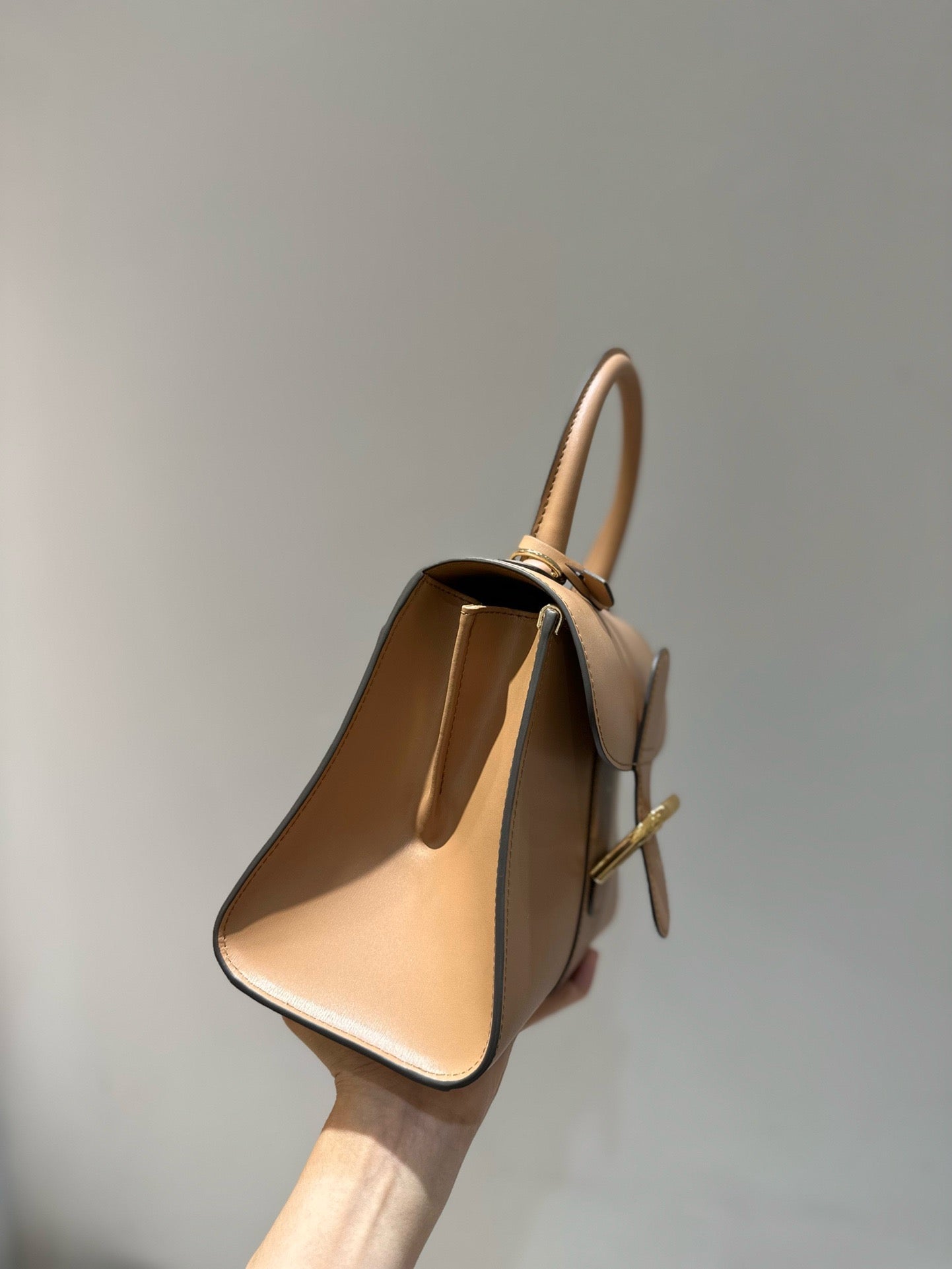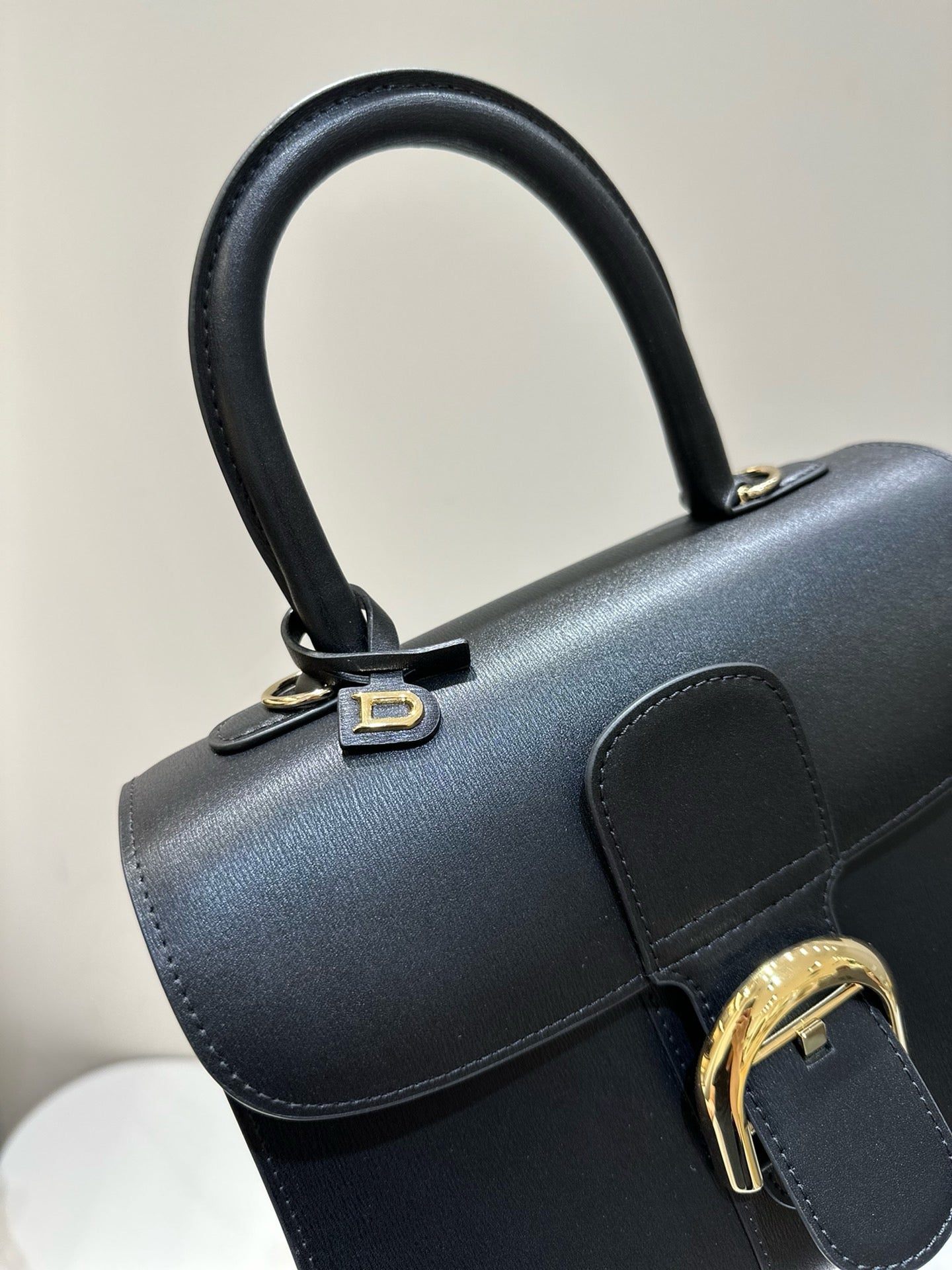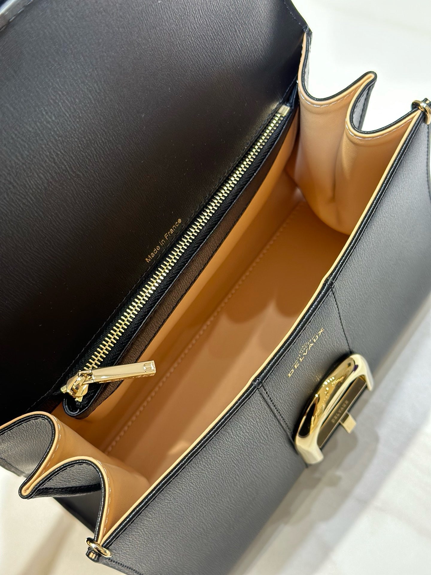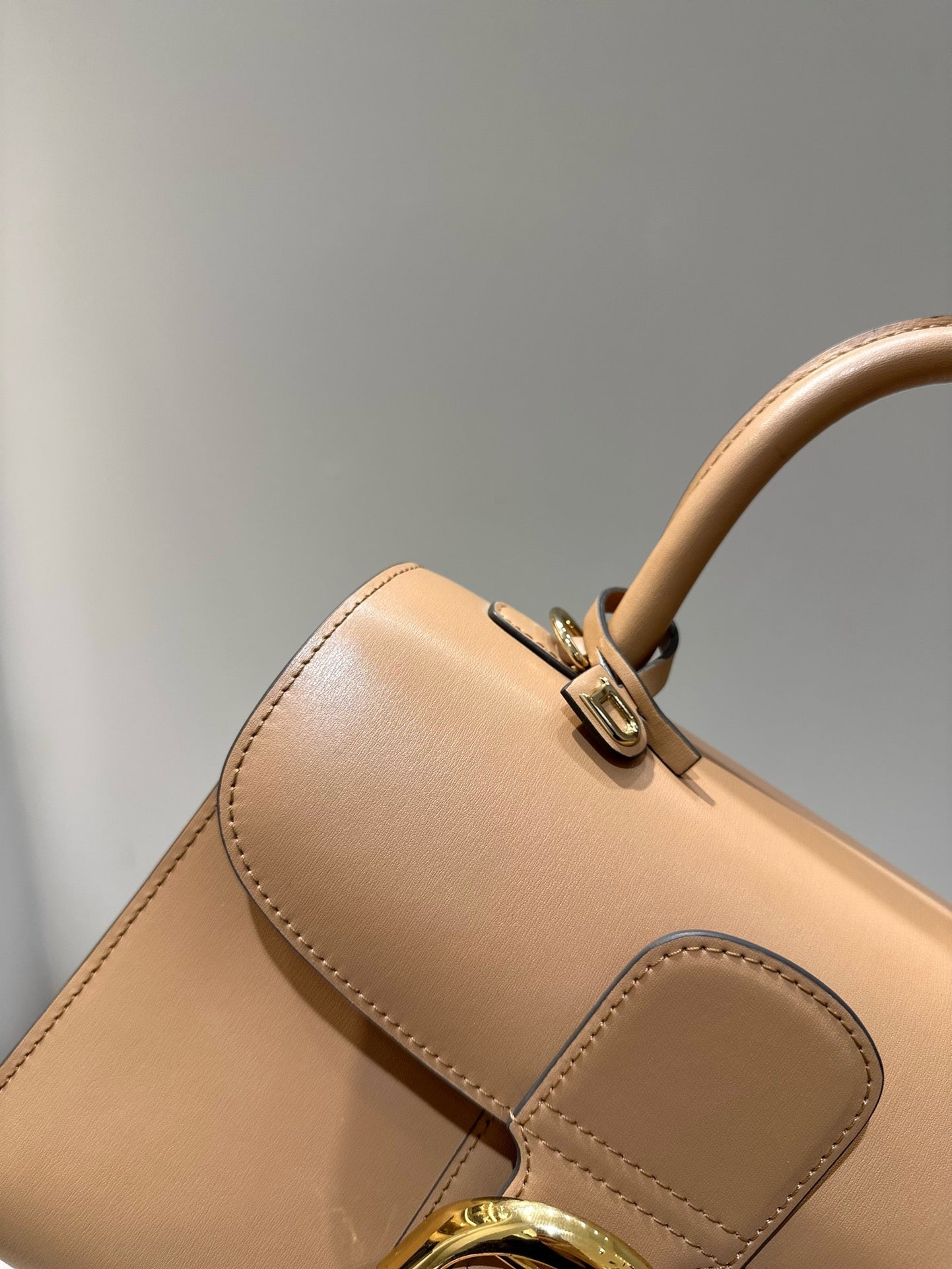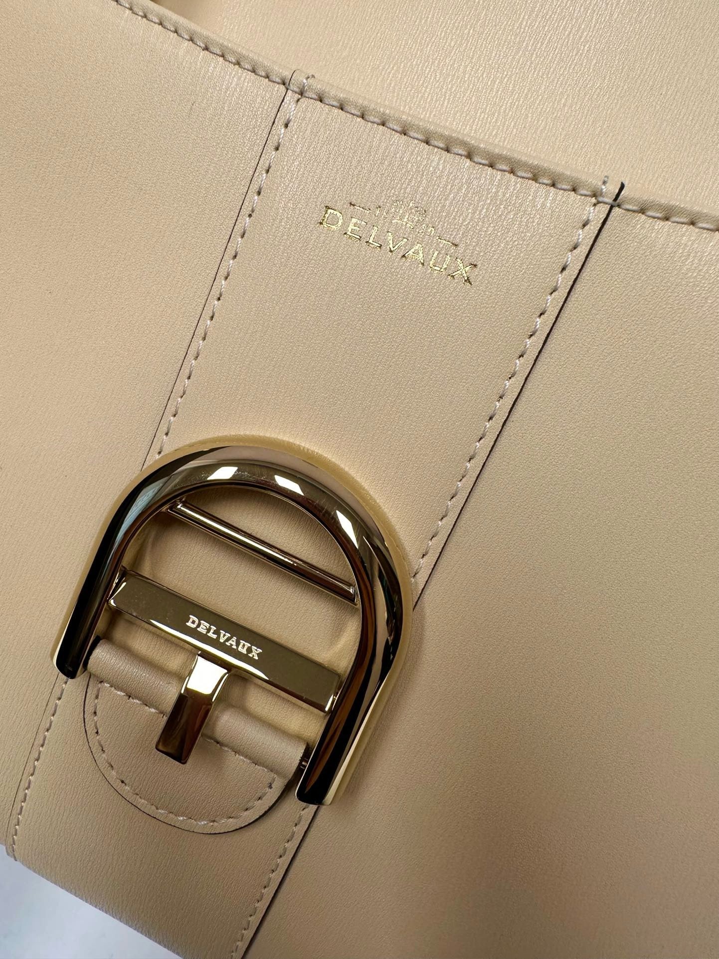 브리앙 특유의 곡선형 플랩과 상징적인 D-버클은 PM 사이즈에서도 유지되며, 복스 카프스킨 특유의 단단하고 매끈한 표면이 우아하고 클래식한 인상을 더합니다. 정교하게 마감된 핸들, 하드웨어, 그리고 전체적인 실루엣이 델보의 장인정신을 상징합니다.