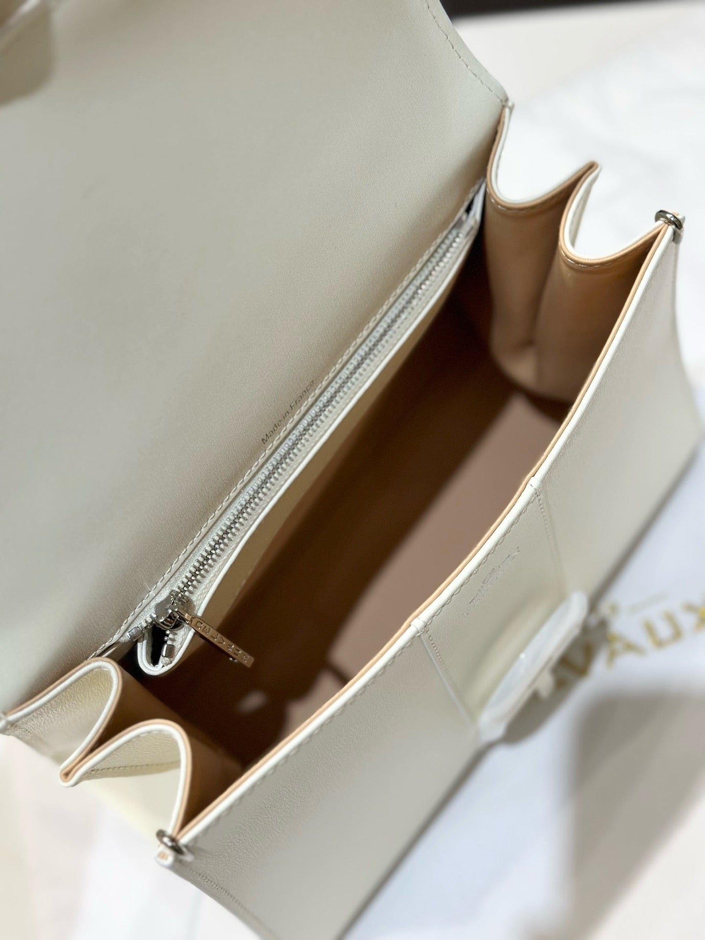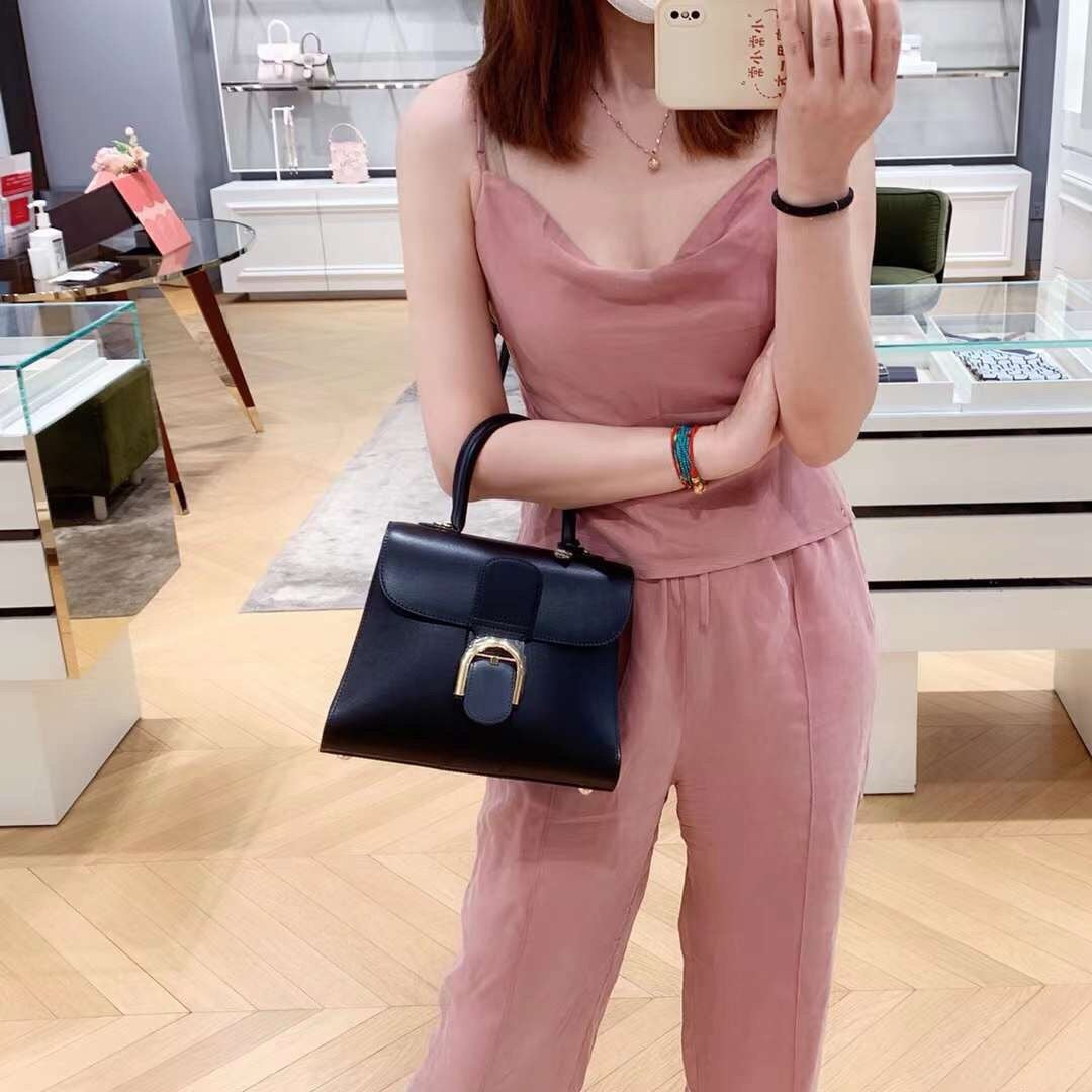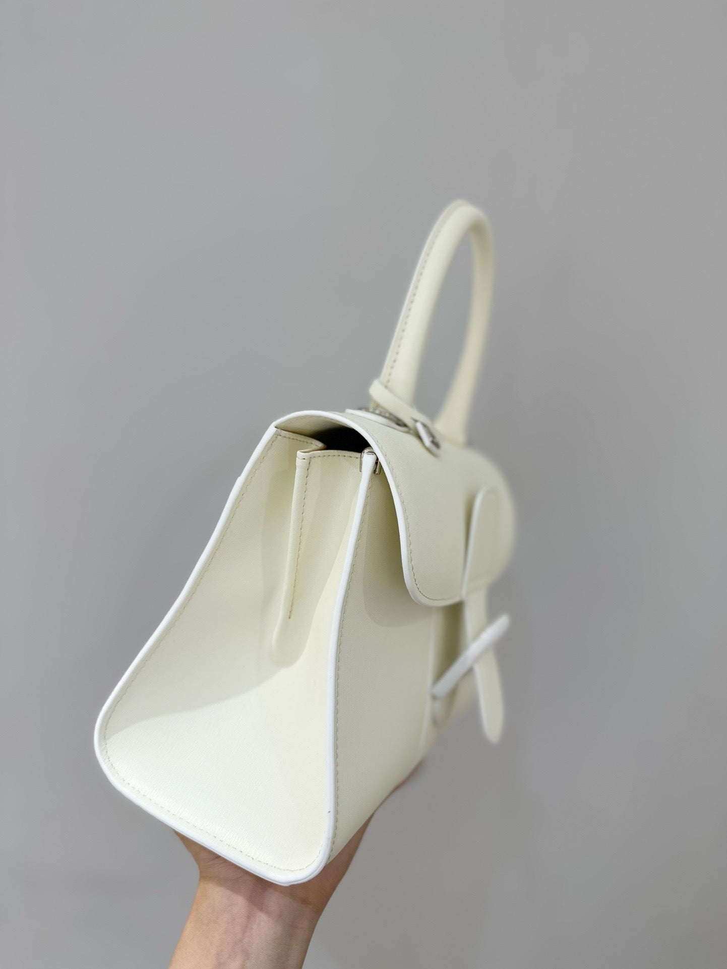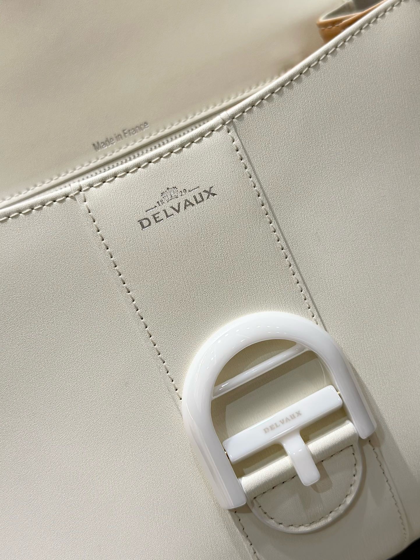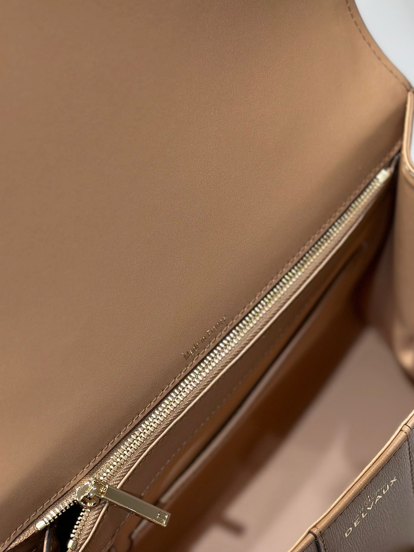 브리앙 특유의 곡선형 플랩과 상징적인 D-버클은 PM 사이즈에서도 유지되며, 복스 카프스킨 특유의 단단하고 매끈한 표면이 우아하고 클래식한 인상을 더합니다. 정교하게 마감된 핸들, 하드웨어, 그리고 전체적인 실루엣이 델보의 장인정신을 상징합니다.