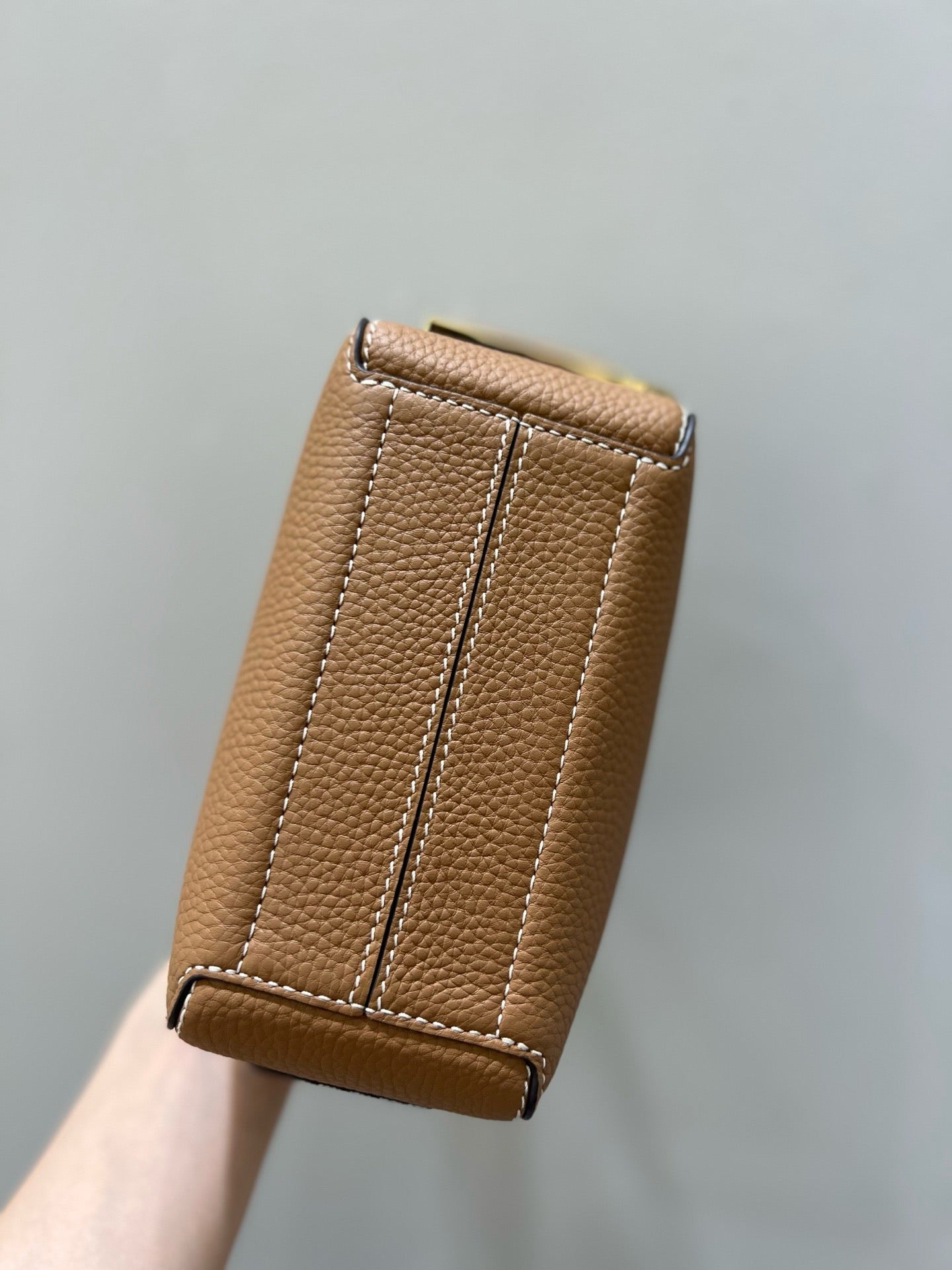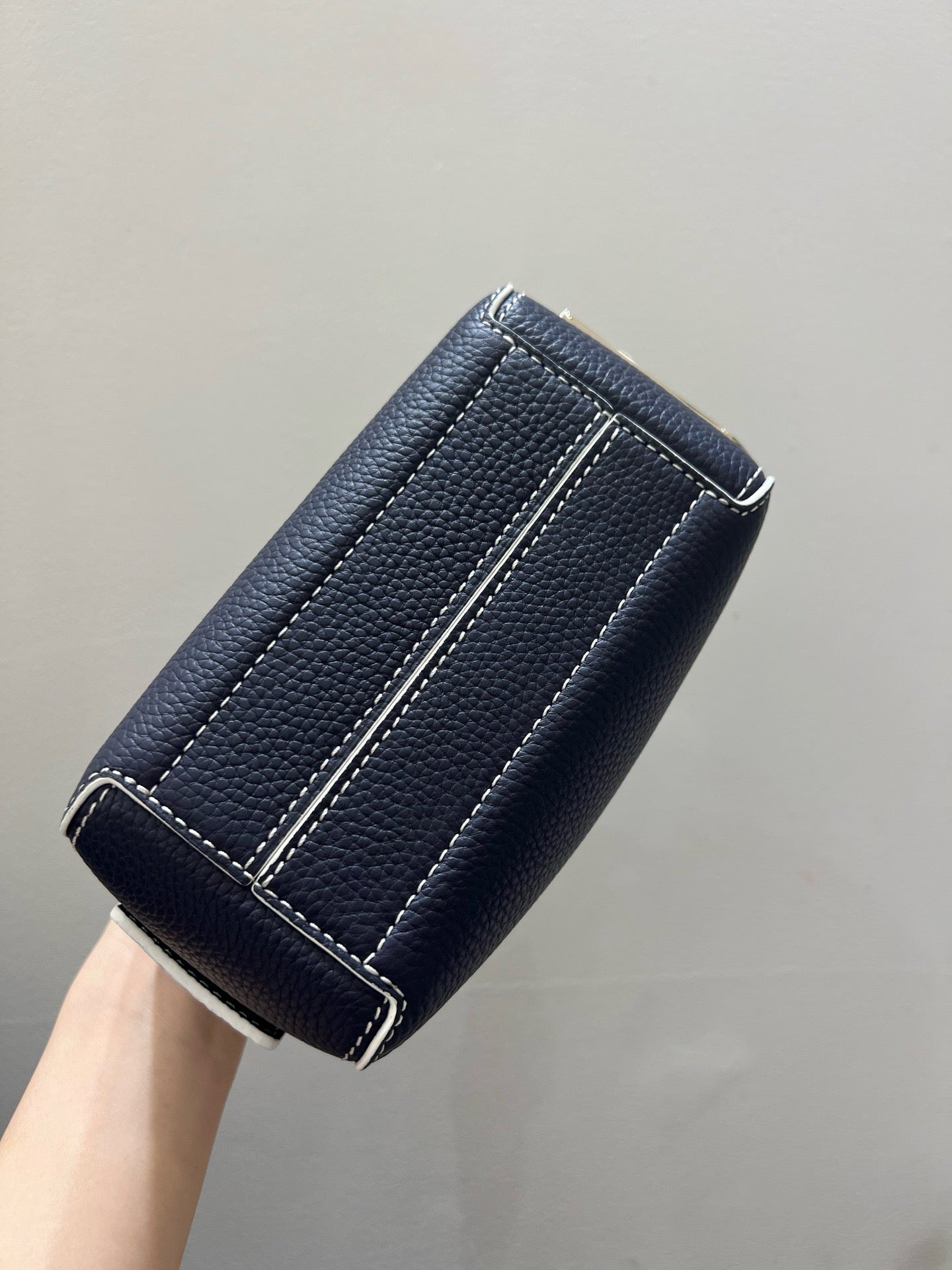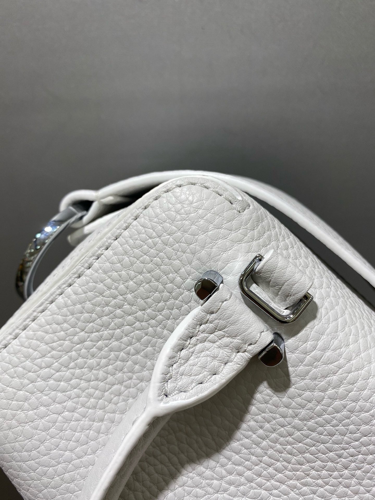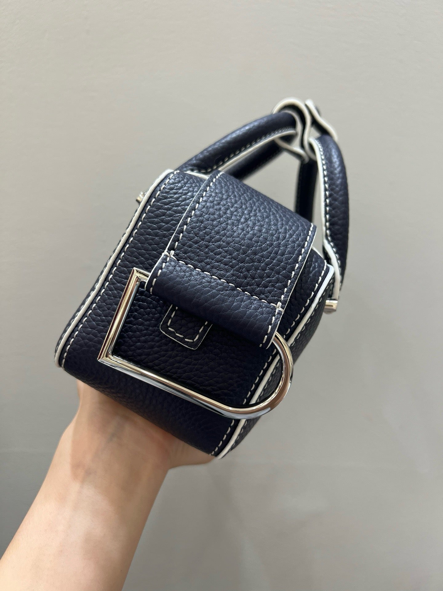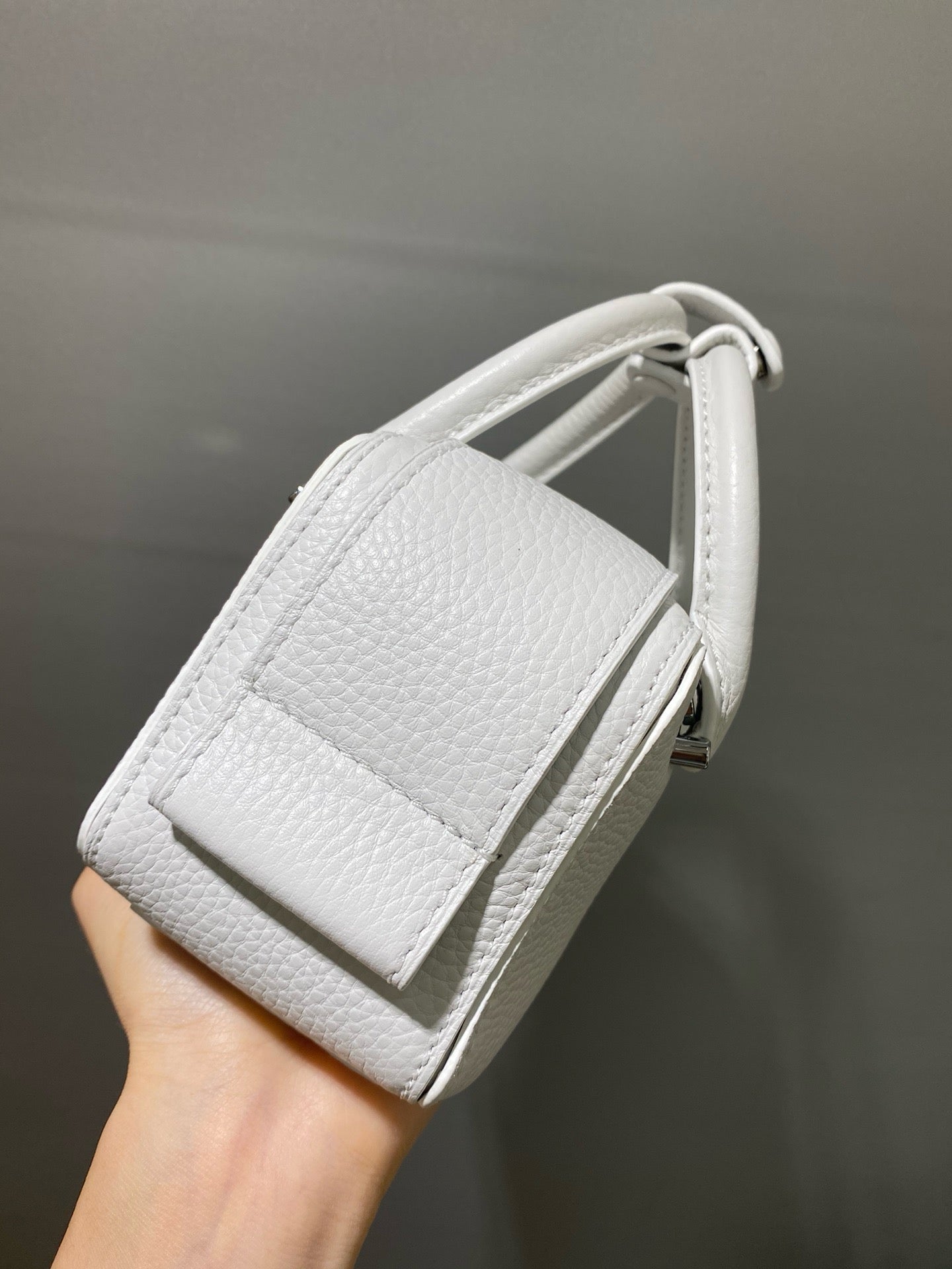나노 사이즈임에도 구조적인 박스 형태를 그대로 유지하며, 부드러운 가죽 텍스처와 세심한 디테일이 고급스러움을 더합니다. 미니 토트백 또는 키링처럼 연출할 수 있으며, 탈착 가능한 스트랩으로 크로스 또는 숄더 스타일도 가능합니다.