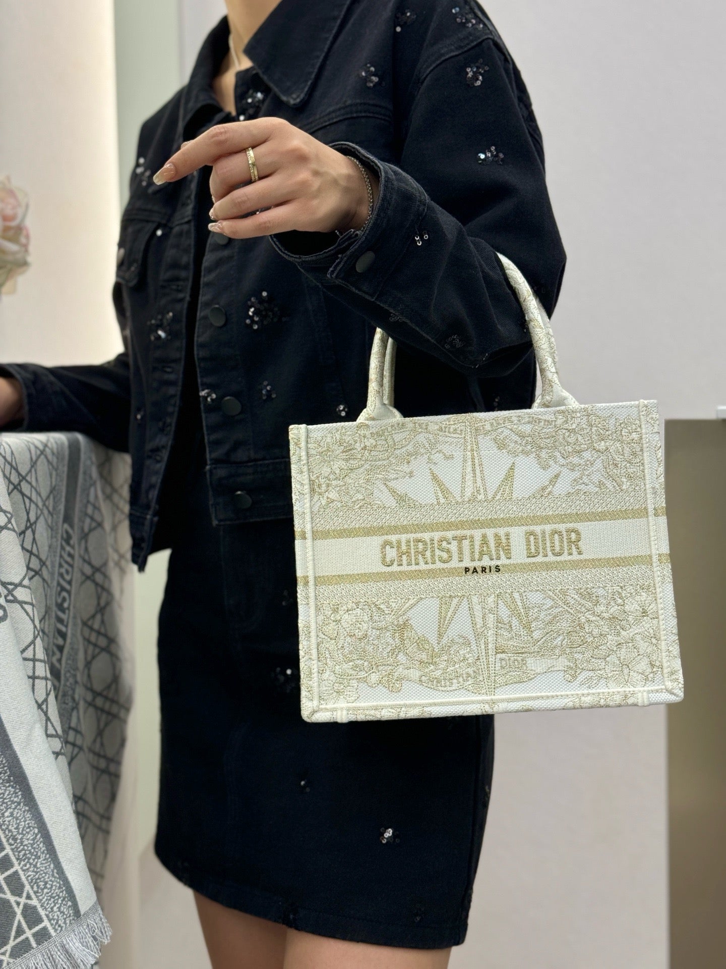 디올 골드 메탈릭 스레드 북 토트백 스몰(Dior Gold Metallic Thread Book Tote Small) 스타일링 팁