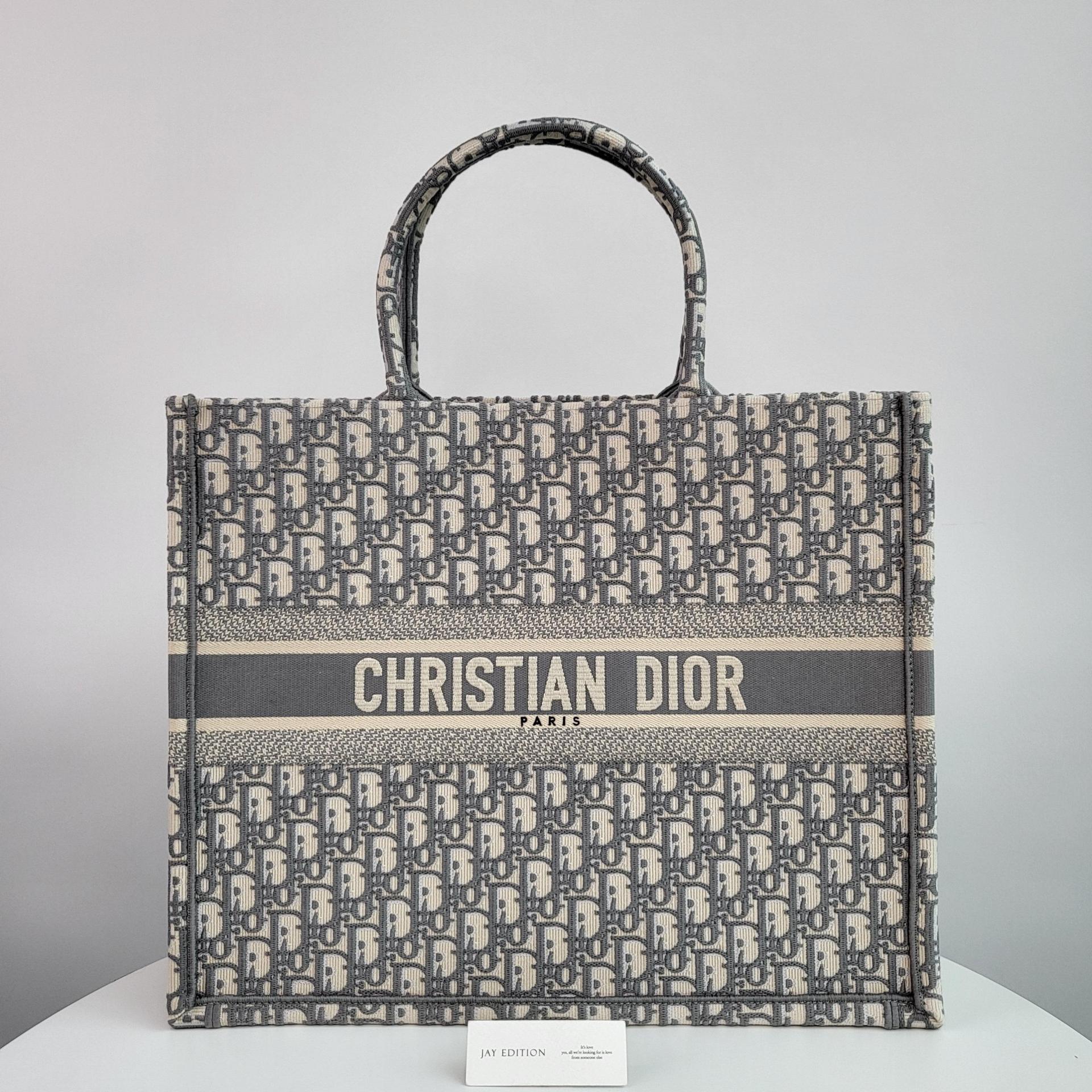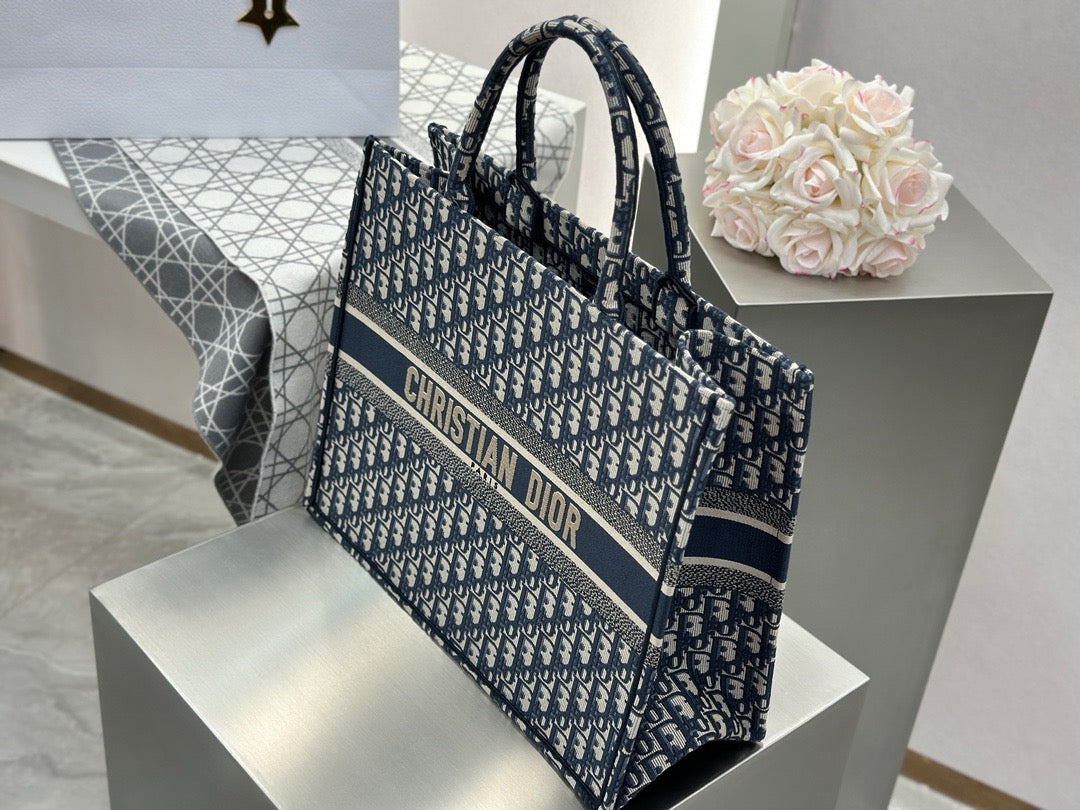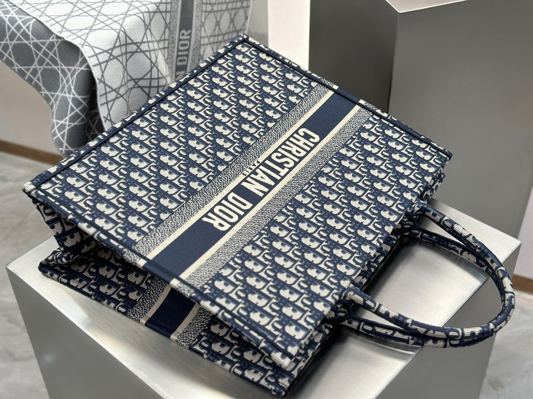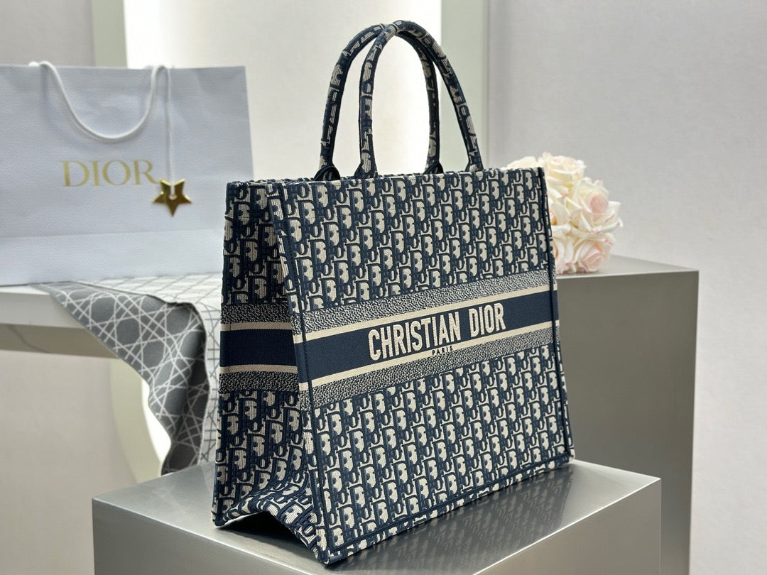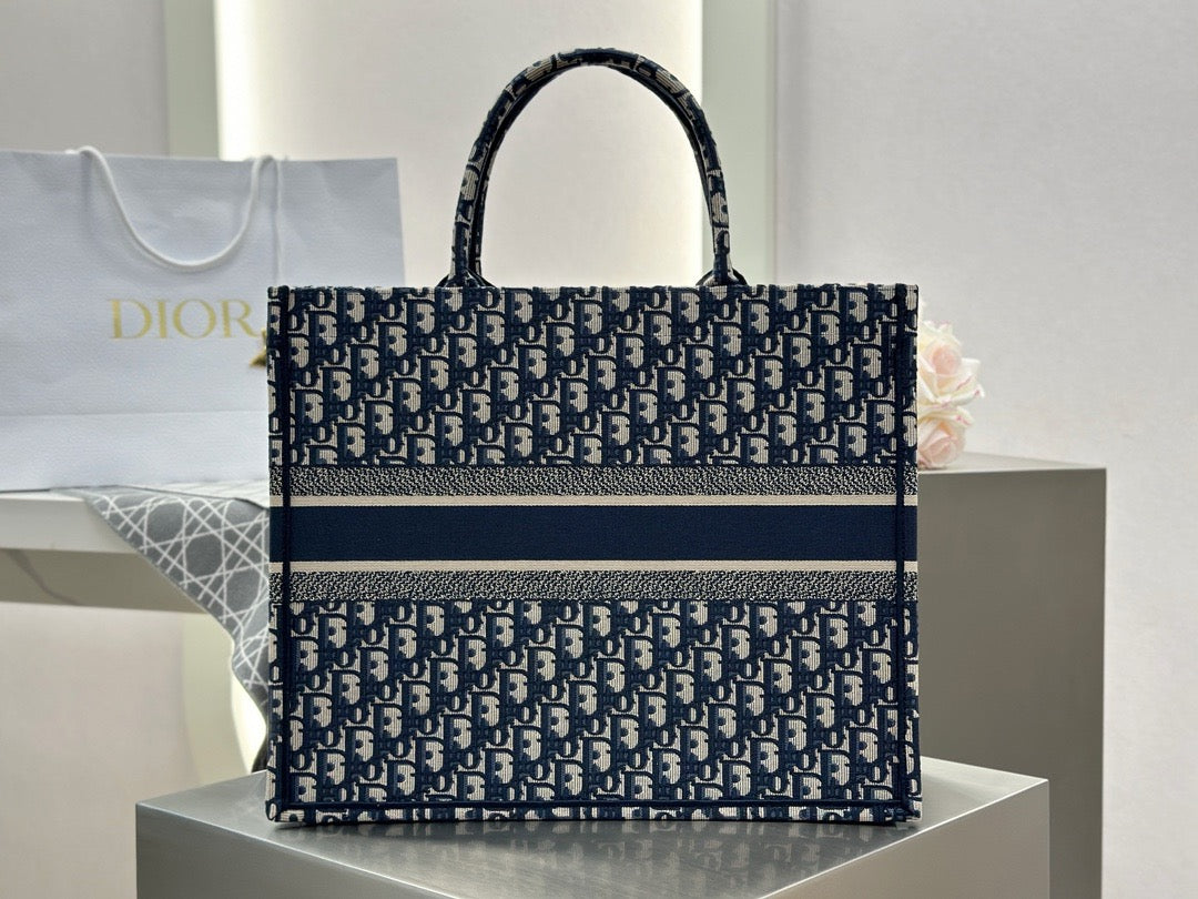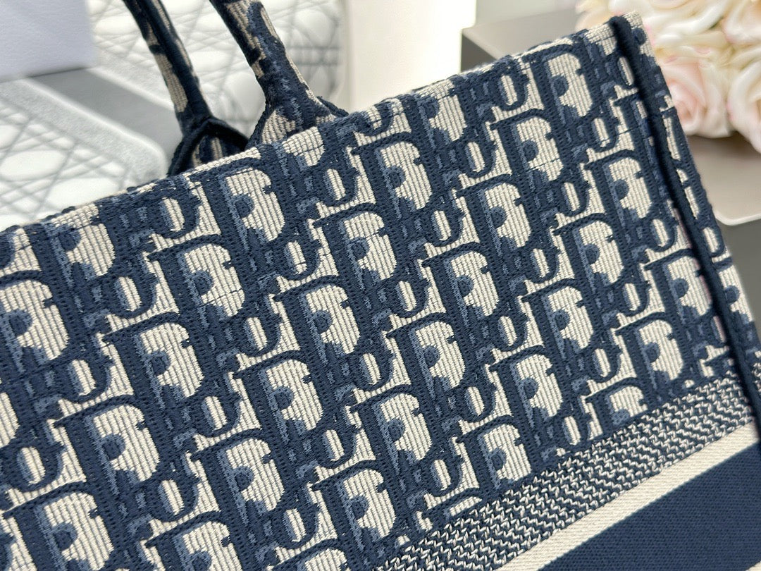 디올 네이비 오블리크 자수 북 토트백 라지(Dior Navy Oblique Embroidered Book Tote Large) - 실용성과 품격의 완벽한 균형