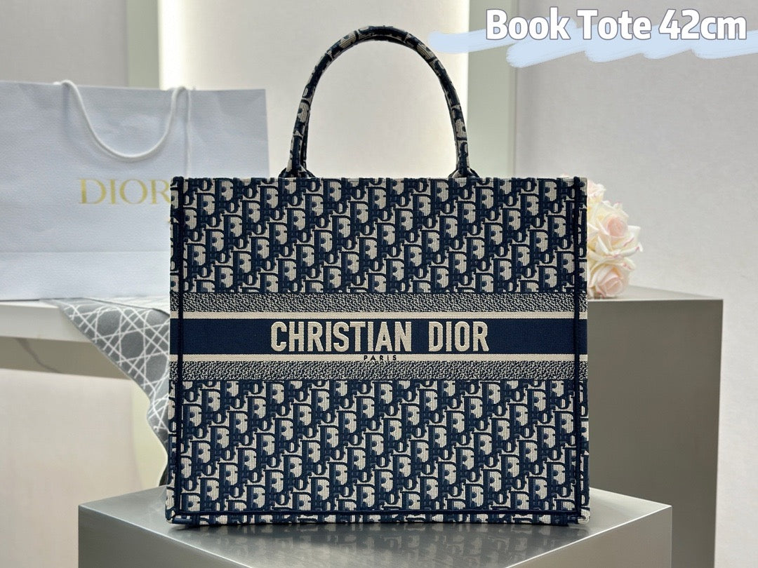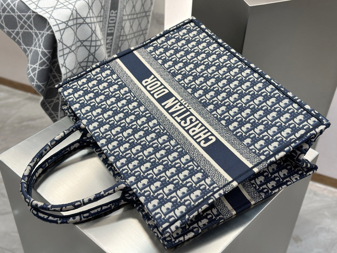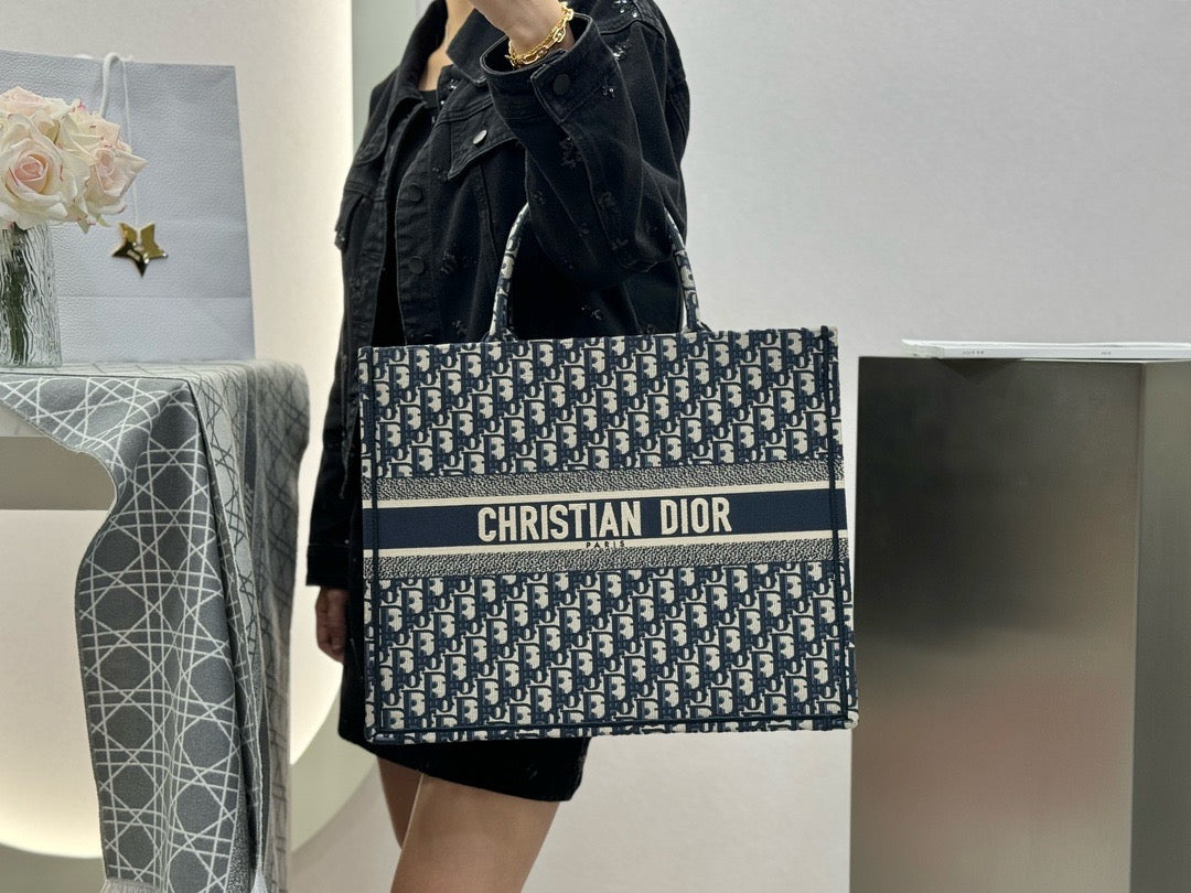 디올 네이비 오블리크 자수 북 토트백 라지(Dior Navy Oblique Embroidered Book Tote Large) - 넉넉한 공간과 디올의 아이덴티티