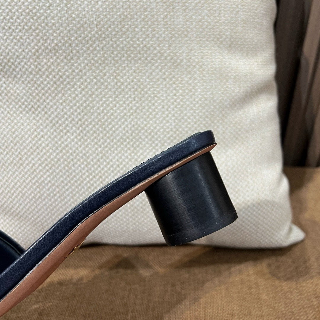 이 슬라이드 뮬은 'Christian Dior' 시그니처 자수가 돋보이는 와이드 텍스타일 스트랩과 사각형 블록 힐 구조가 특징입니다. 힐 높이는 약 4~5cm로 다리 라인을 자연스럽게 살려주며, 넓은 굽 형태 덕분에 장시간 착용에도 안정적입니다. 심플한 디자인 덕분에 다양한 룩에 매치가 가능하며, 세련된 실루엣으로 오피스룩에도 적합합니다.