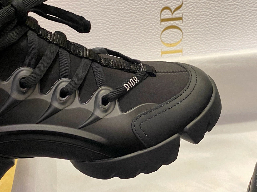 이 스니커즈는 입체적인 구조와 와이드 러버 아웃솔, 텍스타일과 테크니컬 패브릭의 조합으로 이루어진 대담한 실루엣이 특징입니다. 측면의 ‘DIOR’ 시그니처, 레이스 커버 디테일, 두툼한 설포 등이 독특한 구조미를 자아내며, 스트리트 감성과 하이패션의 경계를 허무는 제품입니다.