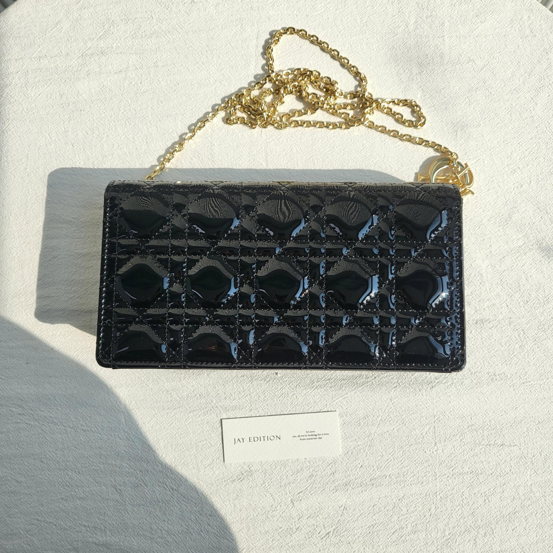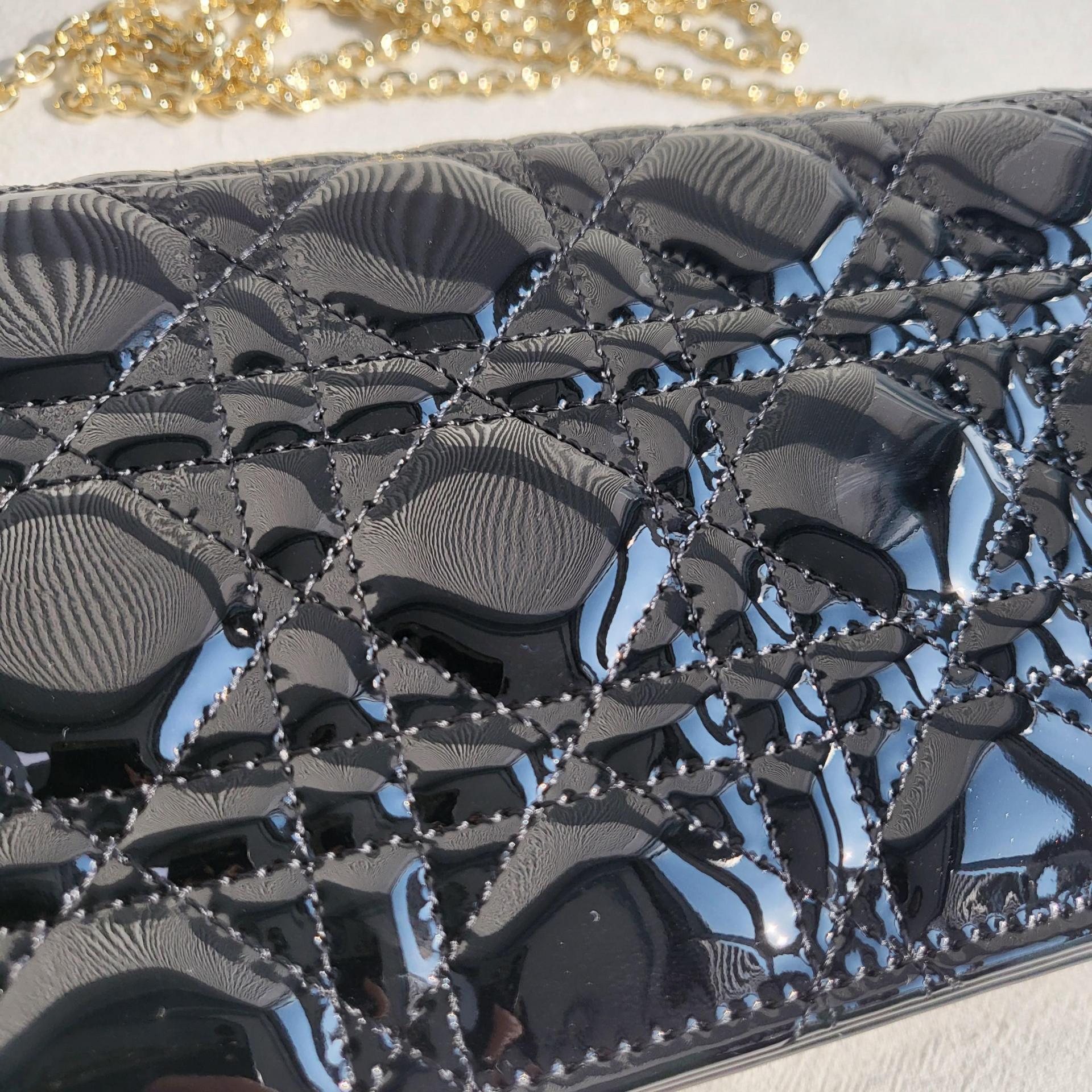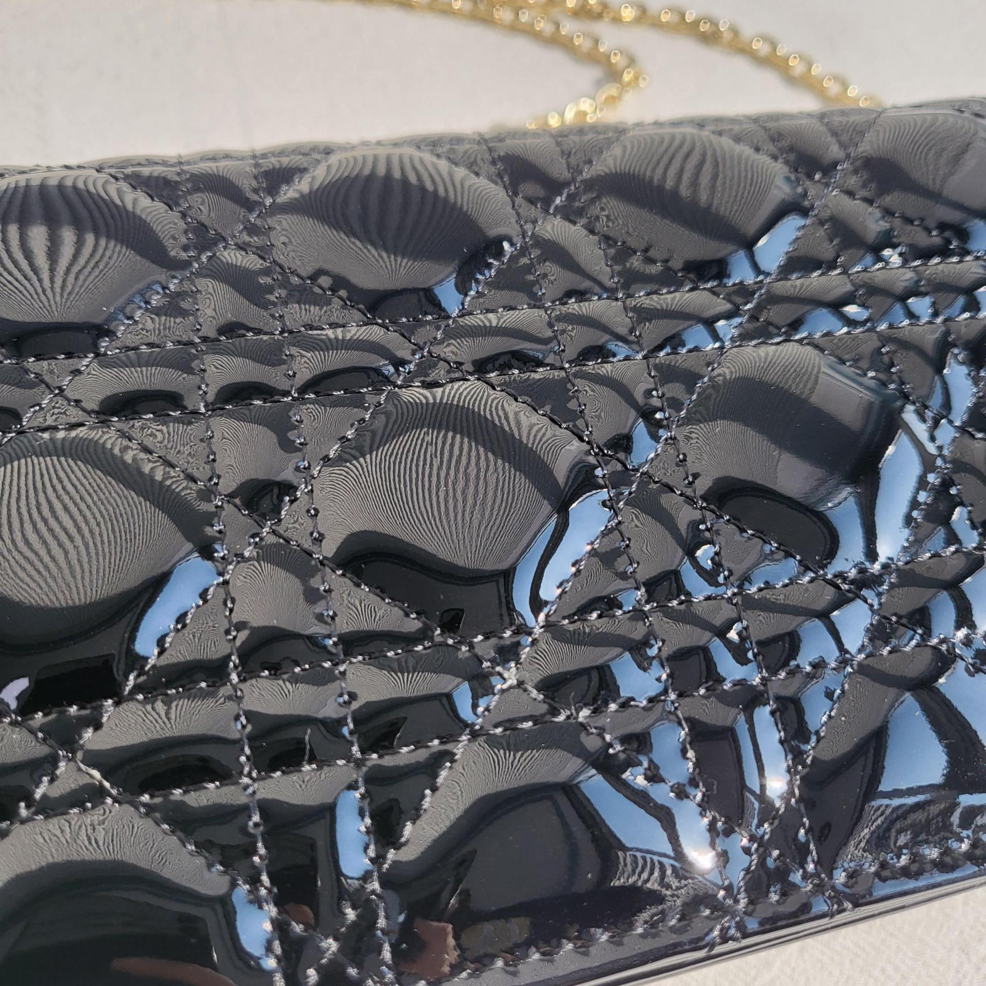 디올 레이디 디올 페이던트 까나쥬 파우치(Dior Lady Dior Patent Cannage Pouch) - 고급 광택과 아이코닉 퀼팅의 조화