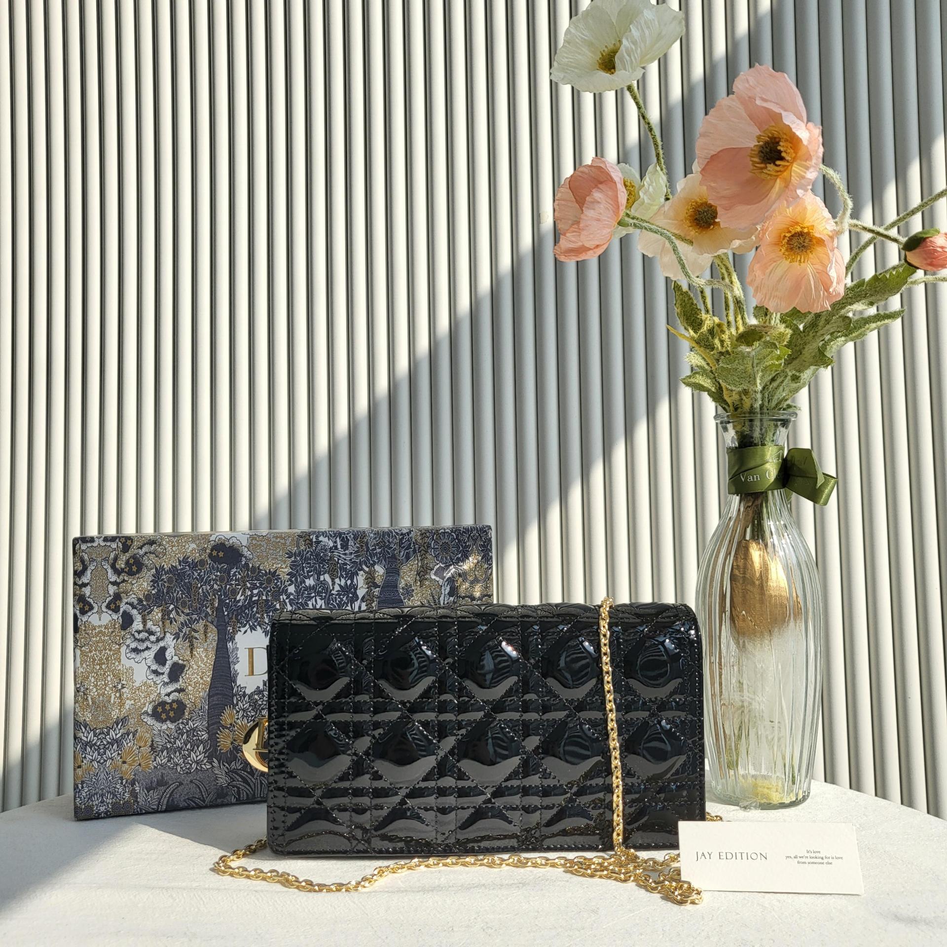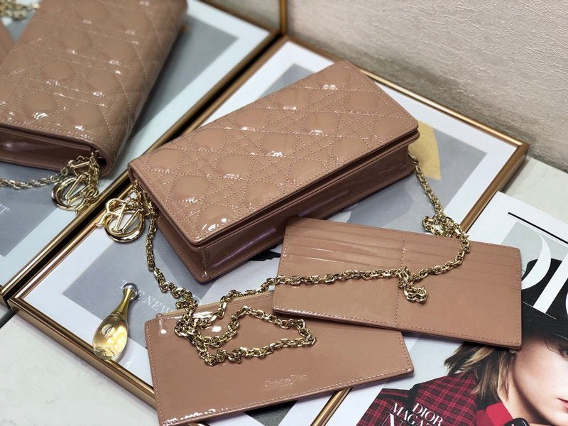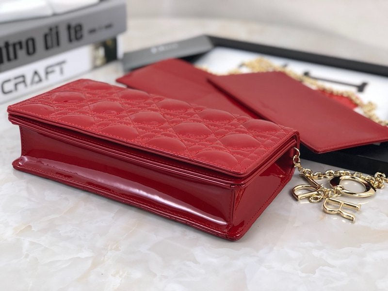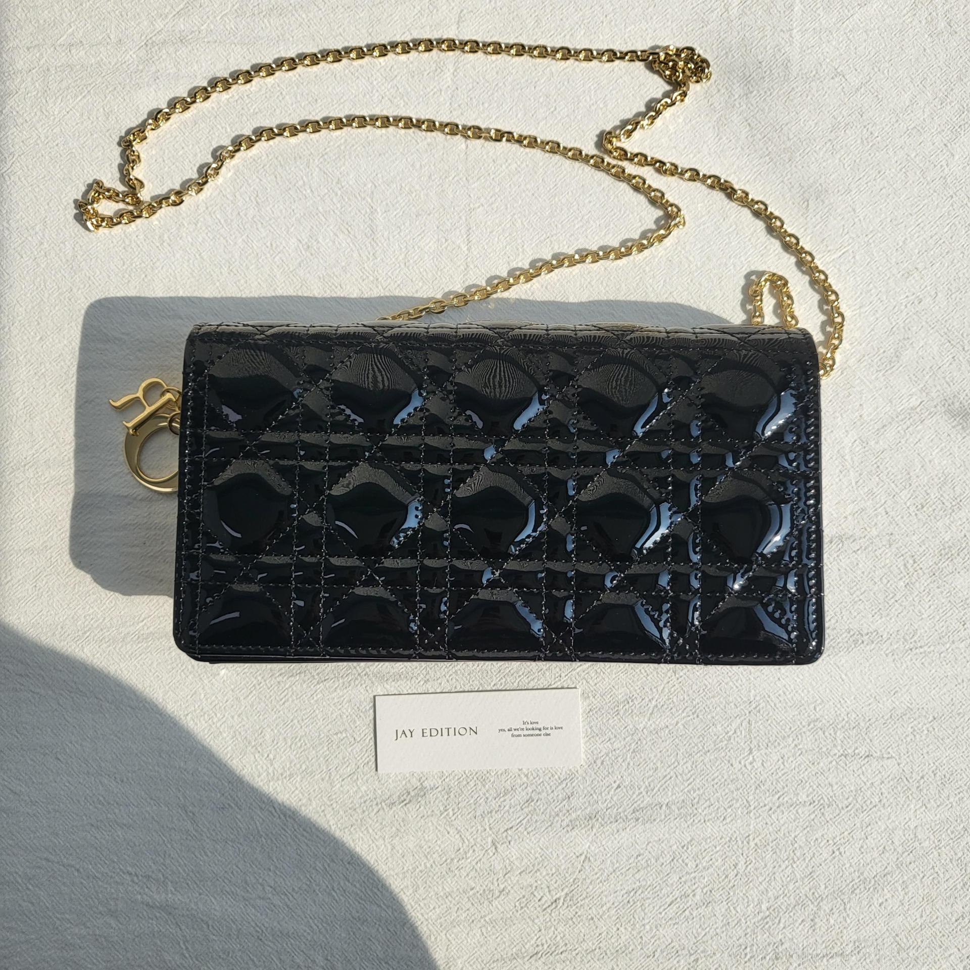디올 레이디 디올 페이던트 까나쥬 파우치(Dior Lady Dior Patent Cannage Pouch) - 고급 광택과 아이코닉 퀼팅의 조화