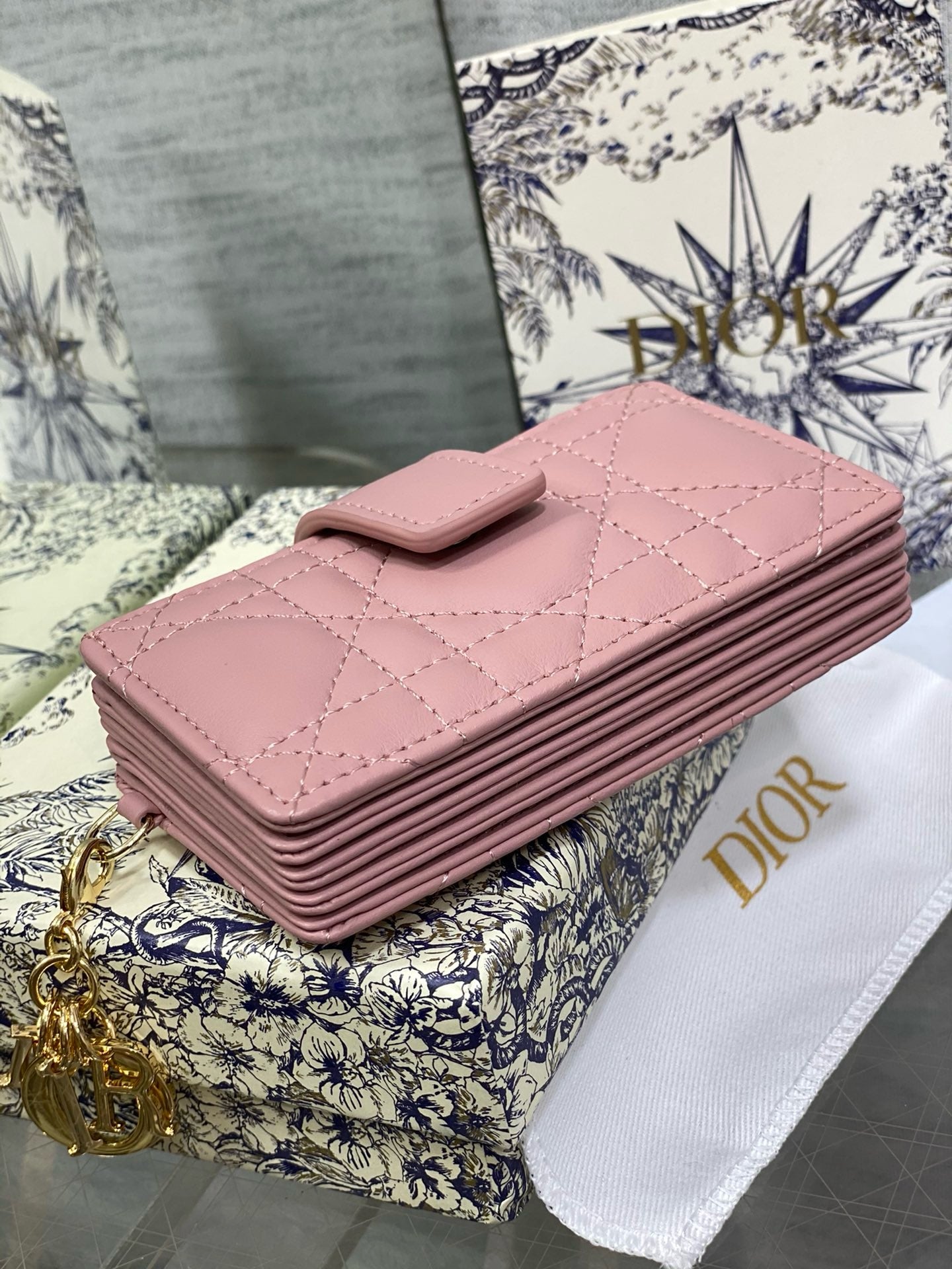 까나쥬 퀼팅 패턴과 여성스러운 곡선, D.I.O.R. 참 장식이 어우러진 디테일이 이 지갑의 가장 큰 매력입니다. 자스민 라인만의 우아한 감성이 잘 반영되어 있습니다.