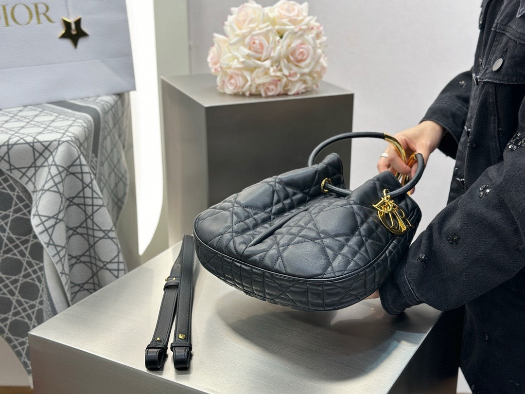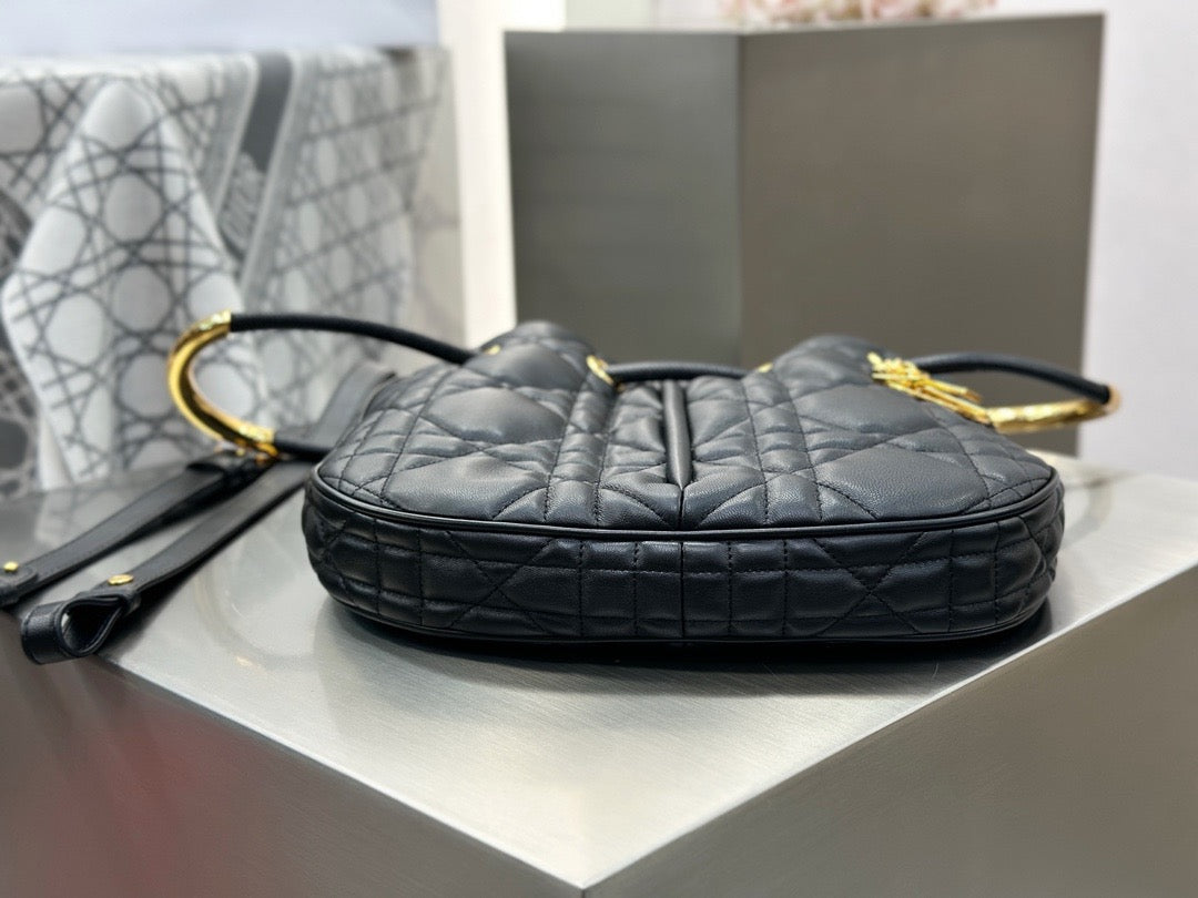 도시적인 직선 실루엣과 곡선이 어우러진 구조적 디자인, 입체적인 매크로 퀼팅, CD 메탈 클로저가 조화를 이루는 디올 특유의 세련된 디자인이 특징입니다.