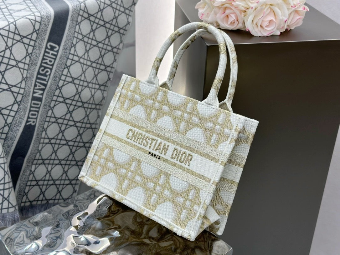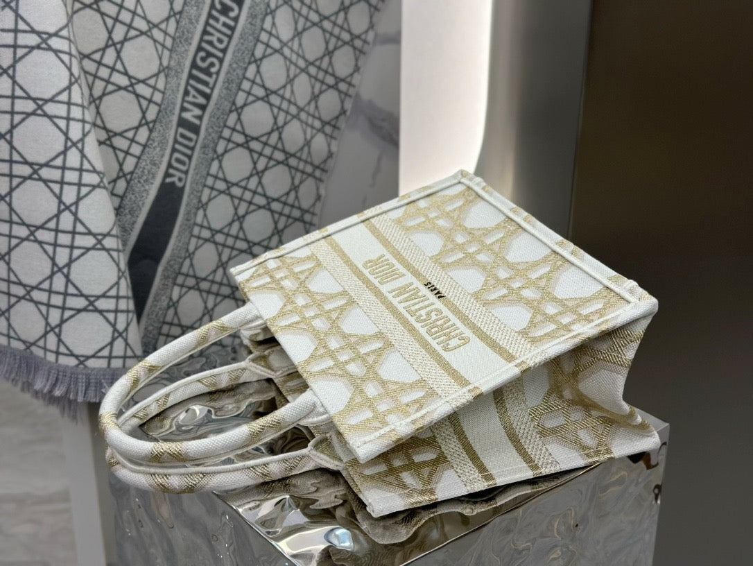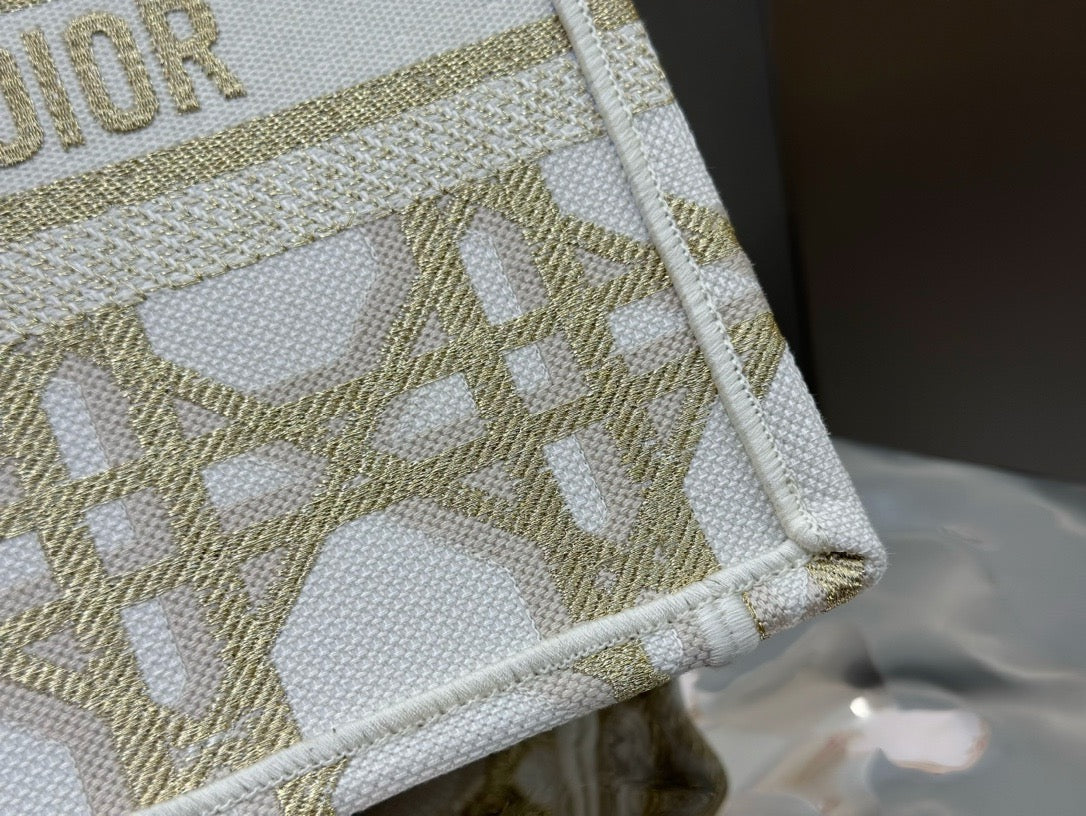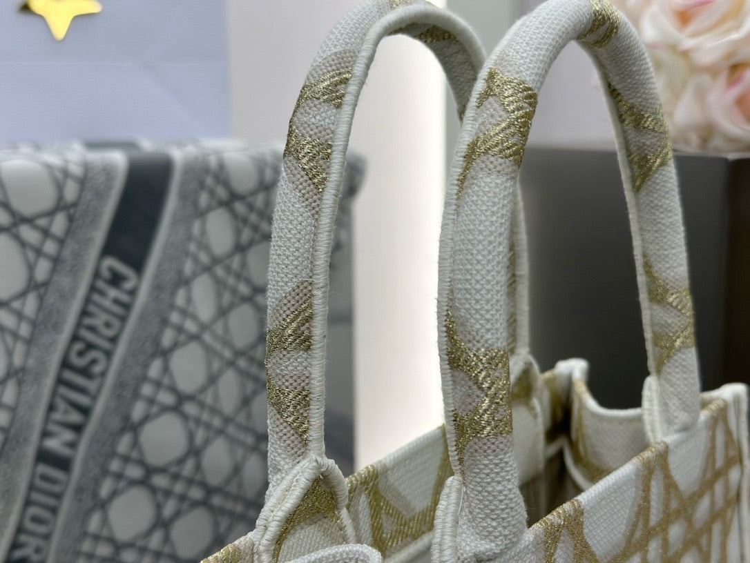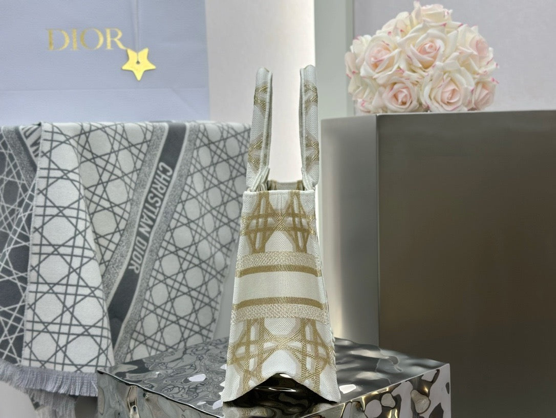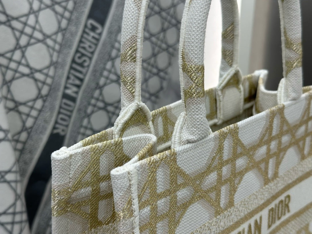 디올 매크로까나쥬 자수 화이트 골드 북 토트백 스몰(Dior Macro Cannage Embroidered White Gold Book Tote Small) - 클래식의 현대적 재해석